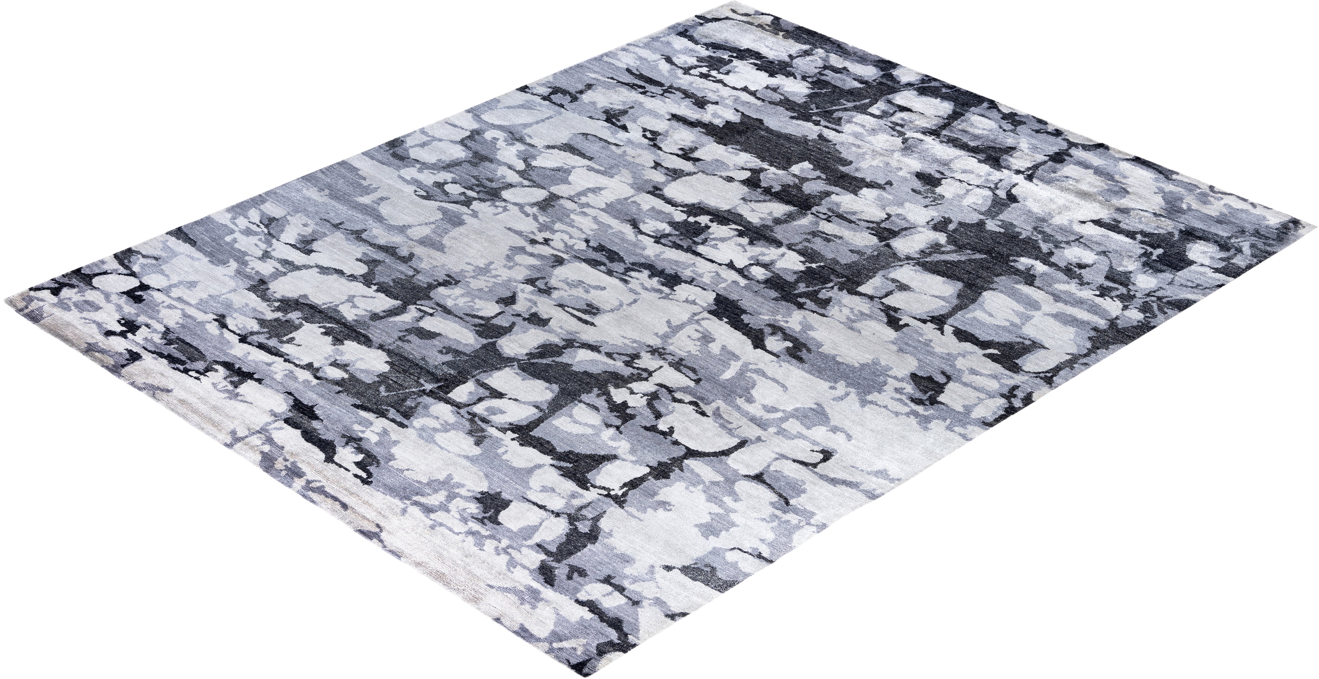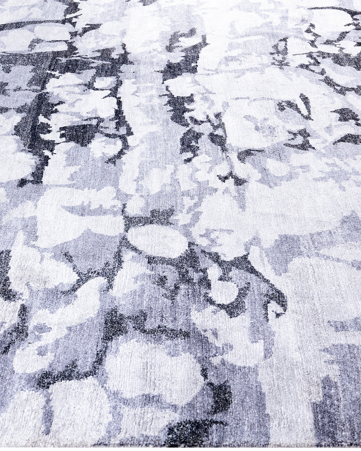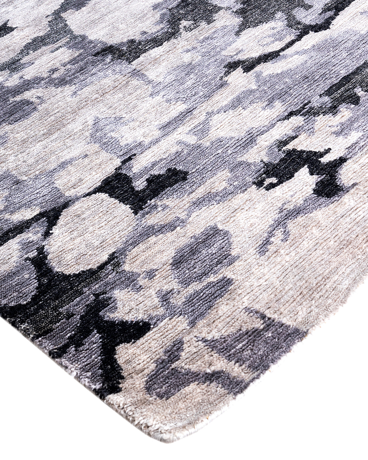 Contemporary Modern Hand Knotted Abstract Silk Gray Area Rug 8' 1" x 10' 1"