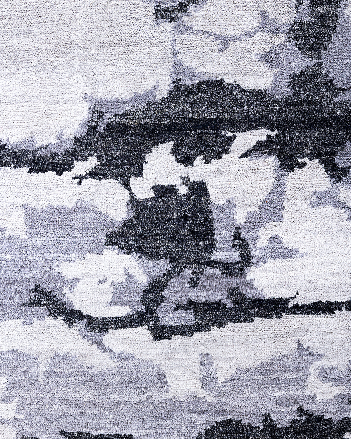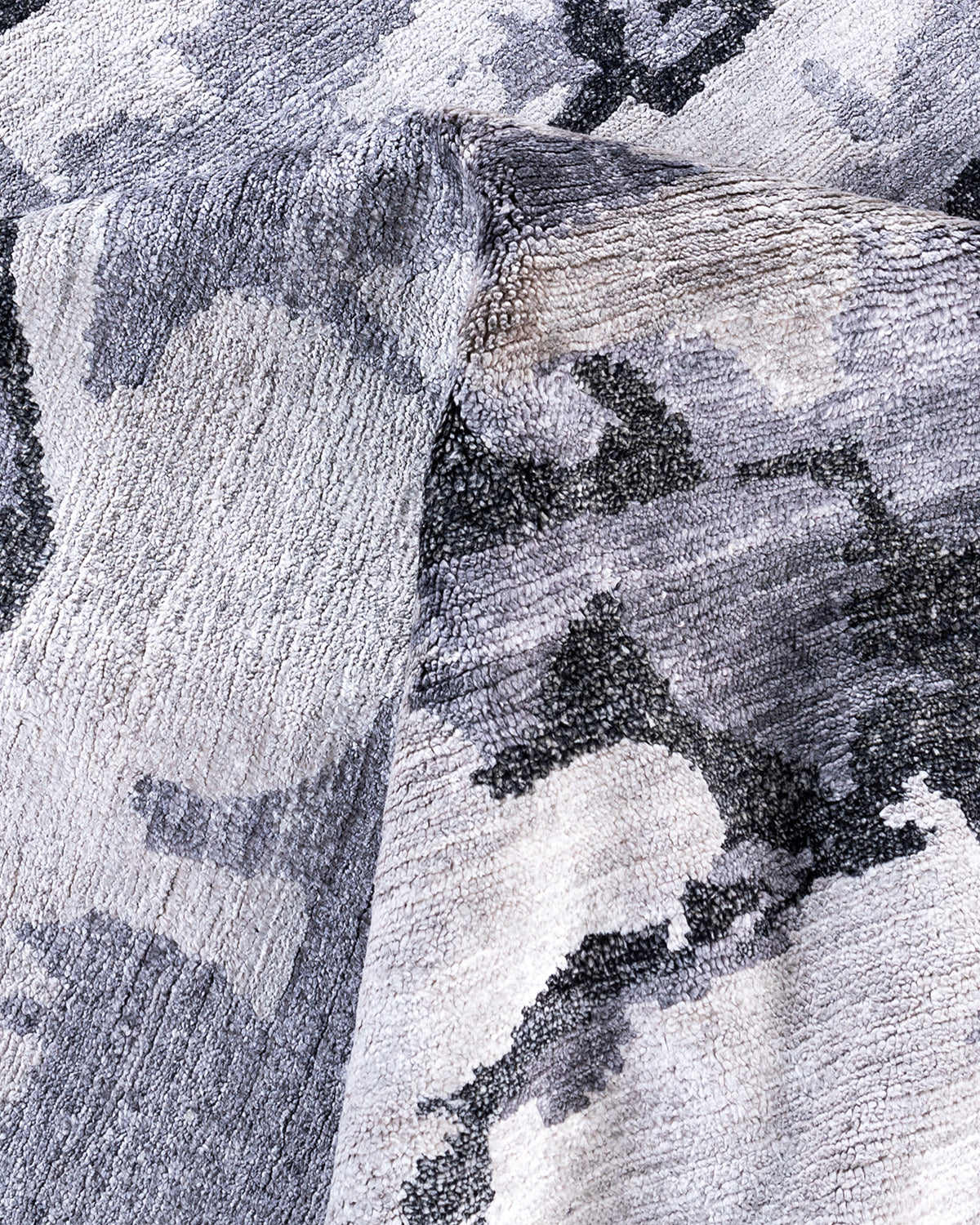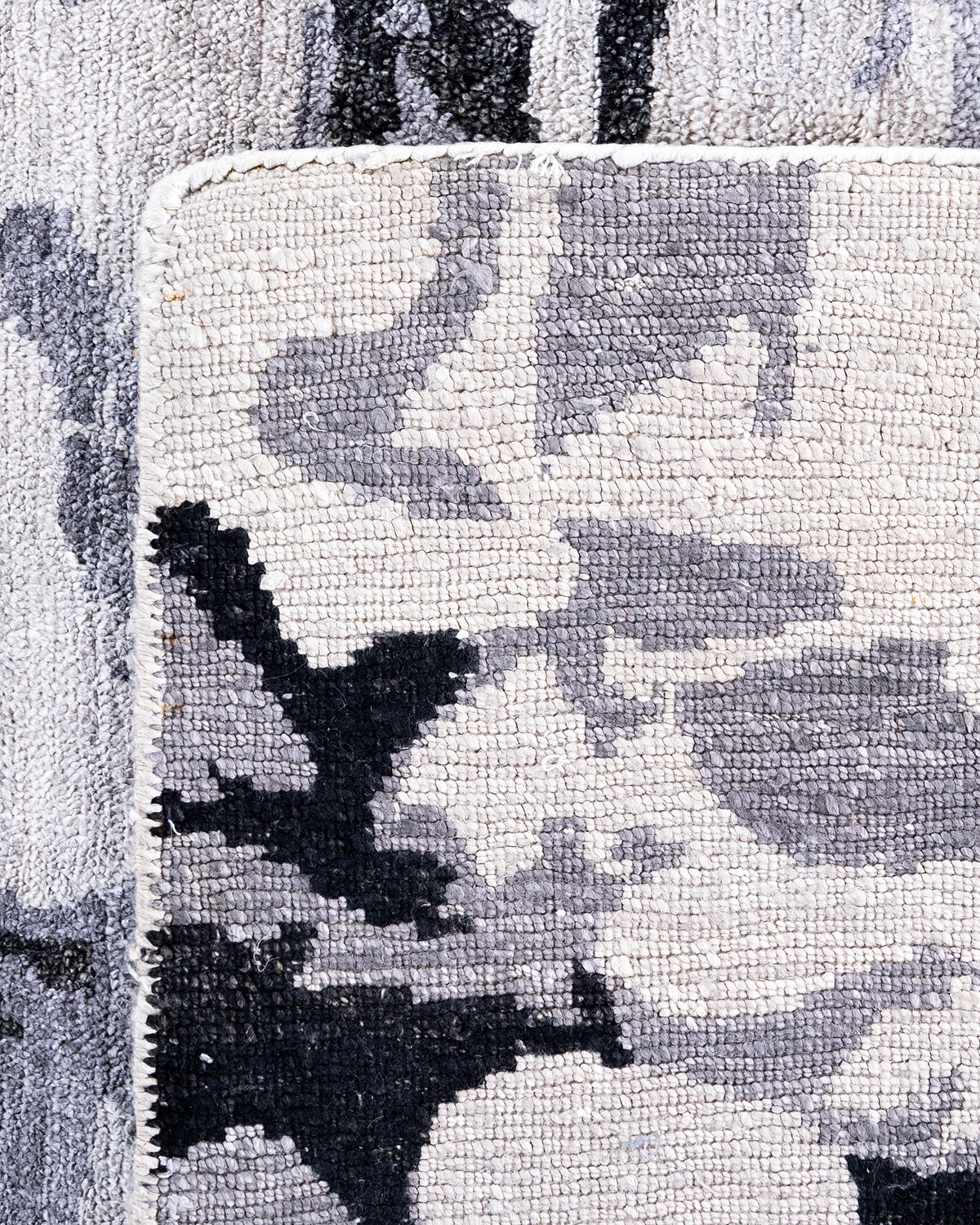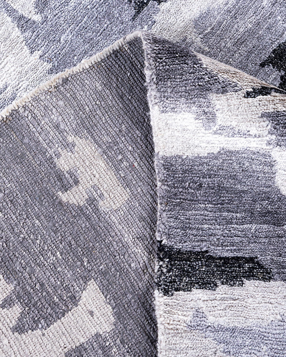 Contemporary Modern Hand Knotted Abstract Silk Gray Area Rug 8' 1" x 10' 1"