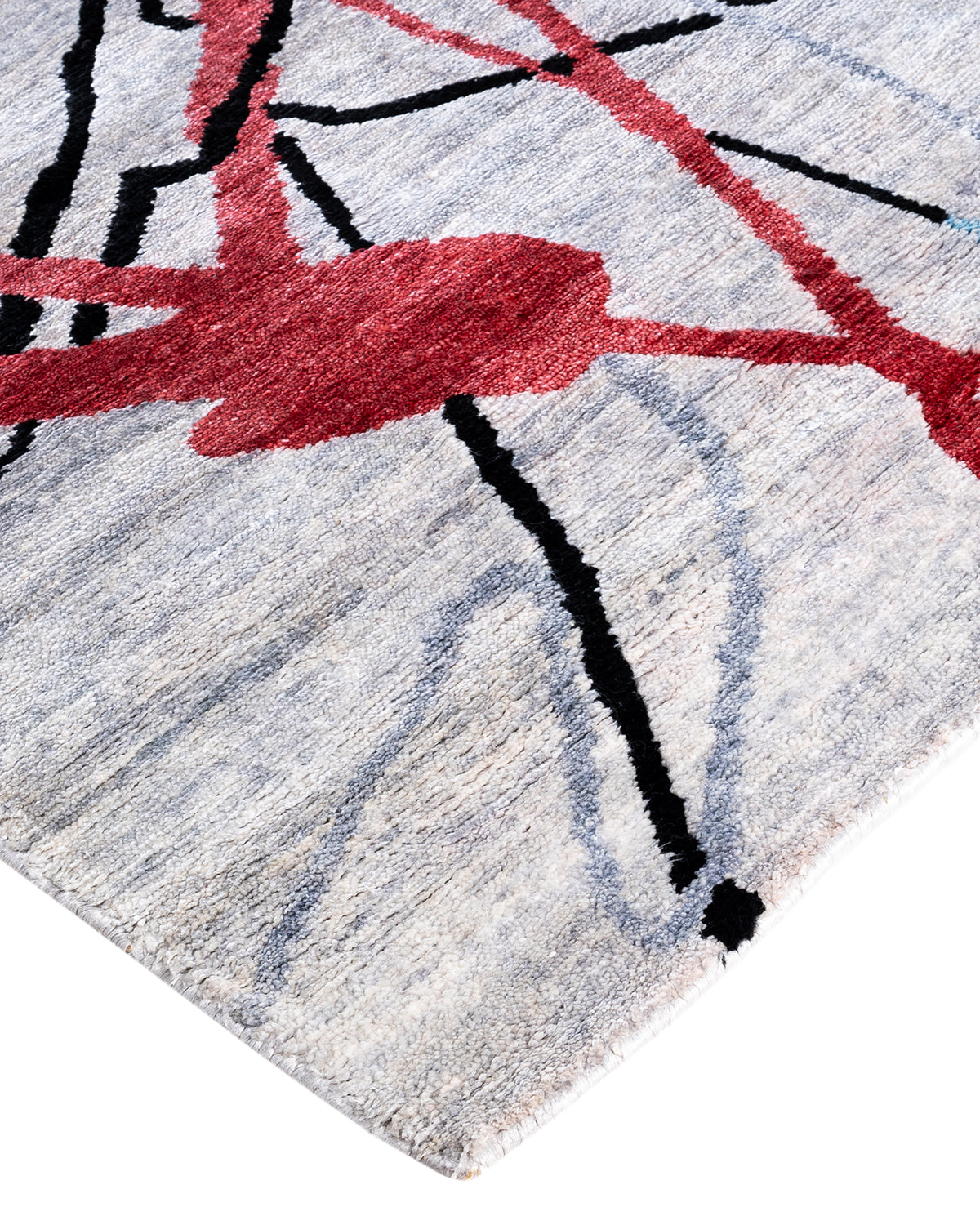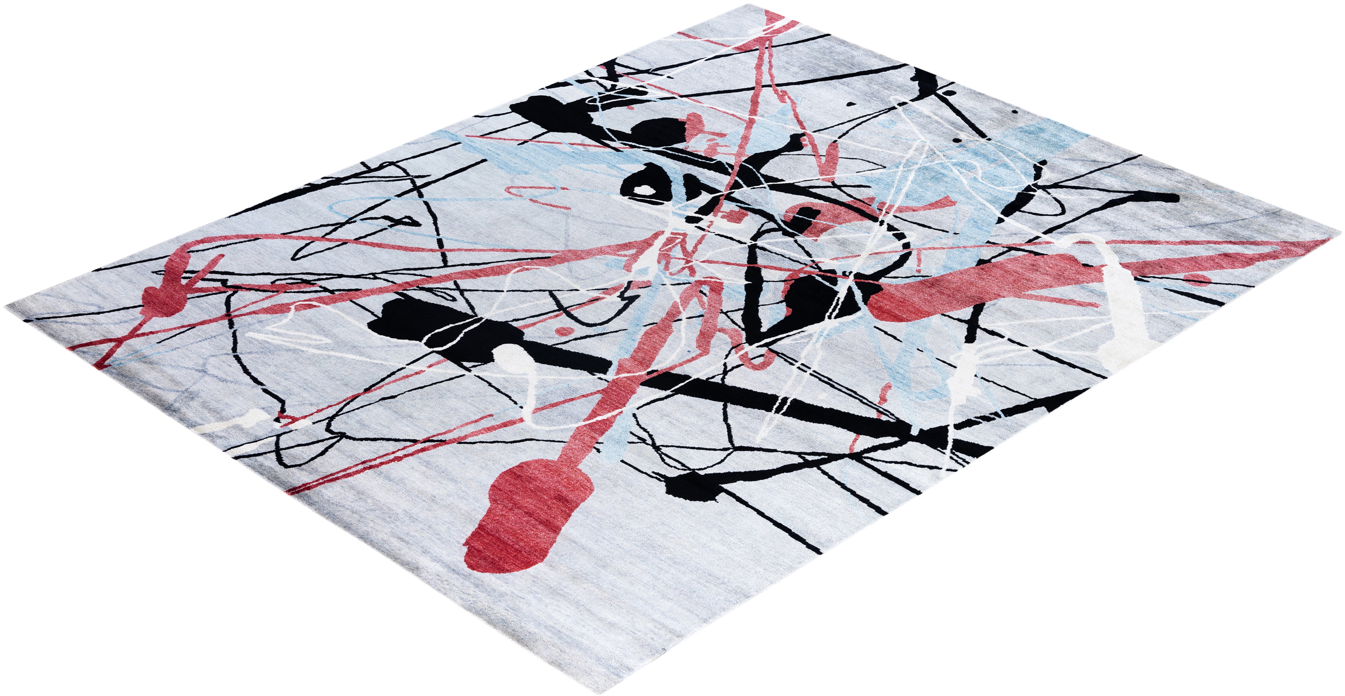 Contemporary Modern Hand Knotted Abstract Silk Gray Area Rug 8' 0" x 10' 1"