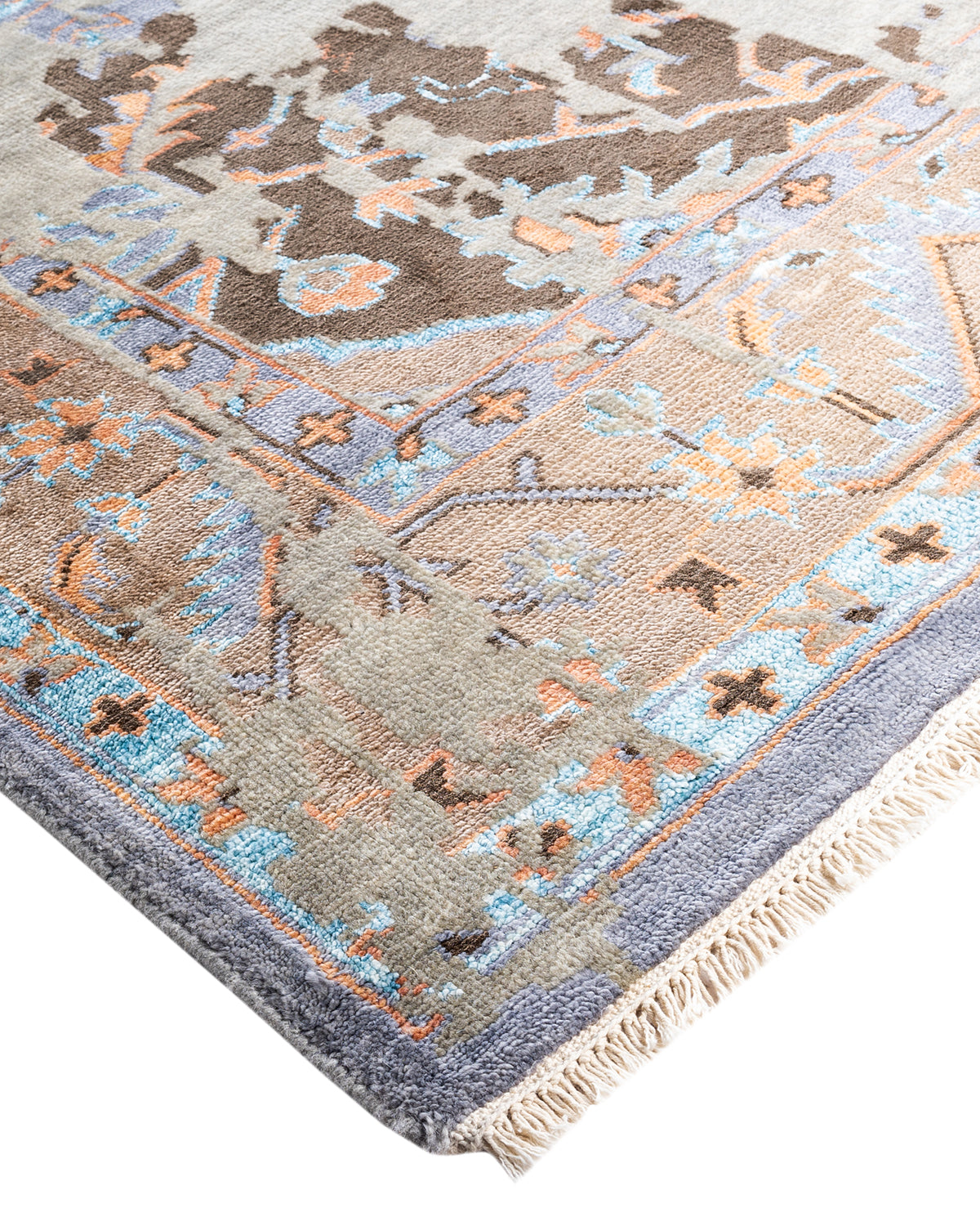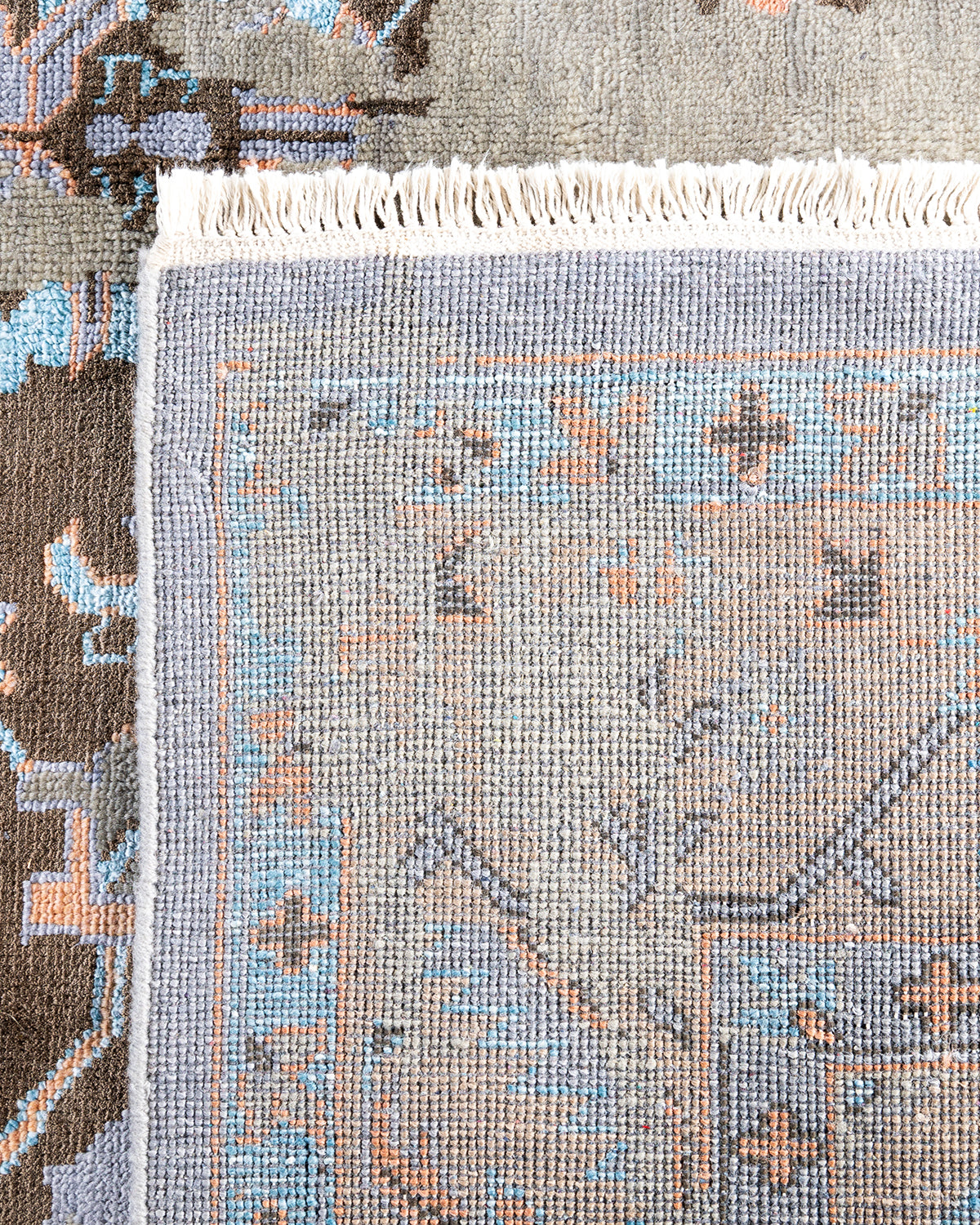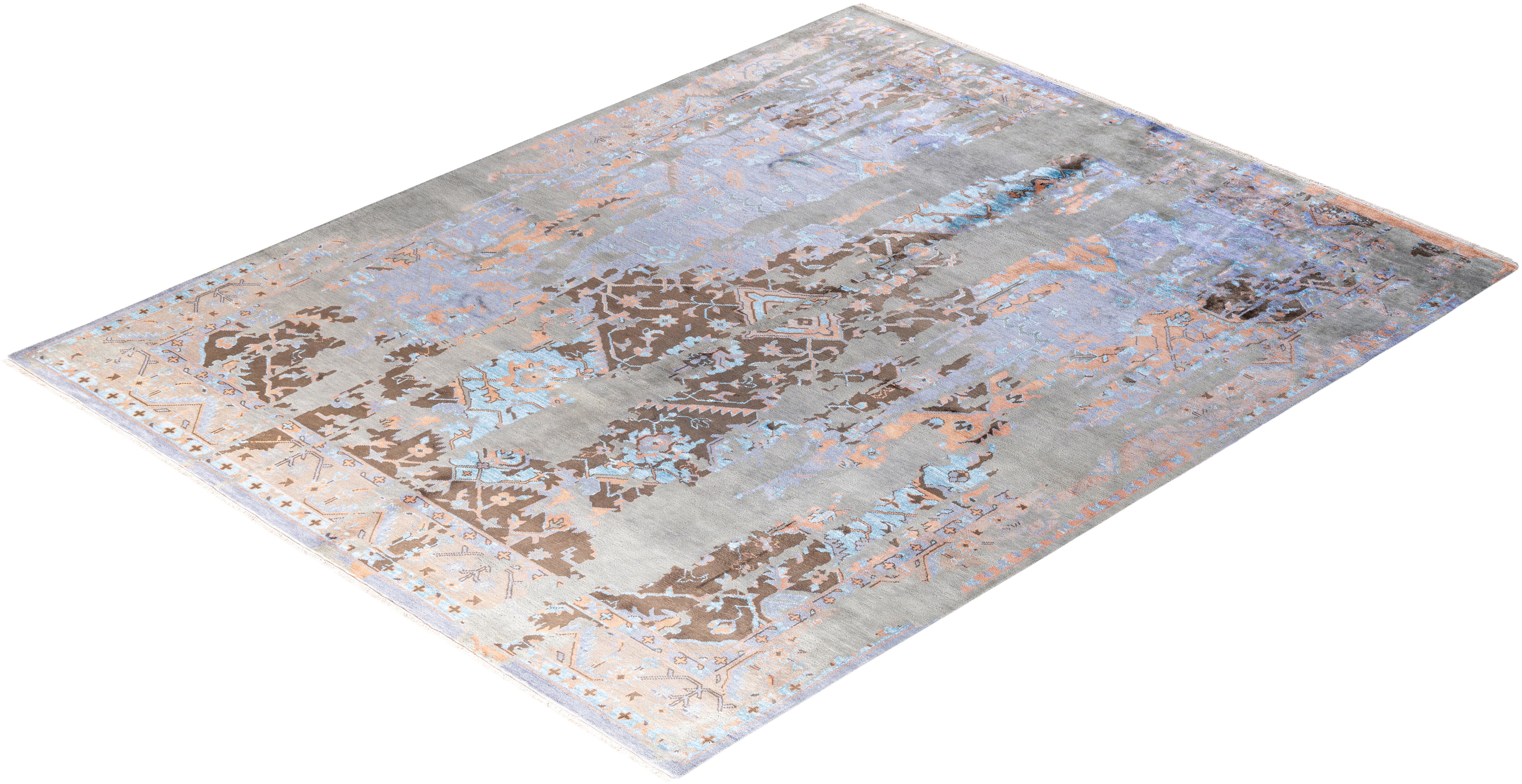 Traditional Ikat Hand Knotted Abstract Silk & Wool Blend Gray Area Rug 8' 1" x 10' 2"