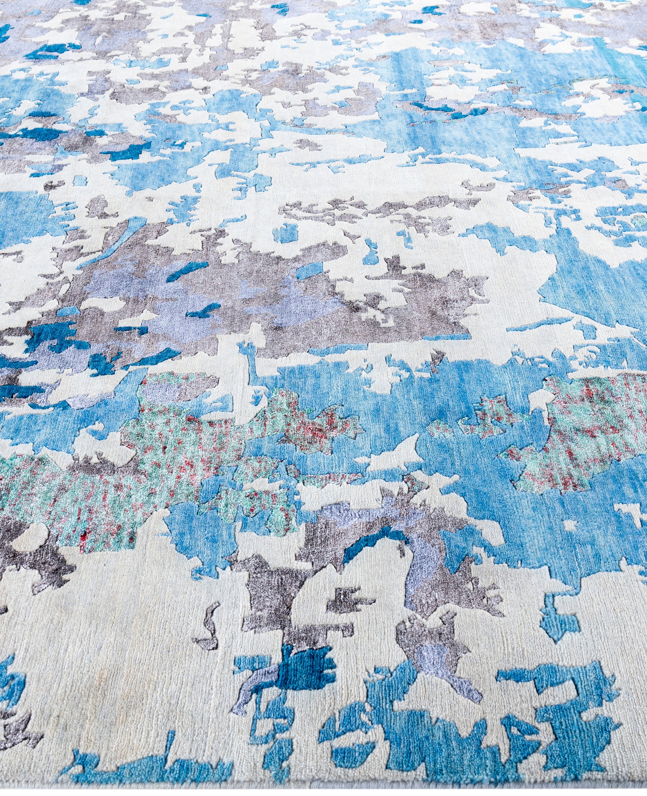 Contemporary Abstarct Wool, Silk Hand Knotted Beige Area Rug 8' 2" x 9' 10"
