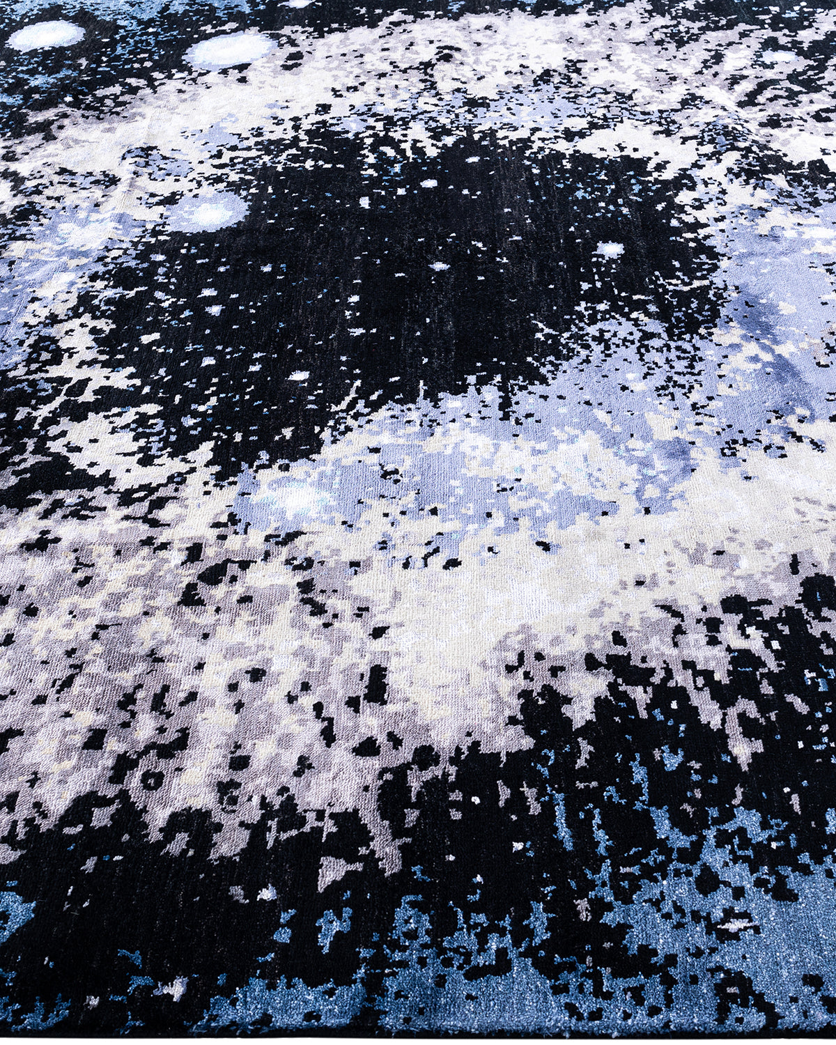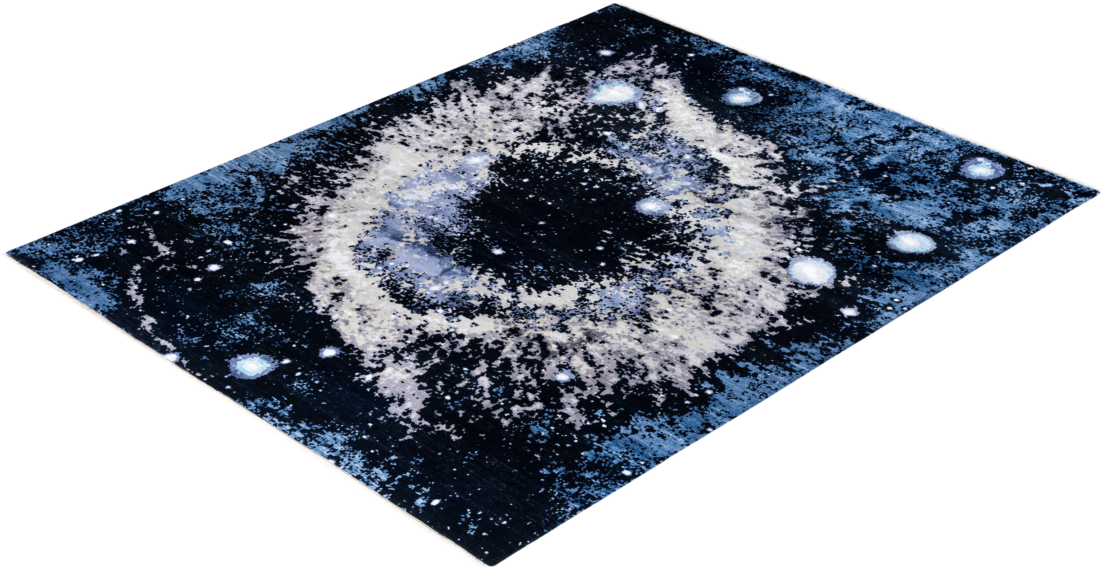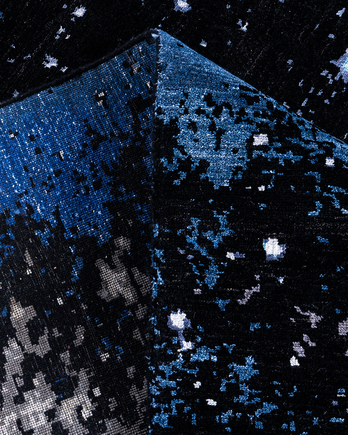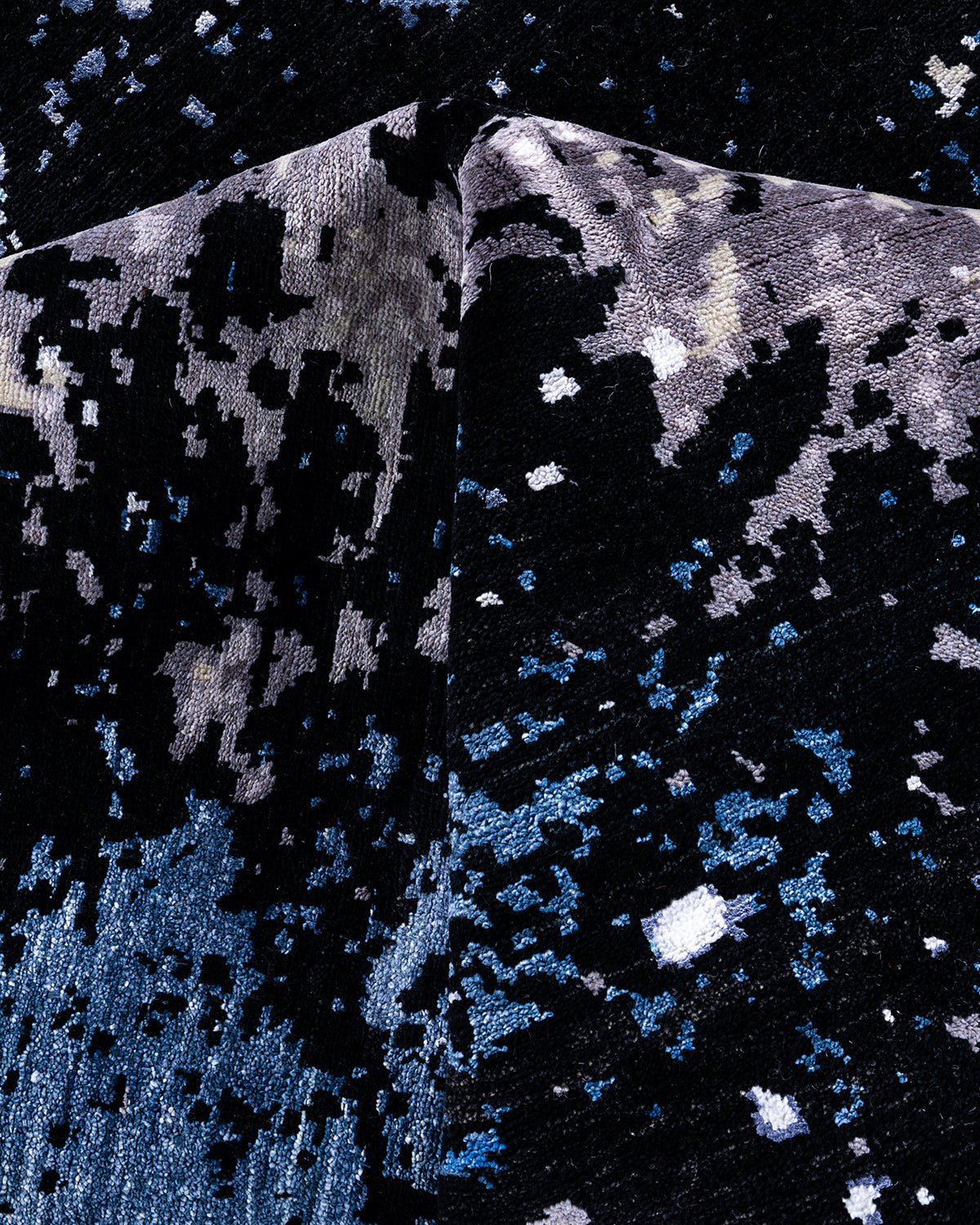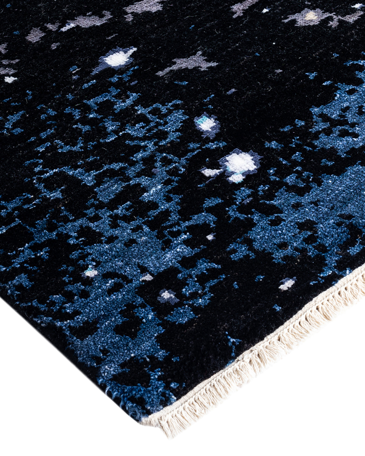 Traditional Ikat Hand Knotted Abstract Silk & Wool Blend Black Area Rug 8' 2" x 10' 0"