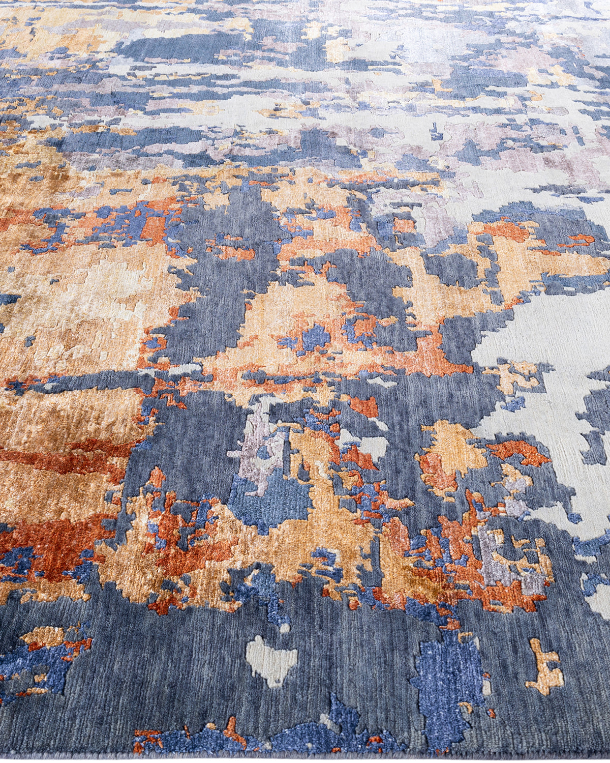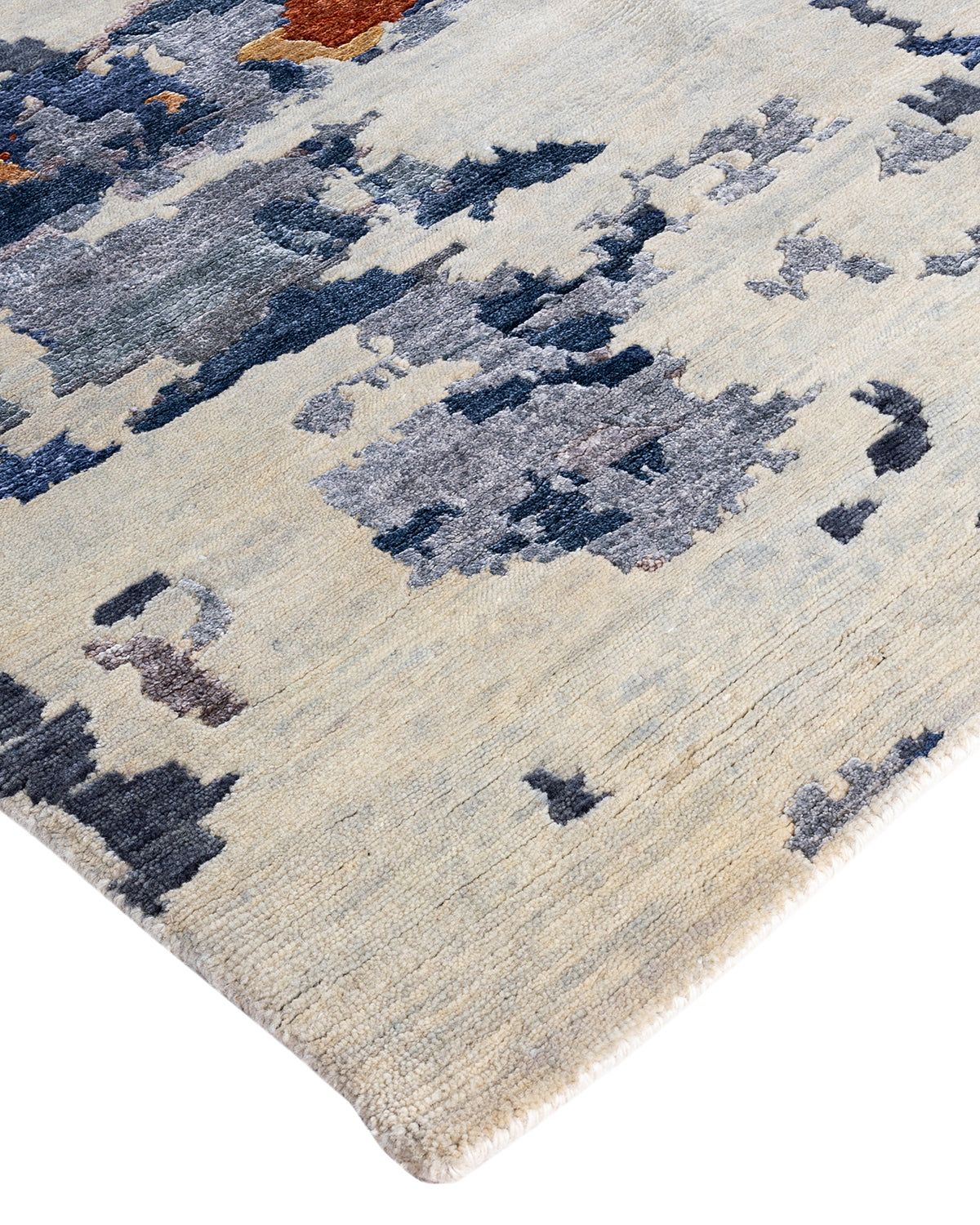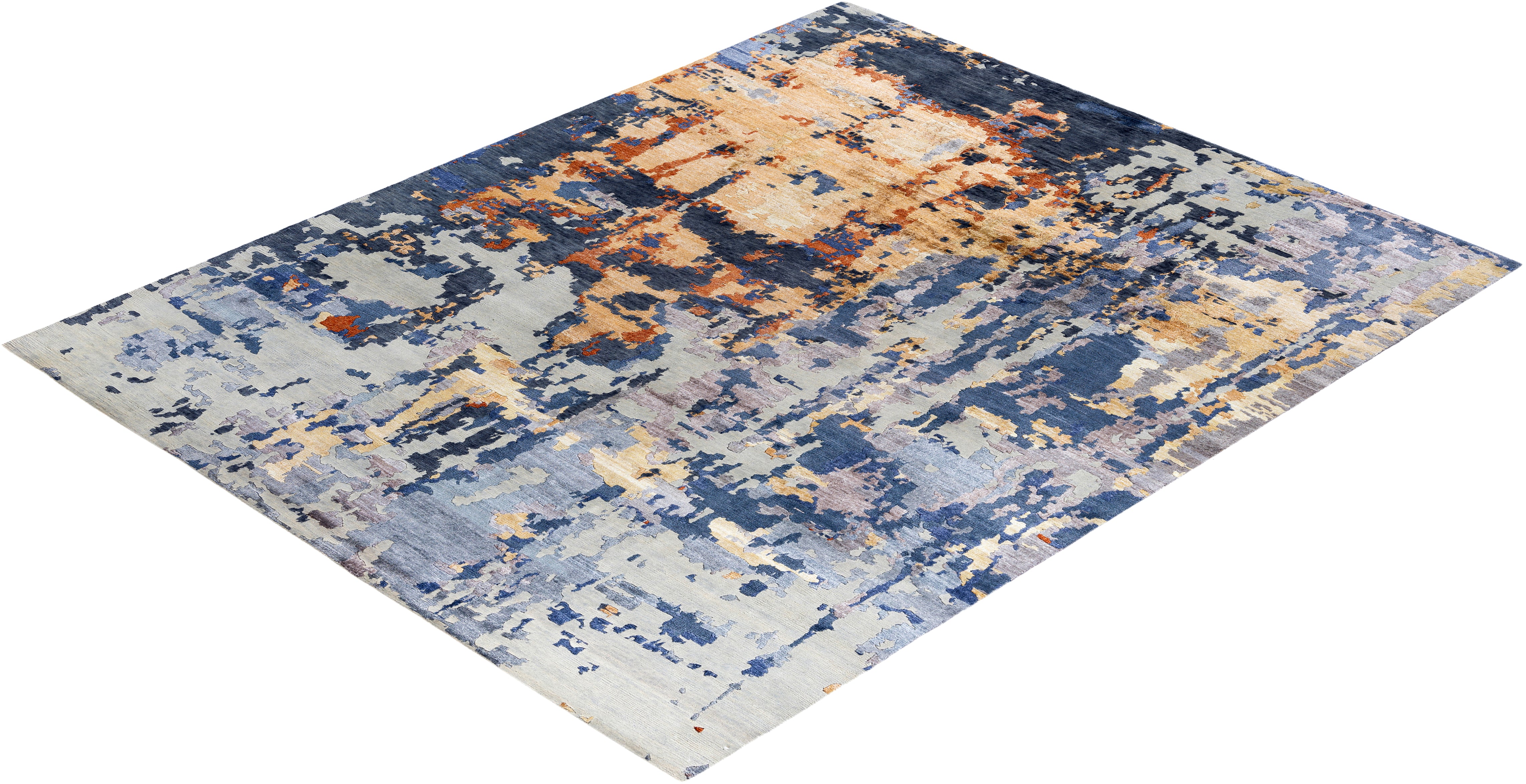Contemporary Modern Hand Knotted Abstract Silk & Wool Blend Gray Area Rug 8' 1" x 10' 1"