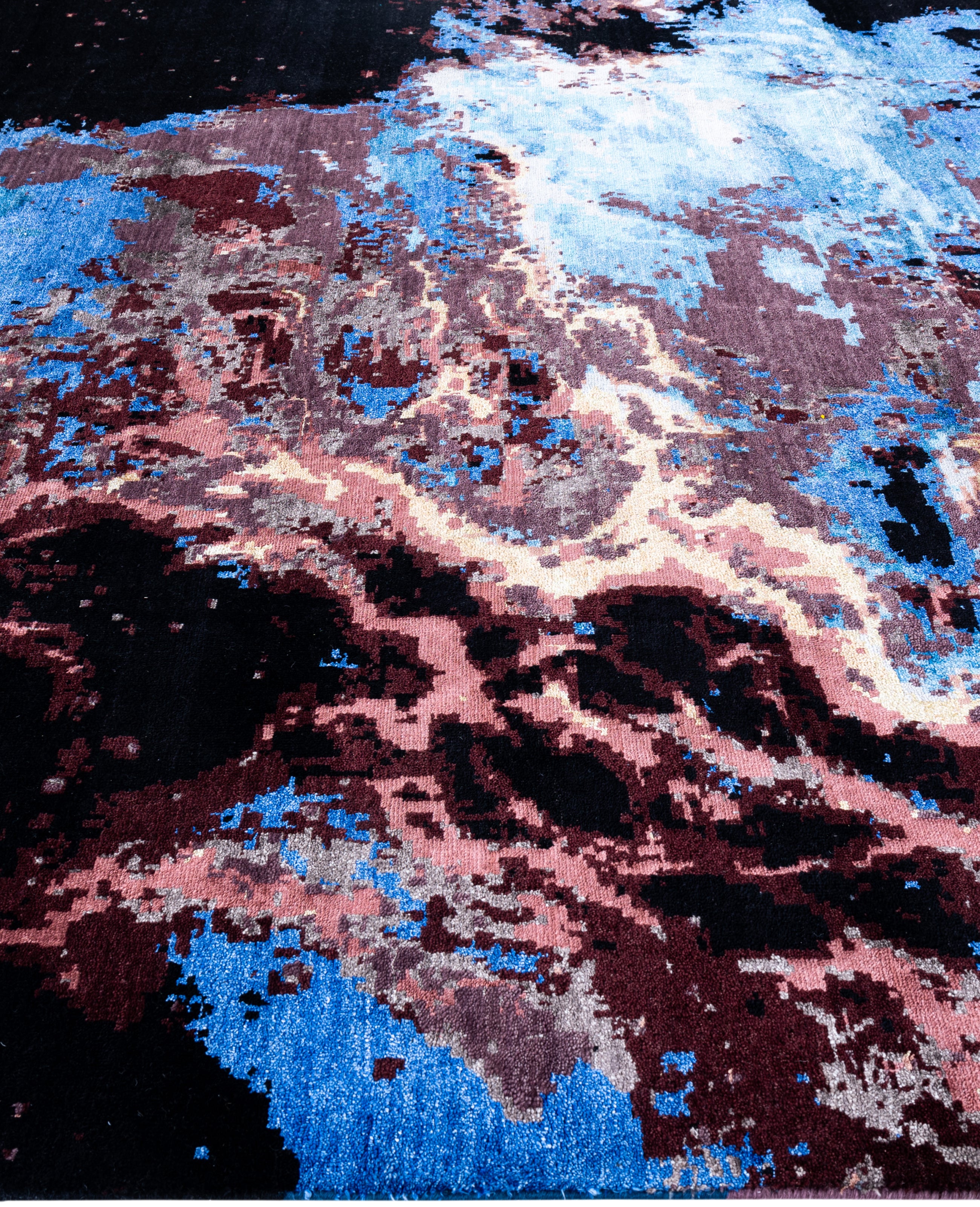 Traditional Abstarct Wool, Silk Hand Knotted Black Area Rug 8' 2" x 10' 2"