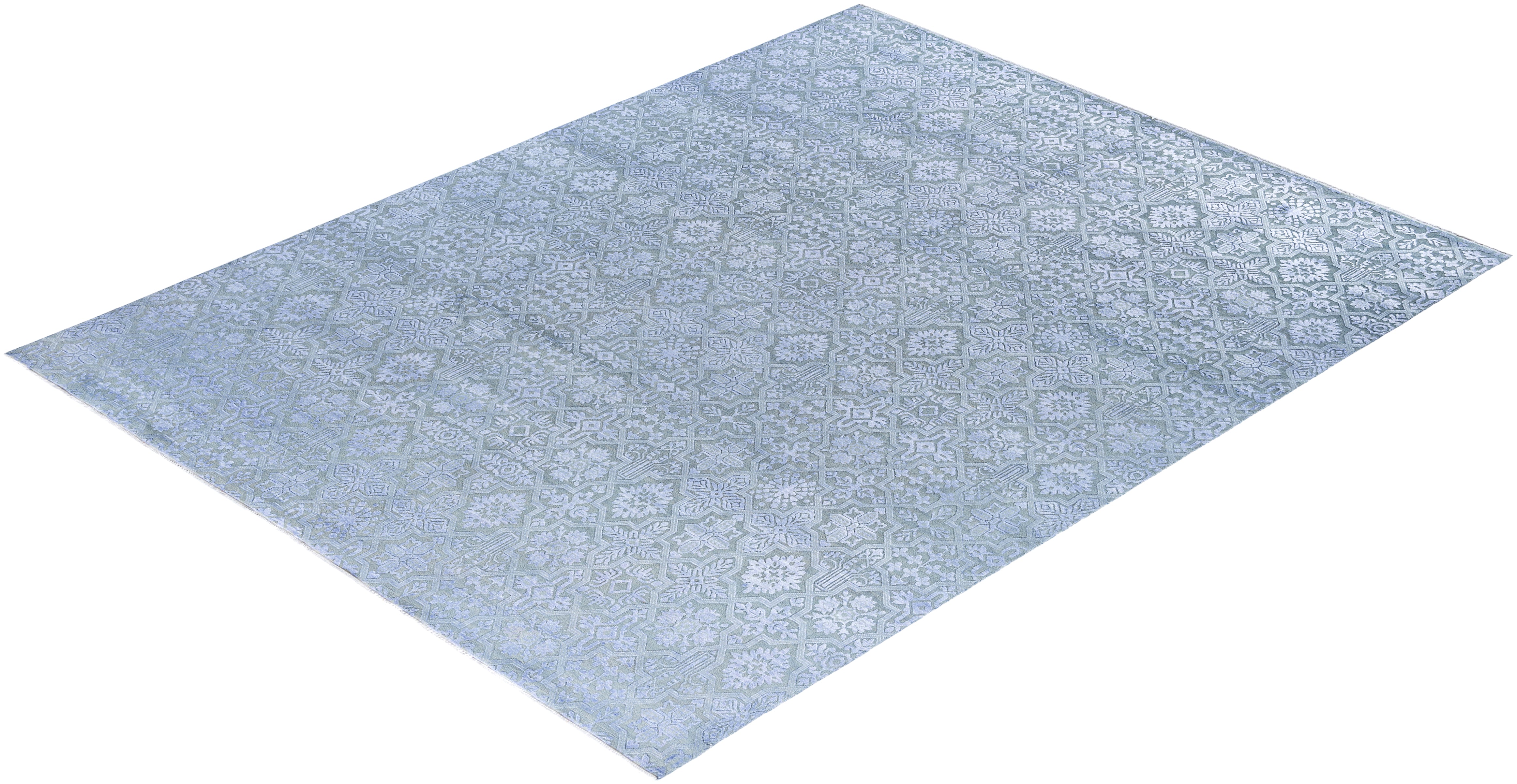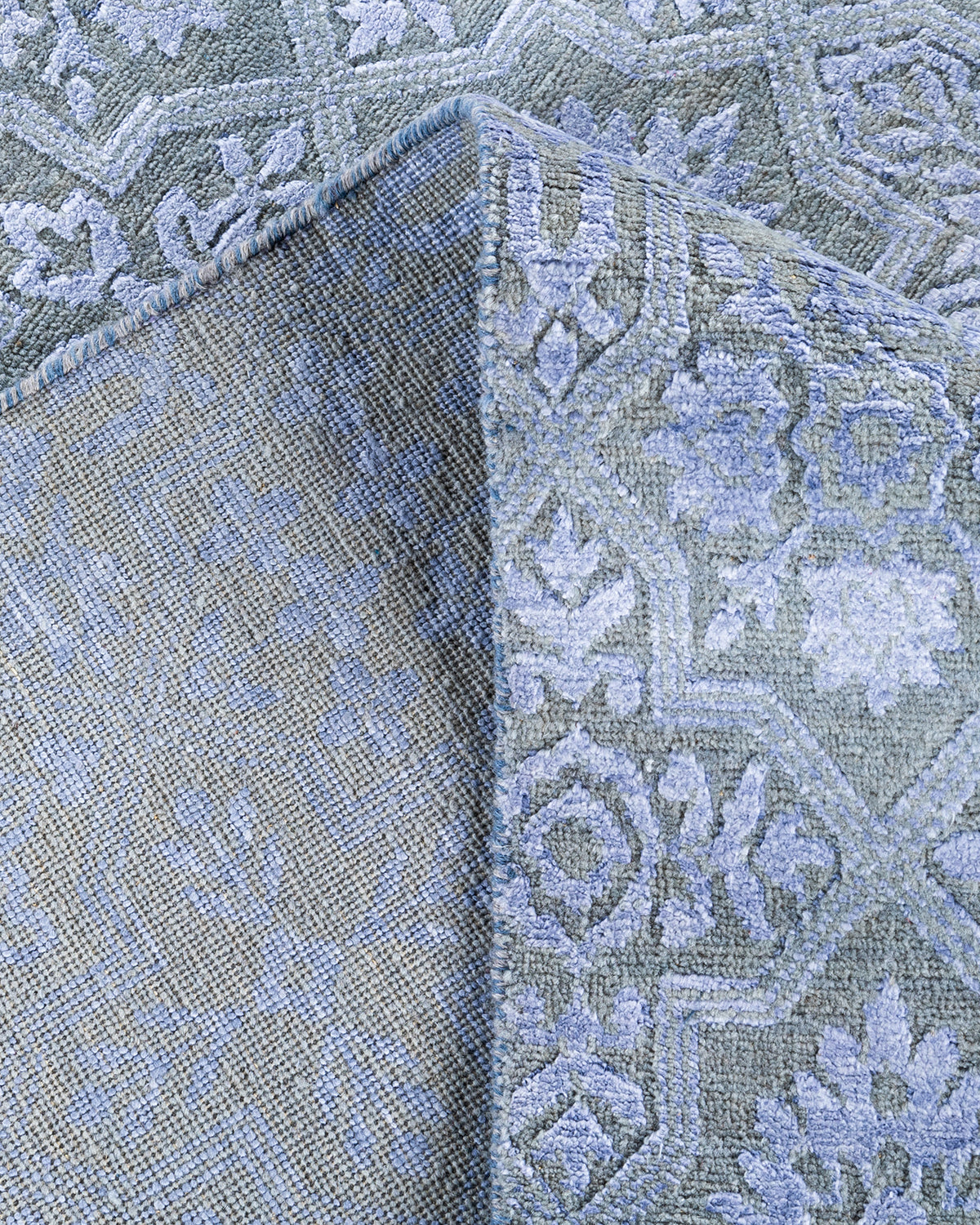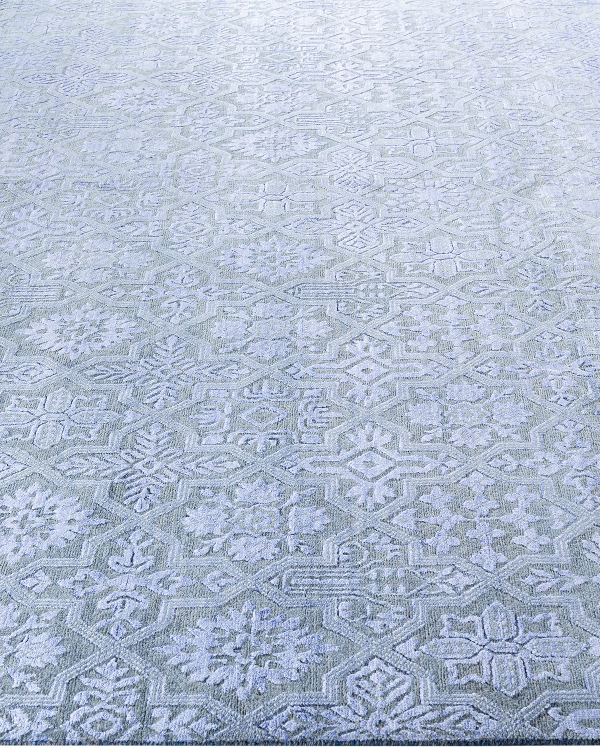 Traditional Ikat Hand Knotted Floral Silk & Wool Blend Gray Area Rug 8' 0" x 10' 2"