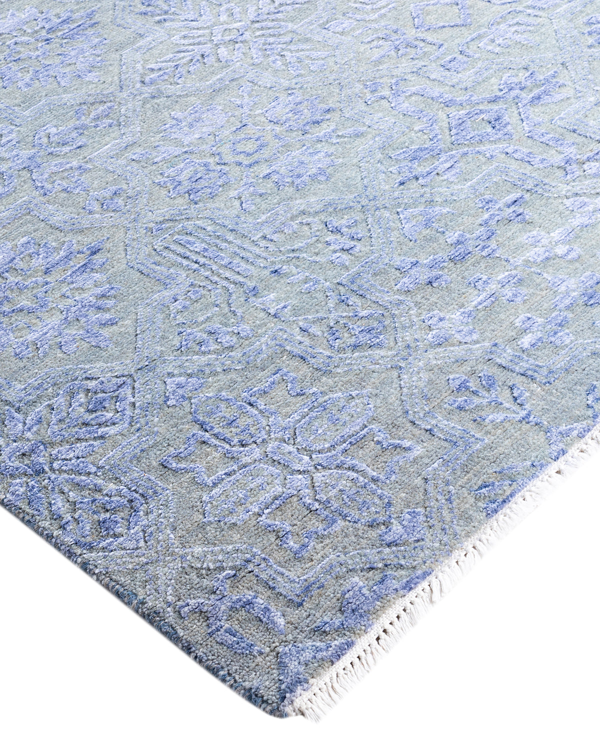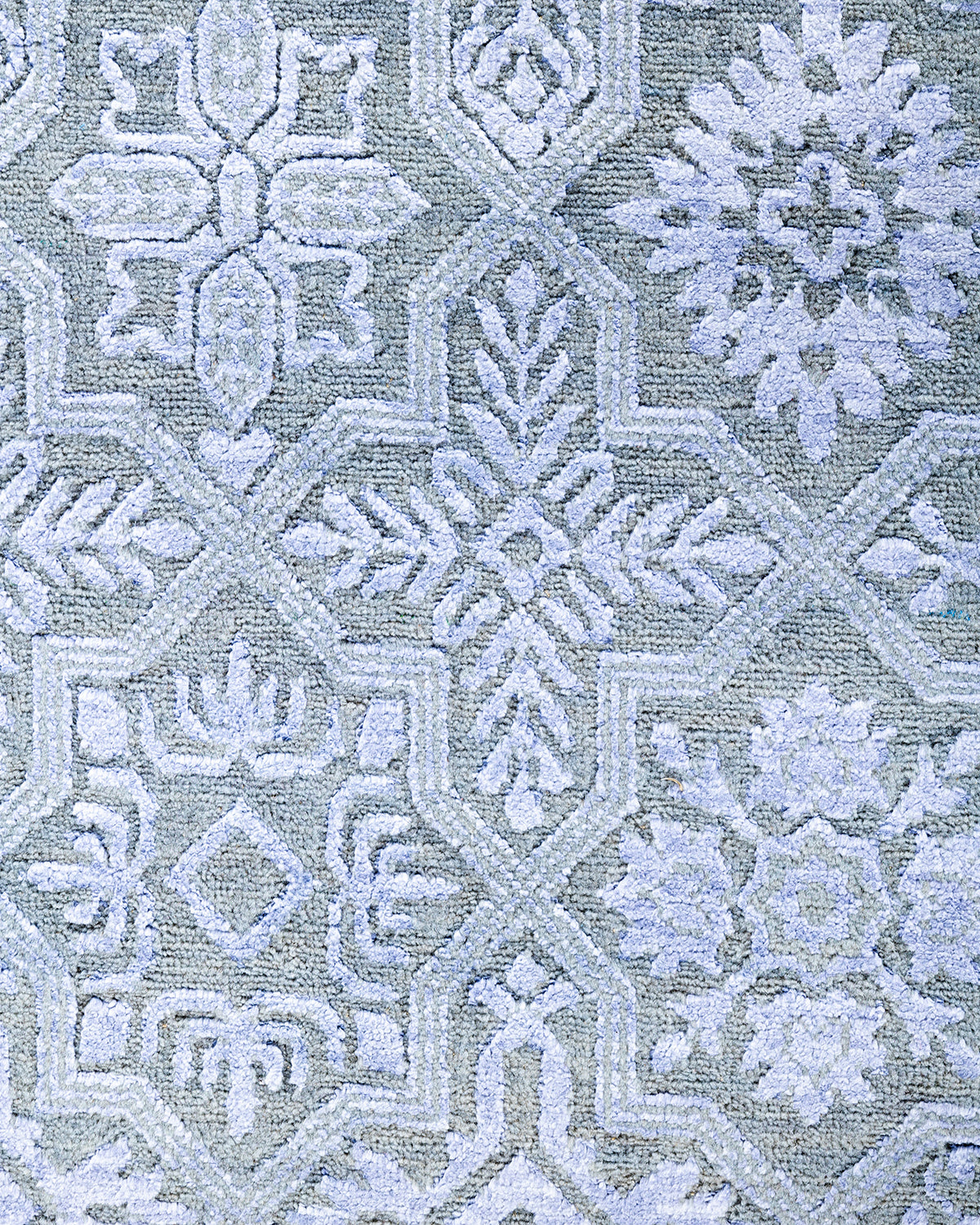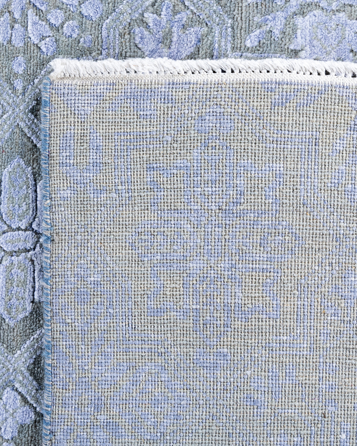 Traditional Ikat Hand Knotted Floral Silk & Wool Blend Gray Area Rug 8' 0" x 10' 2"