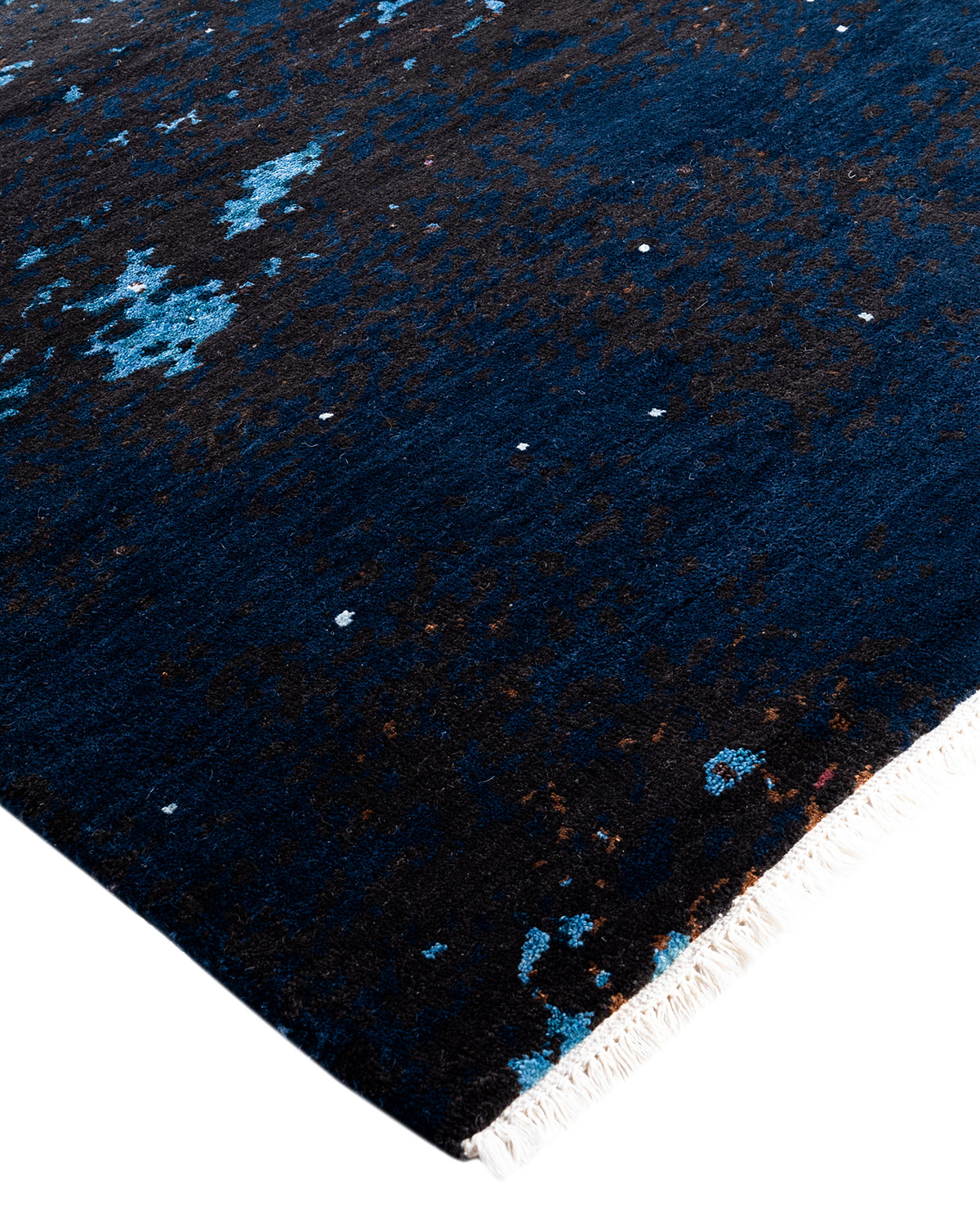 Traditional Ikat Hand Knotted Abstract Silk & Wool Blend Navy Area Rug 8' 3" x 10' 1"
