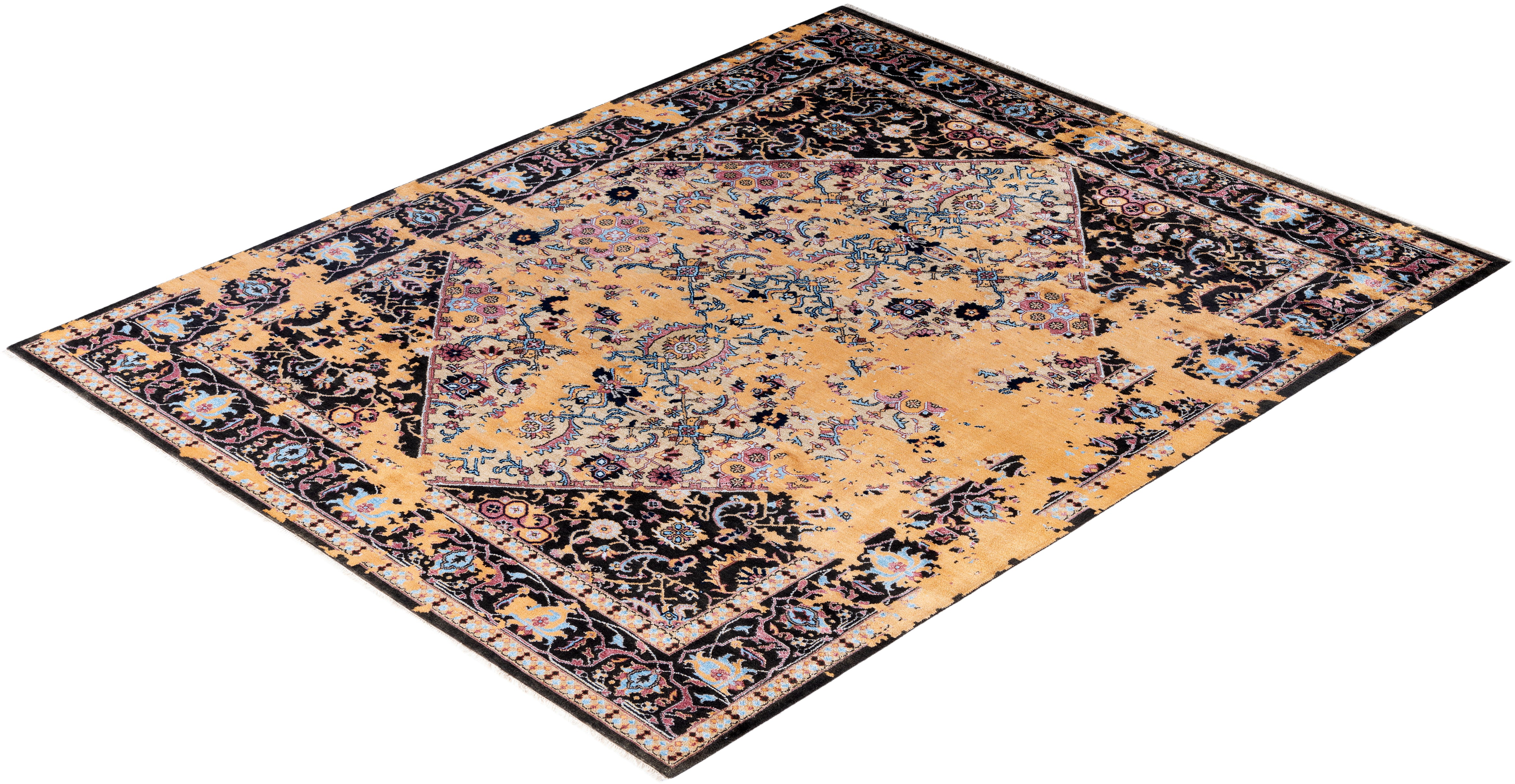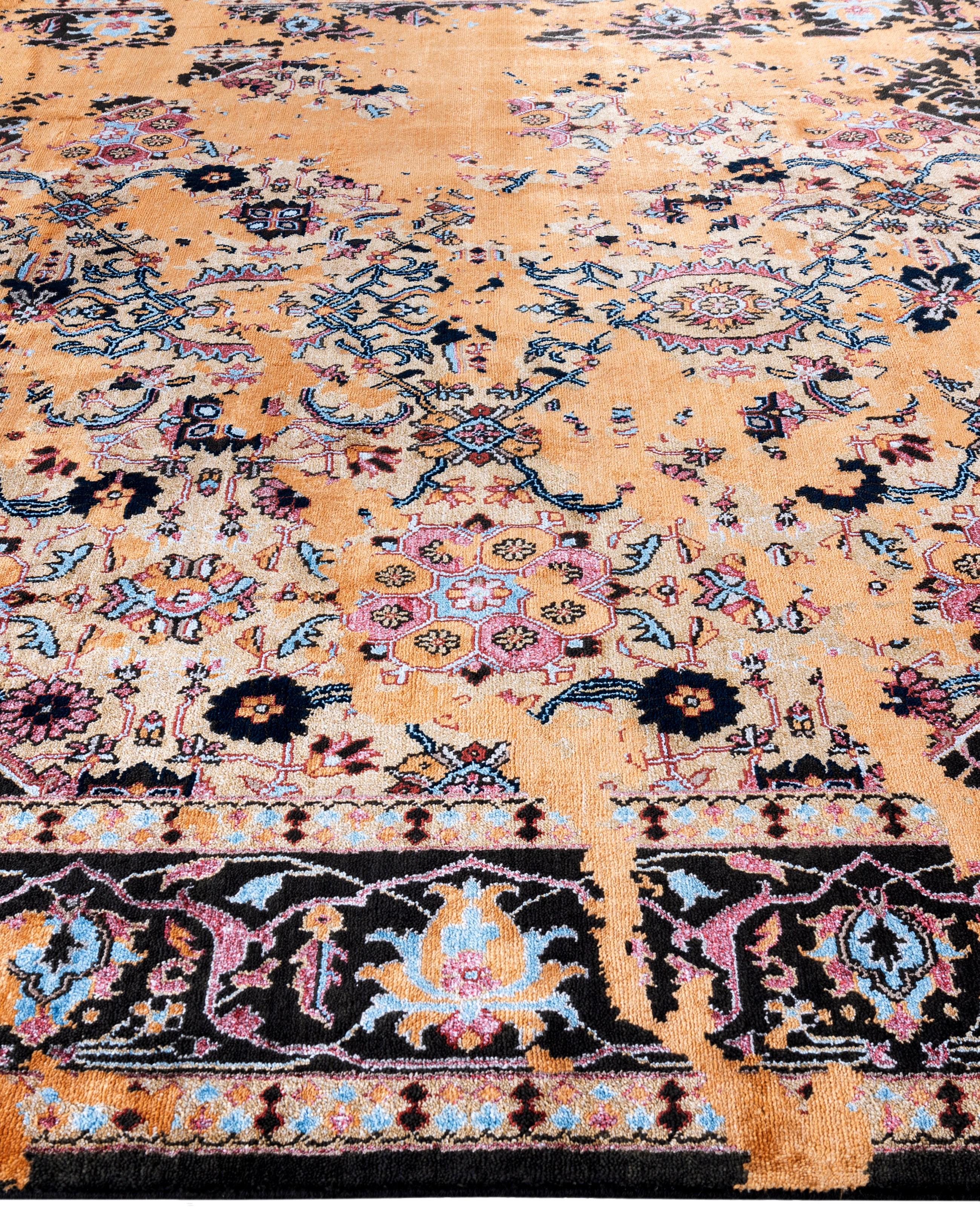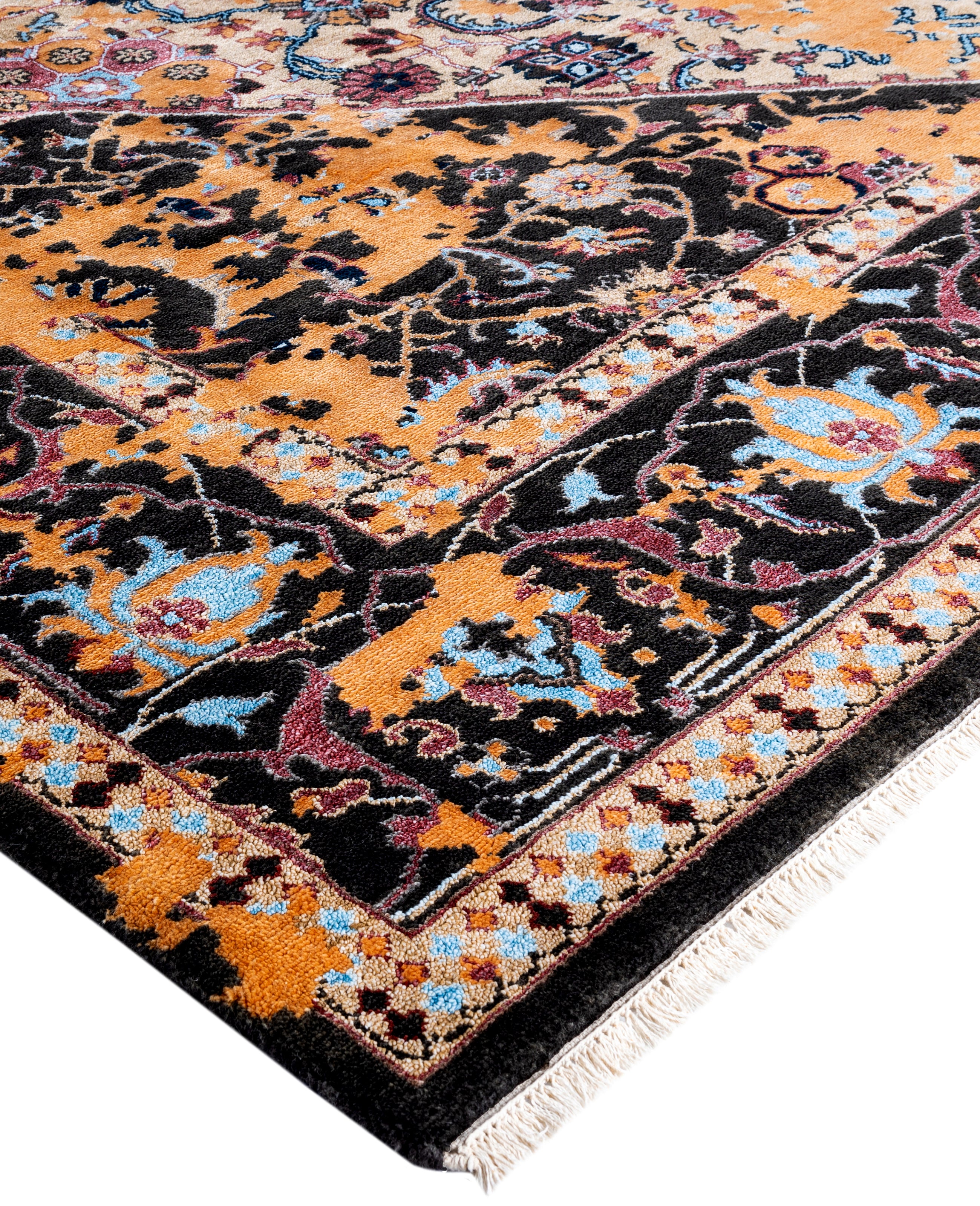 Traditional Abstarct Silk, Wool Hand Knotted Black Area Rug 8' 2" x 10' 2"