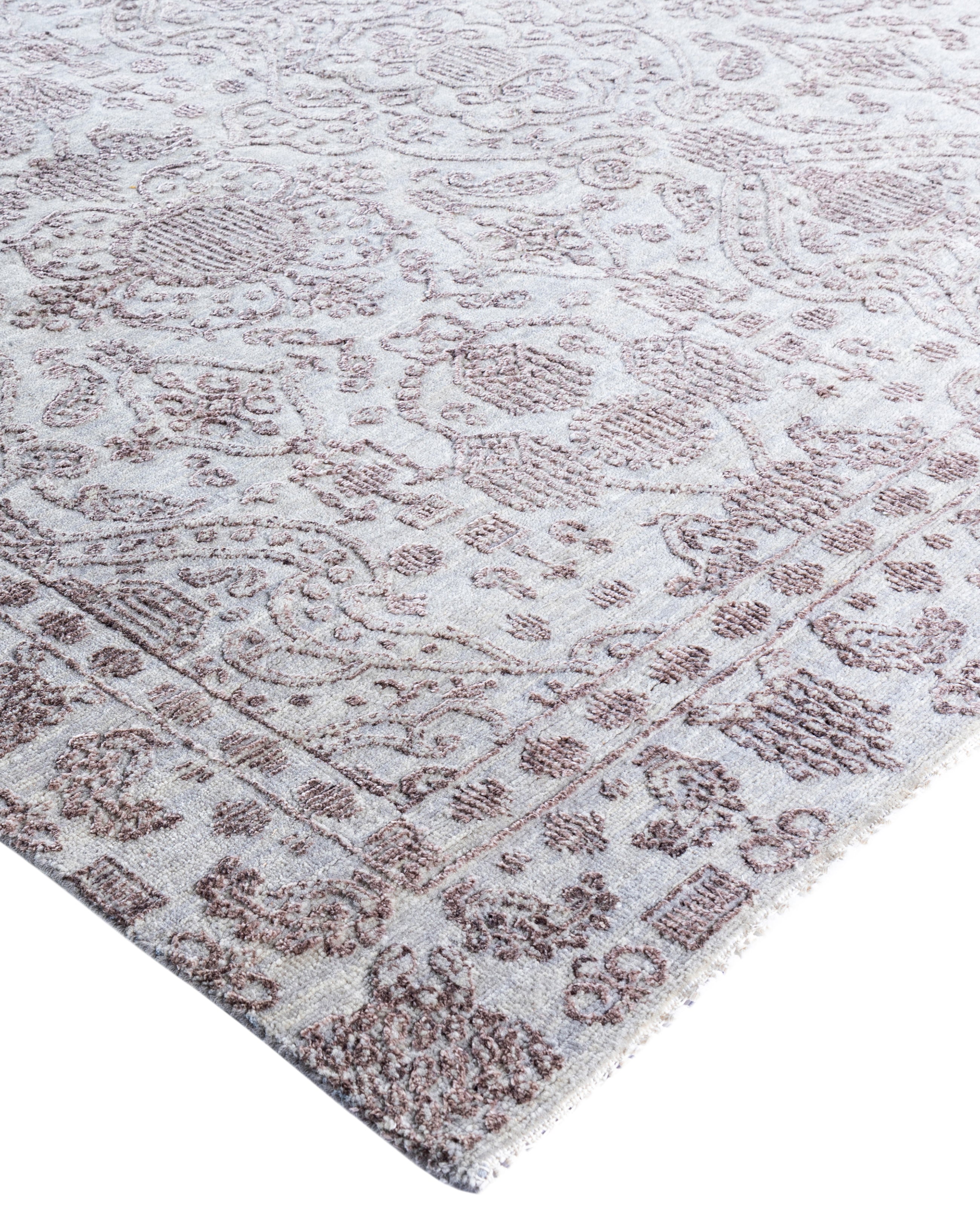 Traditional Floral Wool, Silk Hand Knotted Gray Area Rug 8' 0" x 10' 1"