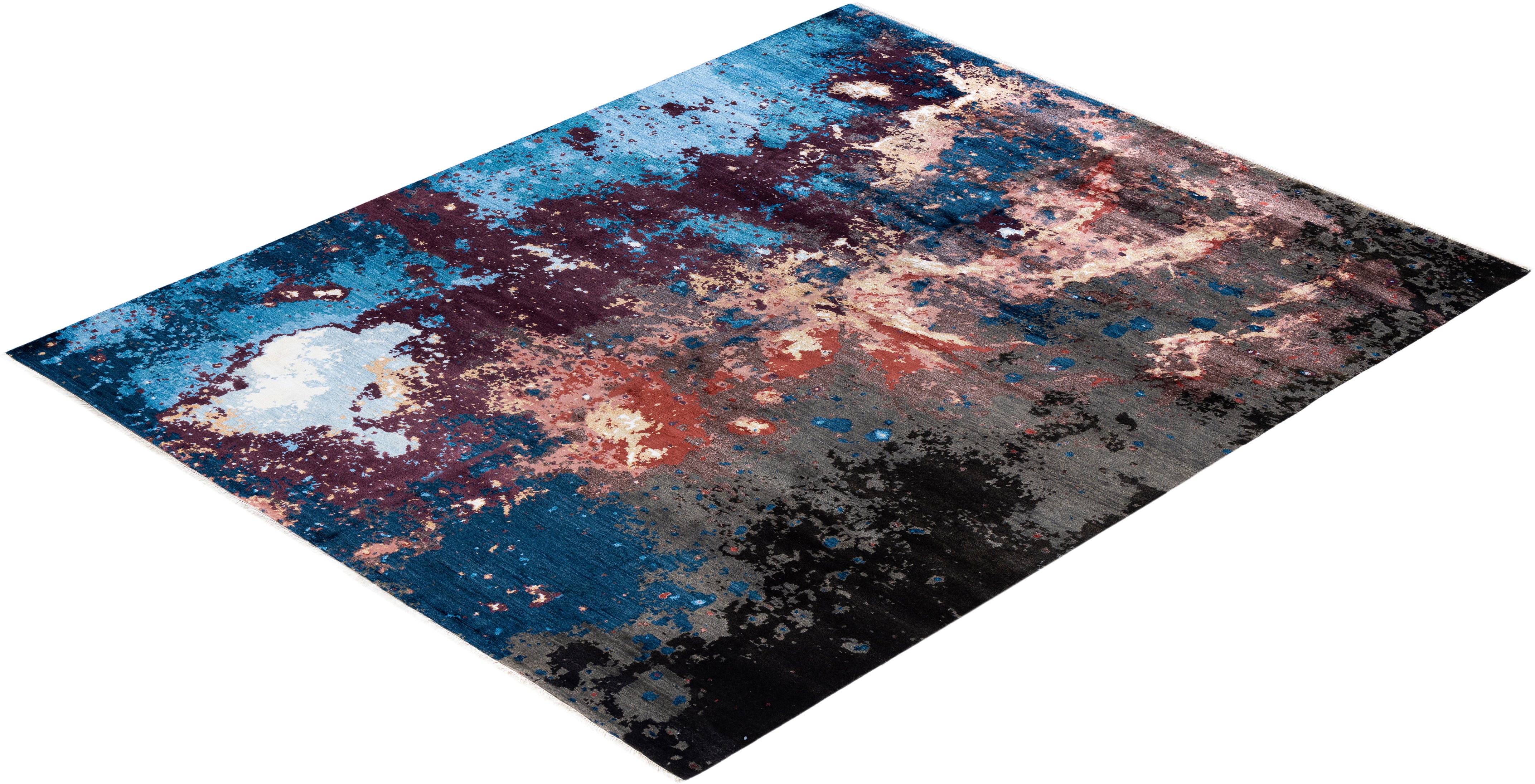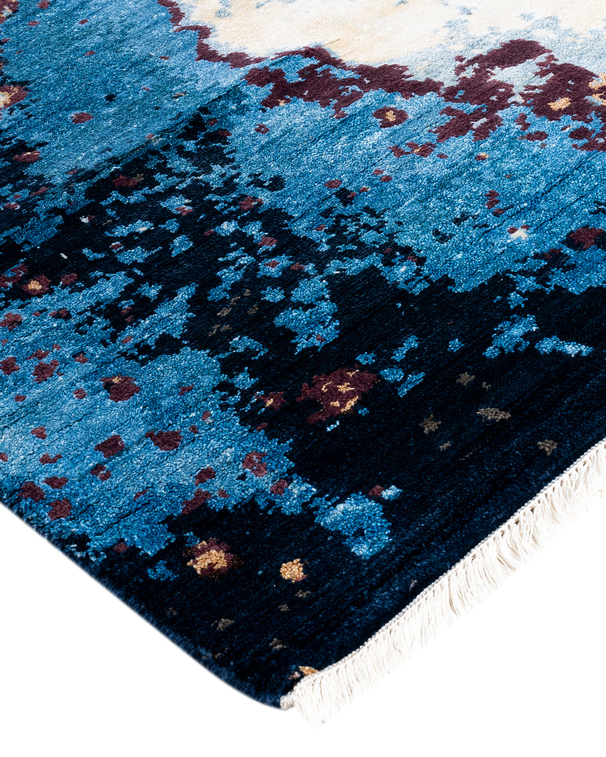 Traditional Ikat Hand Knotted Abstract Silk & Wool Blend Blue Area Rug 8' 2" x 10' 2"
