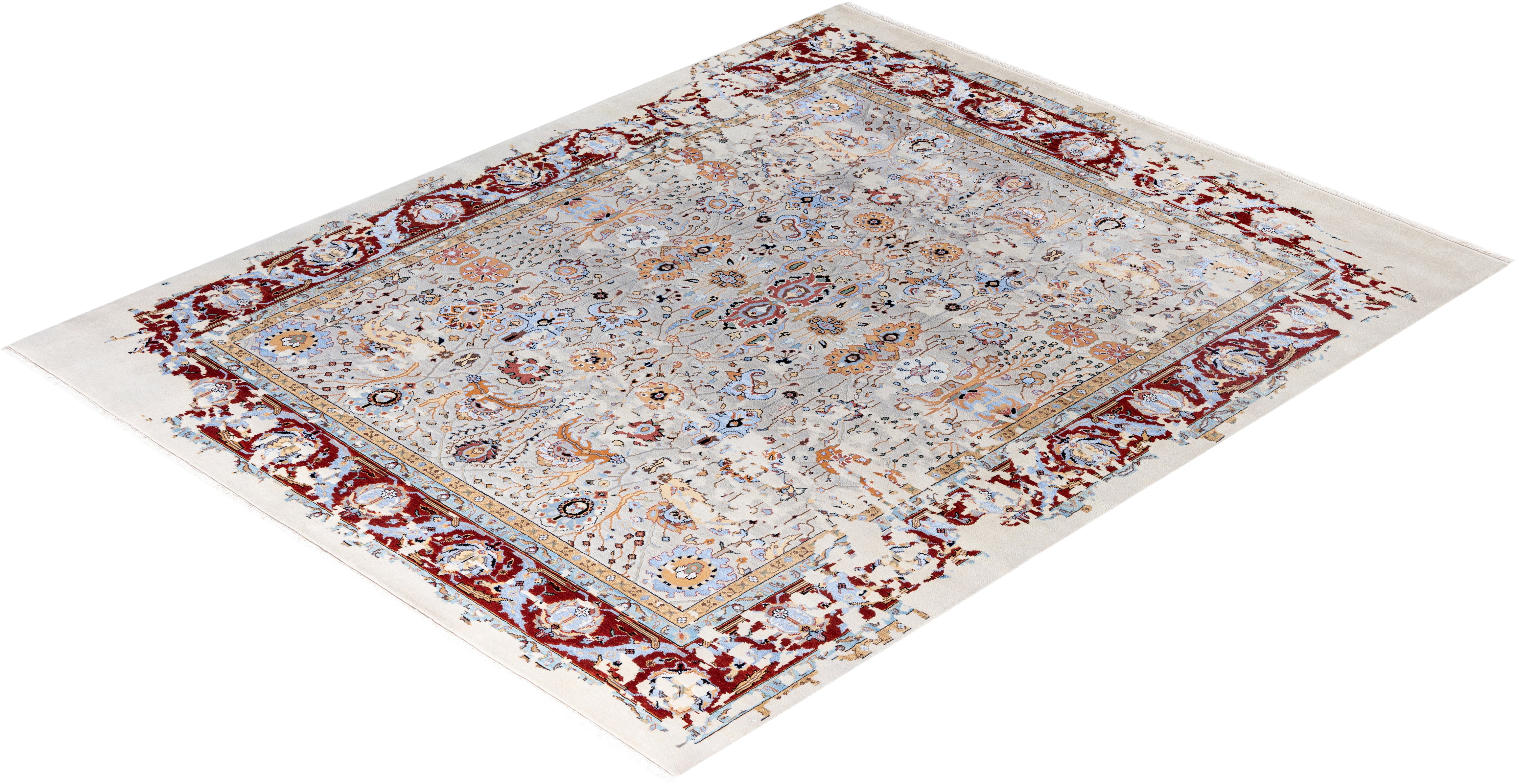 Traditional Abstarct Wool, Silk Hand Knotted Gray Area Rug 8' 2" x 10' 1"