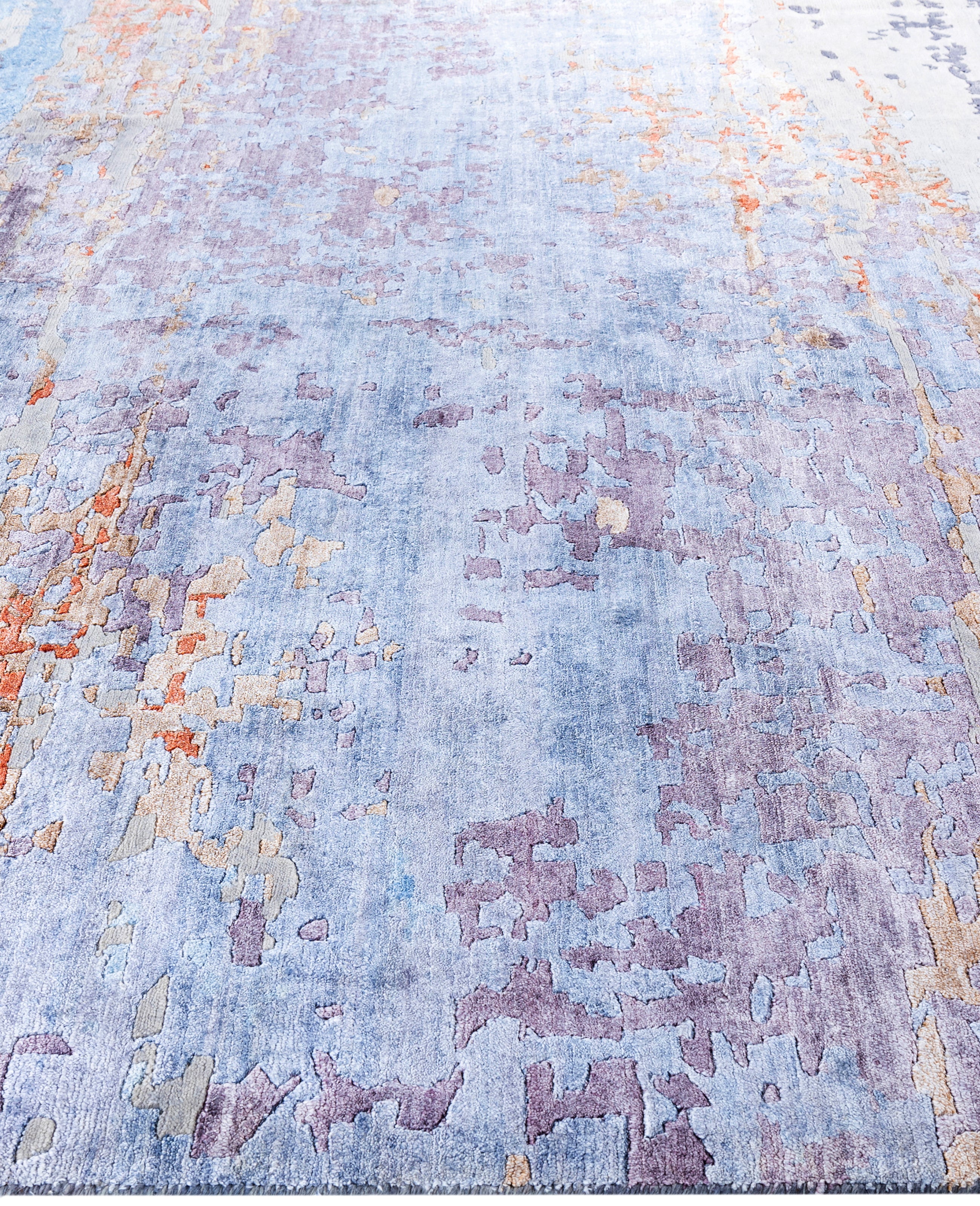 Contemporary Abstarct Wool, Silk Hand Knotted Gray Area Rug 7' 10" x 9' 10"