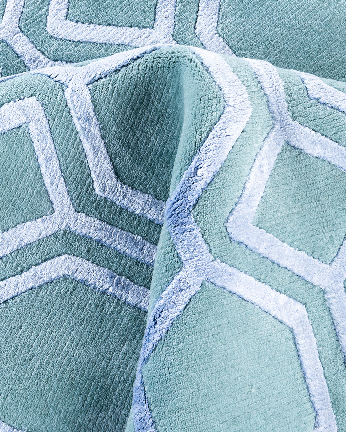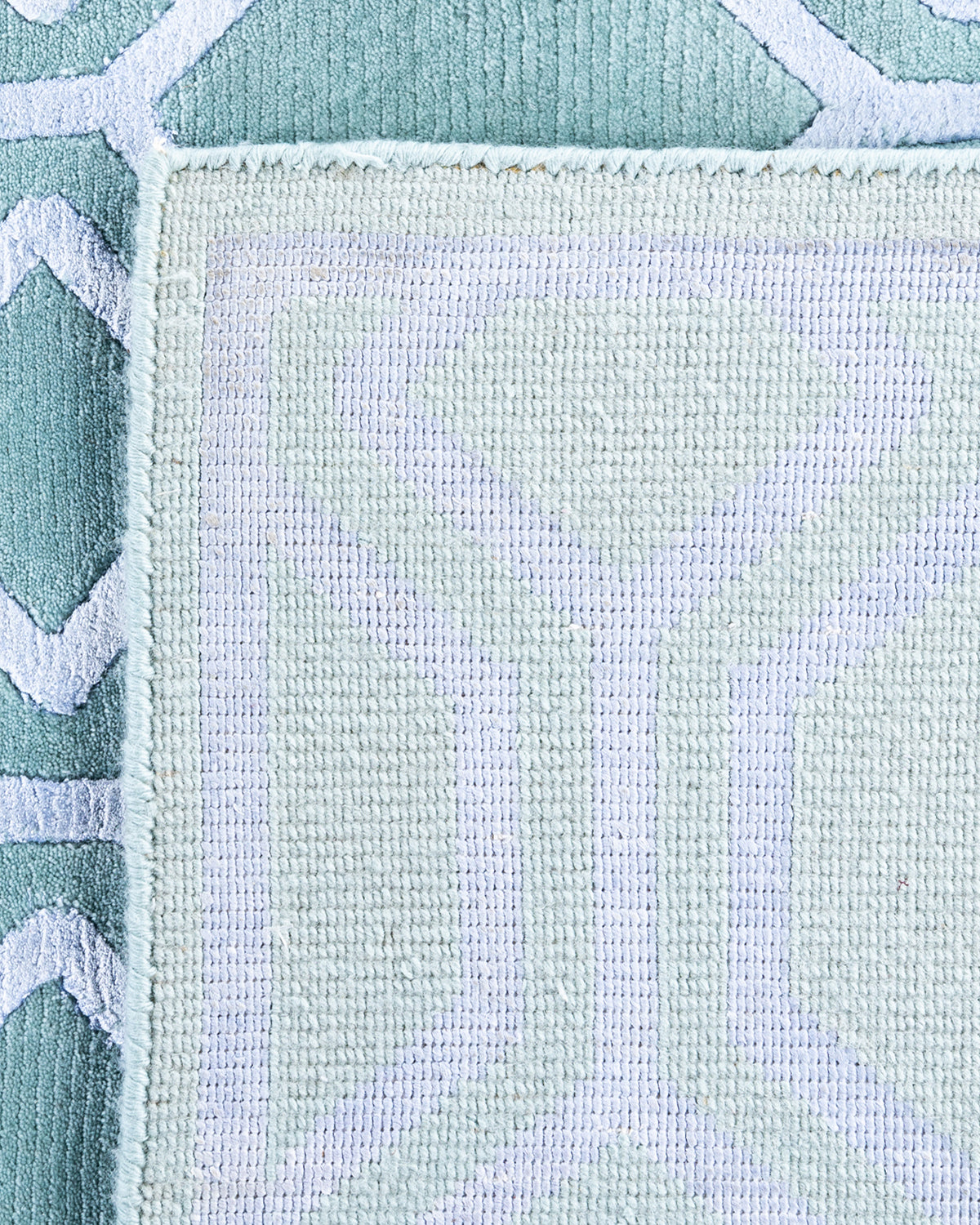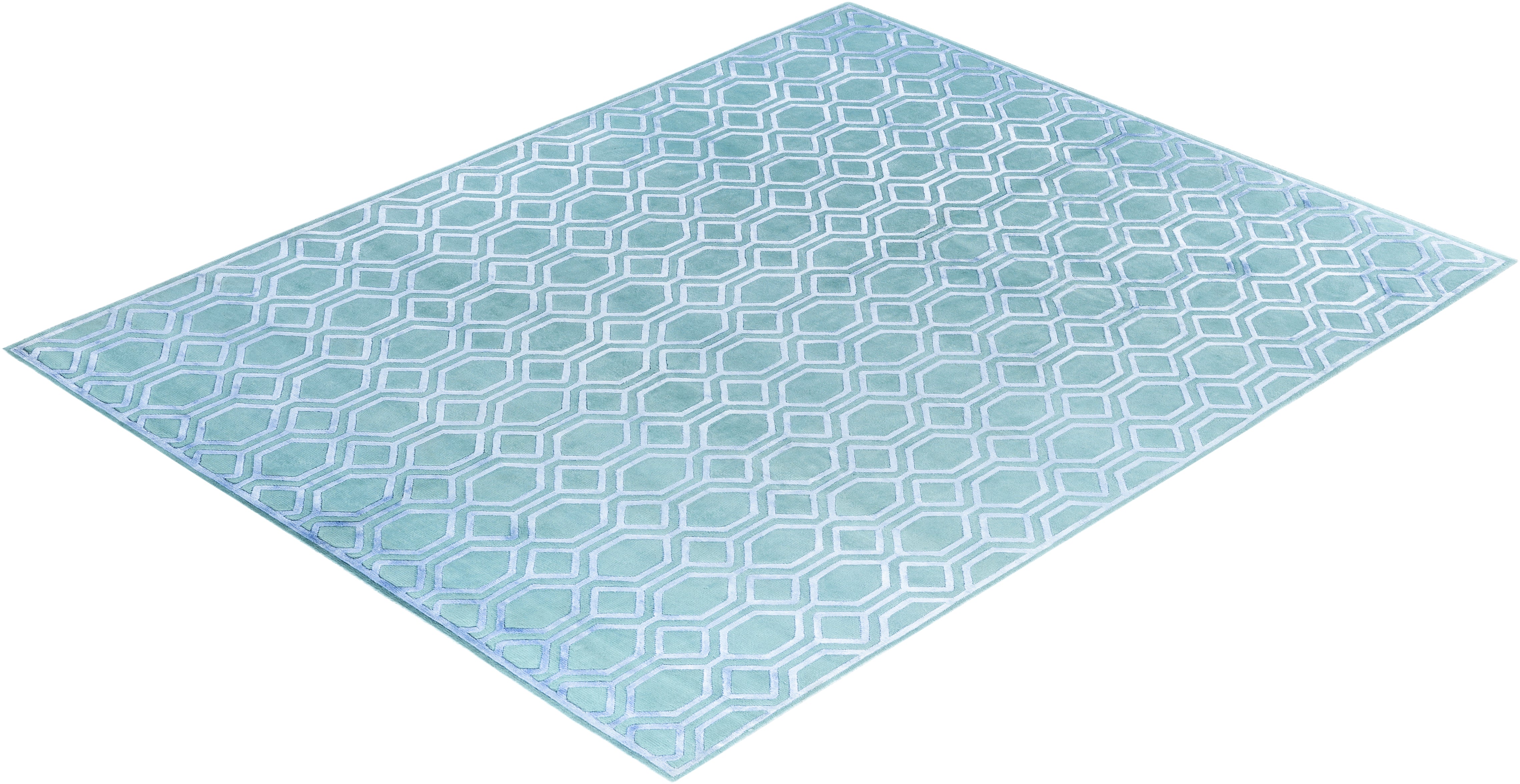 Contemporary Modern Hand Knotted Geometric Silk & Wool Blend Green Area Rug 8' 1" x 9' 10"