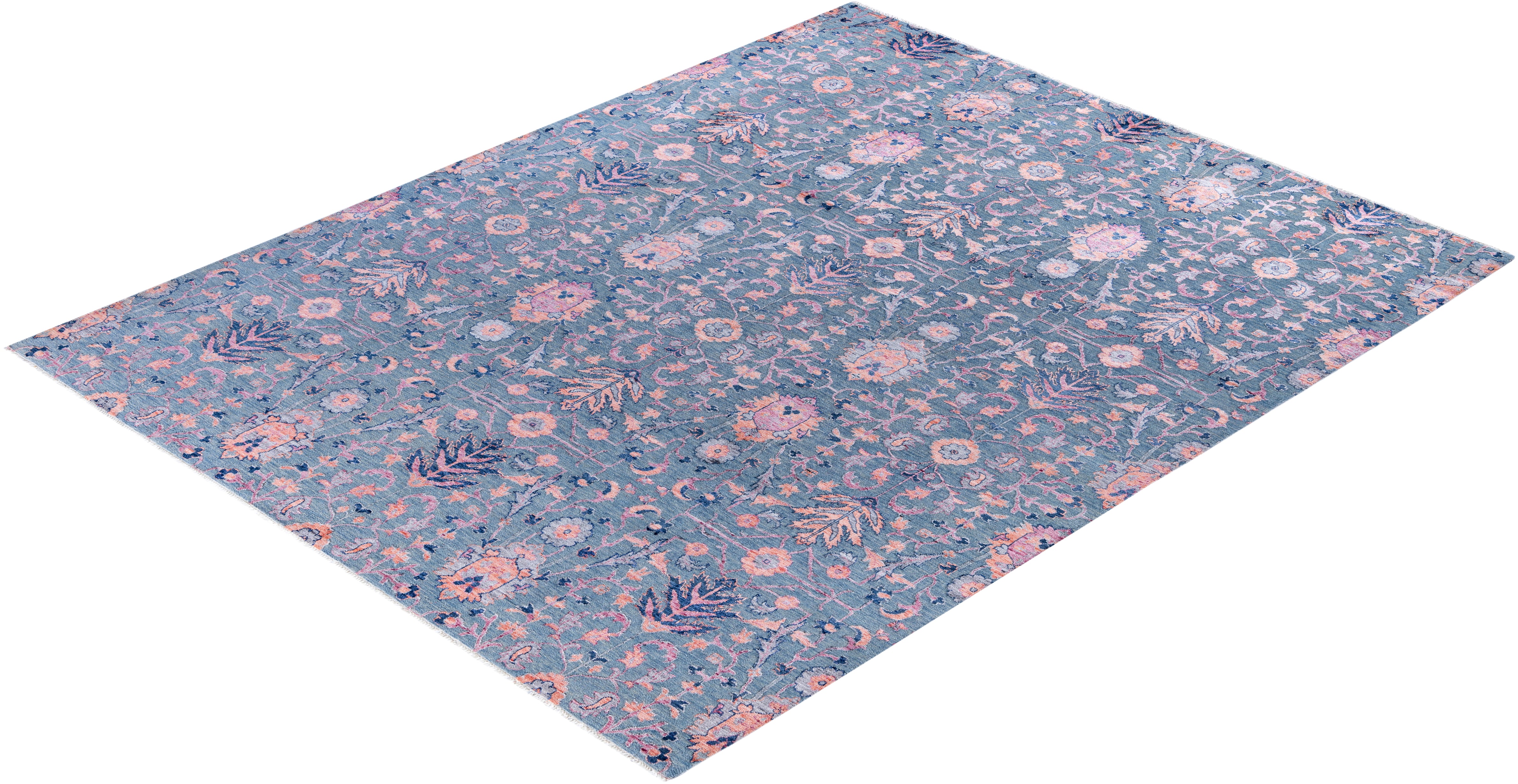 Traditional Floral Wool, Silk Hand Knotted Gray Area Rug 8' 2" x 10' 3"