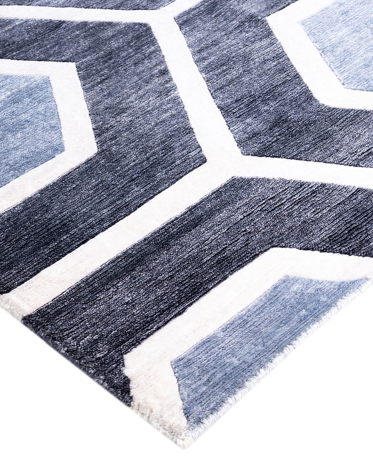 Contemporary Modern Hand Knotted Geometric Silk Gray Area Rug 8' 3" x 10' 2"