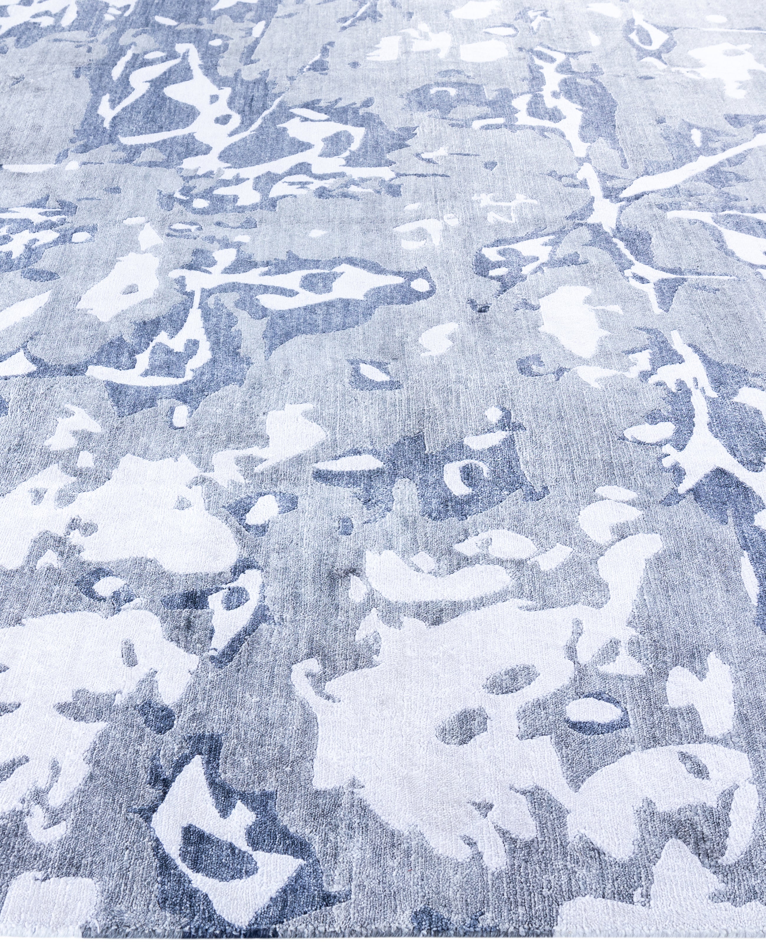 Contemporary Abstarct Silk Hand Knotted Ivory Area Rug 8' 1" x 9' 10"