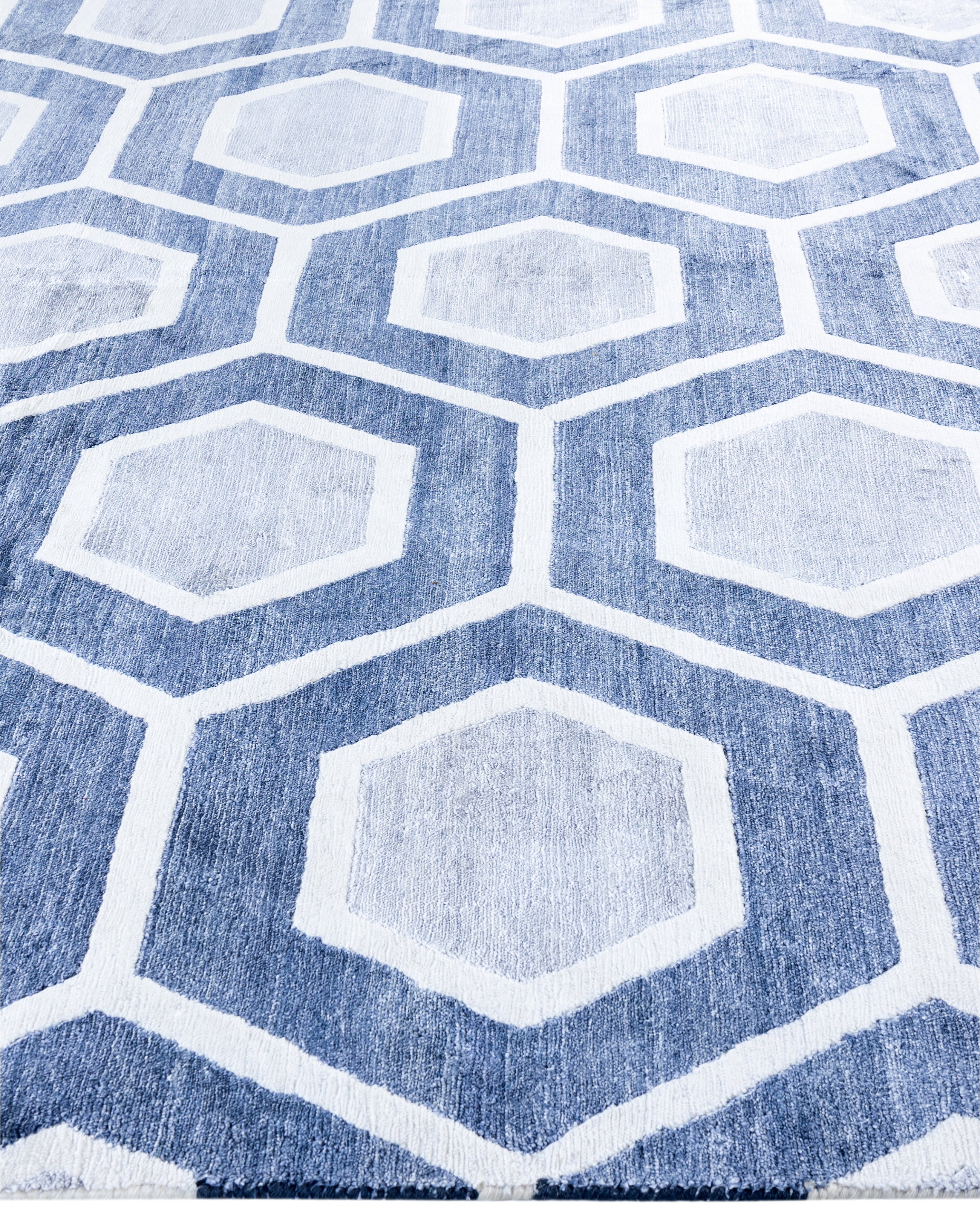 Contemporary Geometric Silk Hand Knotted Black Area Rug 8' 2" x 9' 8"