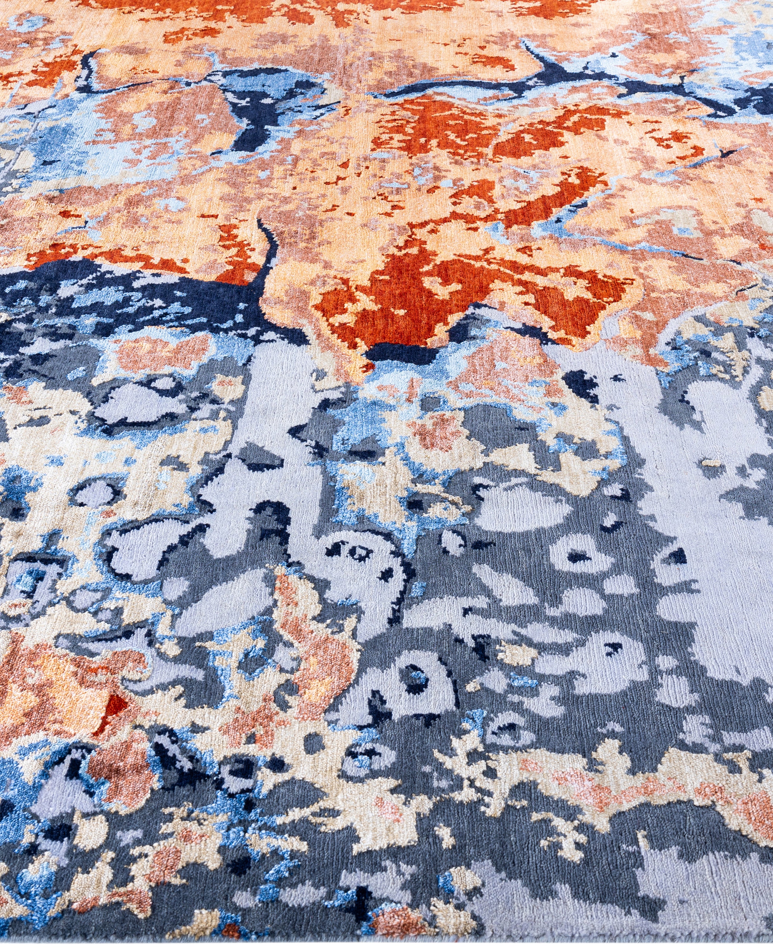 Contemporary Abstarct Wool, Silk Hand Knotted Gray Area Rug 8' 2" x 10' 2"