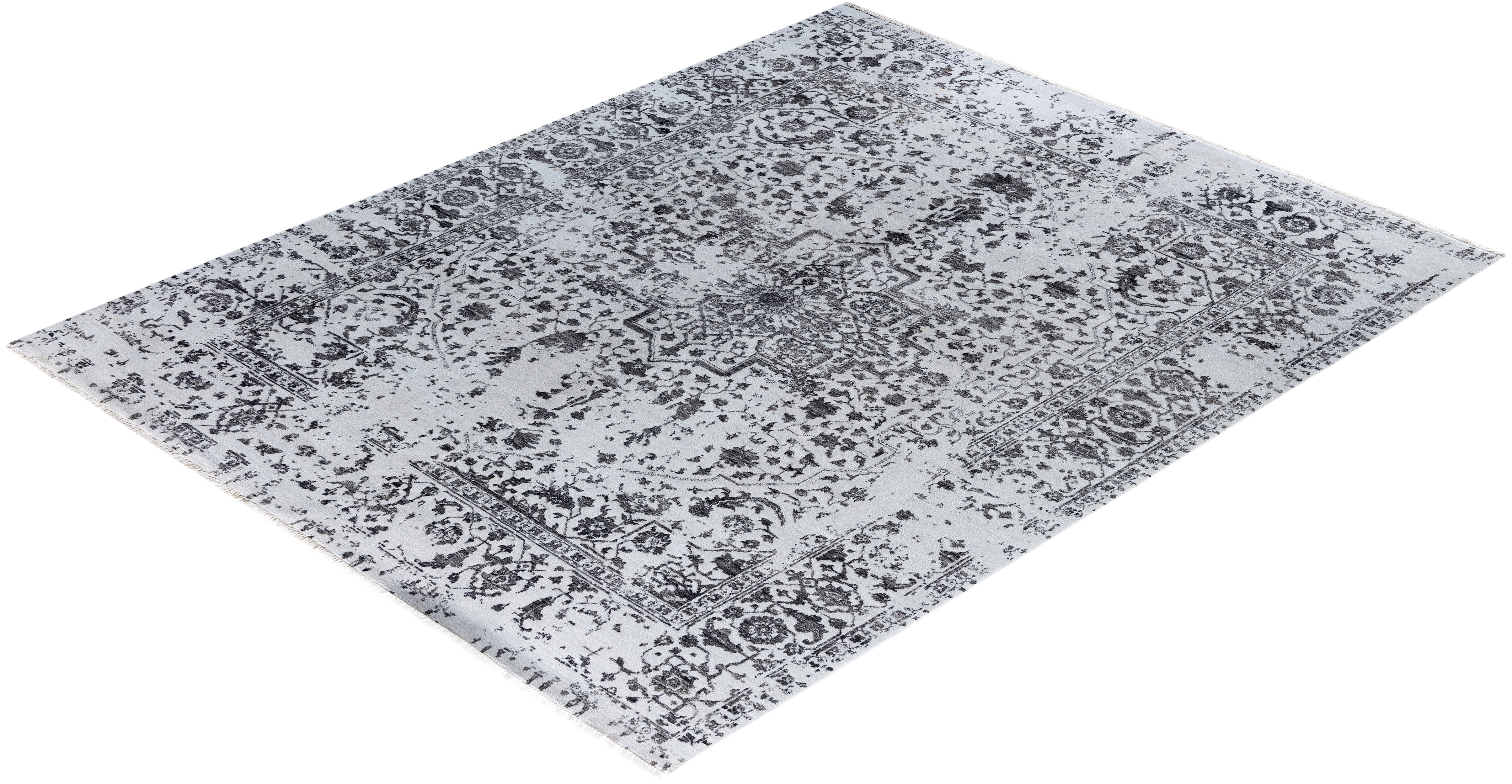 Traditional Ikat Hand Knotted Abstract Silk & Wool Blend Gray Area Rug 8' 1" x 10' 2"