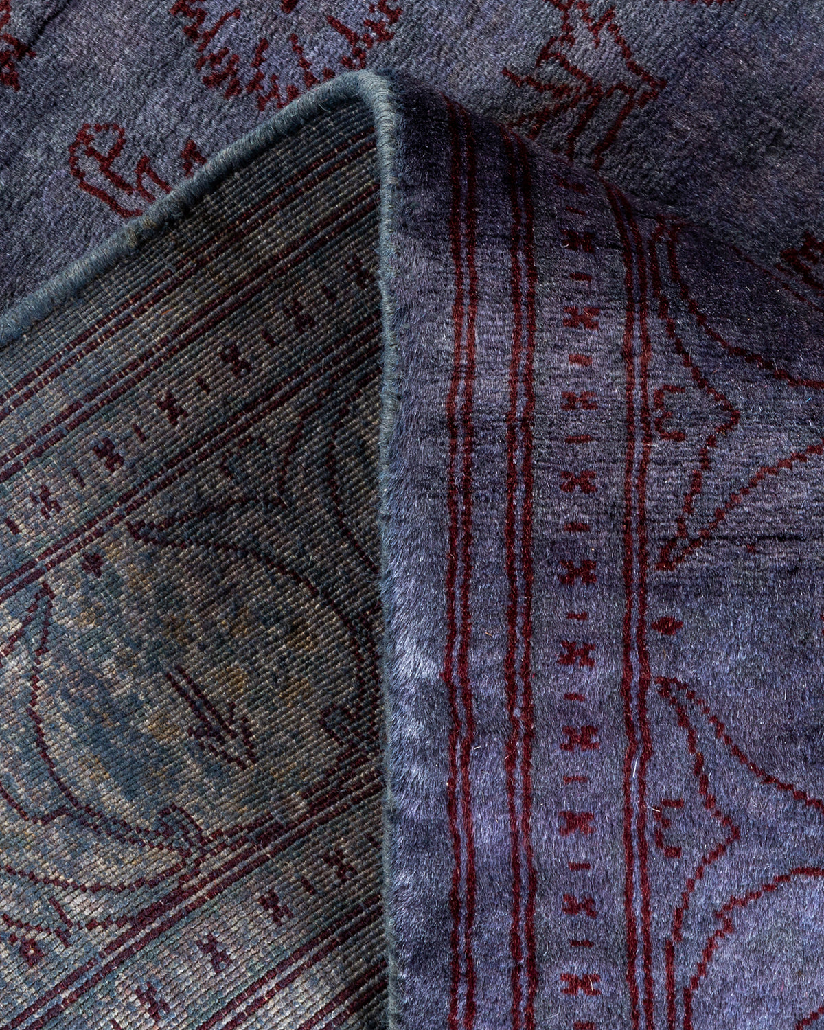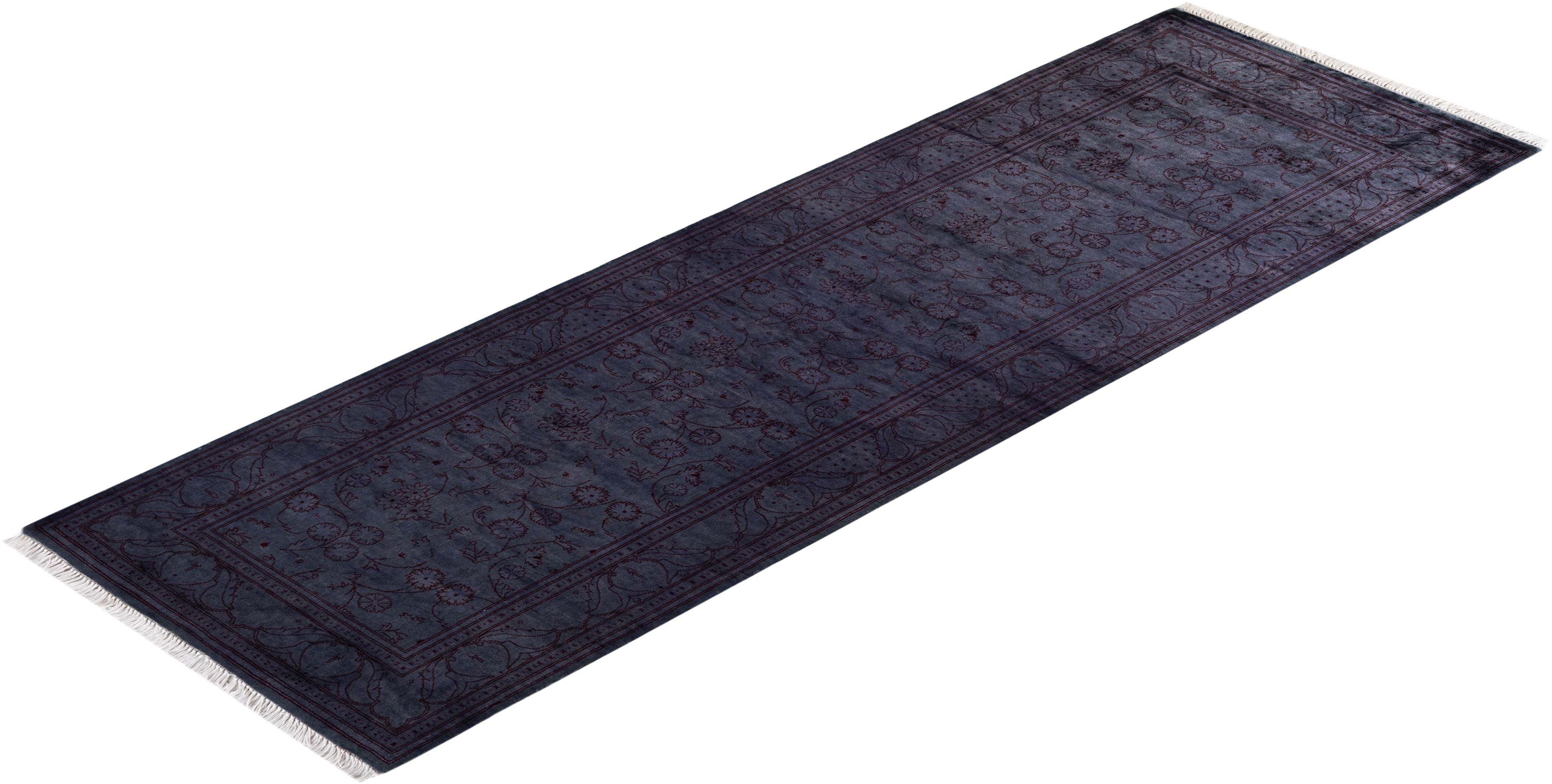 Contemporary Hand-Knotted Overdyed Purple Runner 2' 7" x 8' 3"