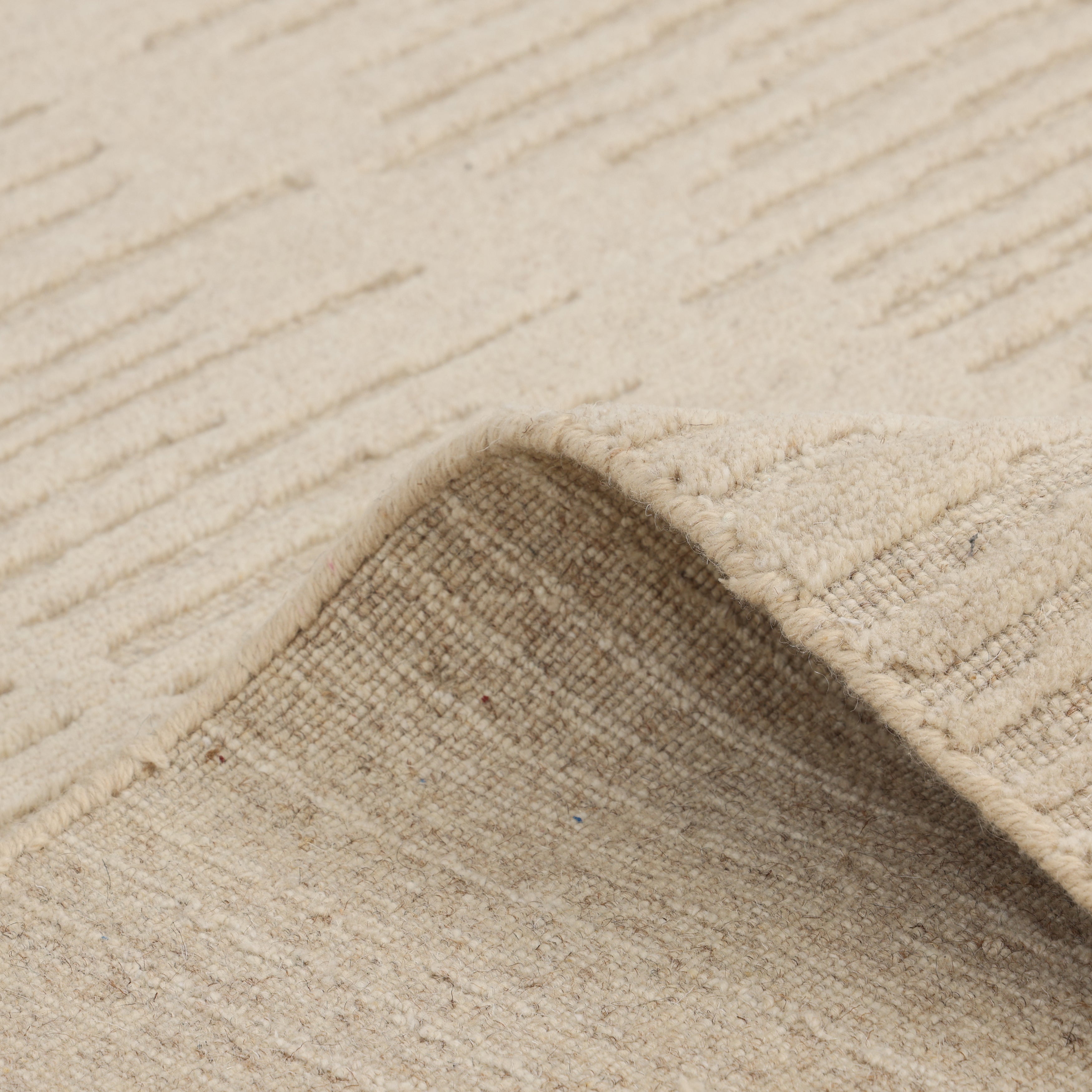 This hand-loomed wool rug embodies refined simplicity with its soft tone-on-tone texture and understated linear pattern. Meticulously crafted by skilled artisans, it showcases the natural beauty of hand-spun wool through a subtle play of depth and dimension. The minimalist design lends itself perfectly to modern, Scandinavian, and transitional spaces alike. Durable yet elegant, this rug provides a serene foundation that enhances any room with warmth and quiet sophistication.