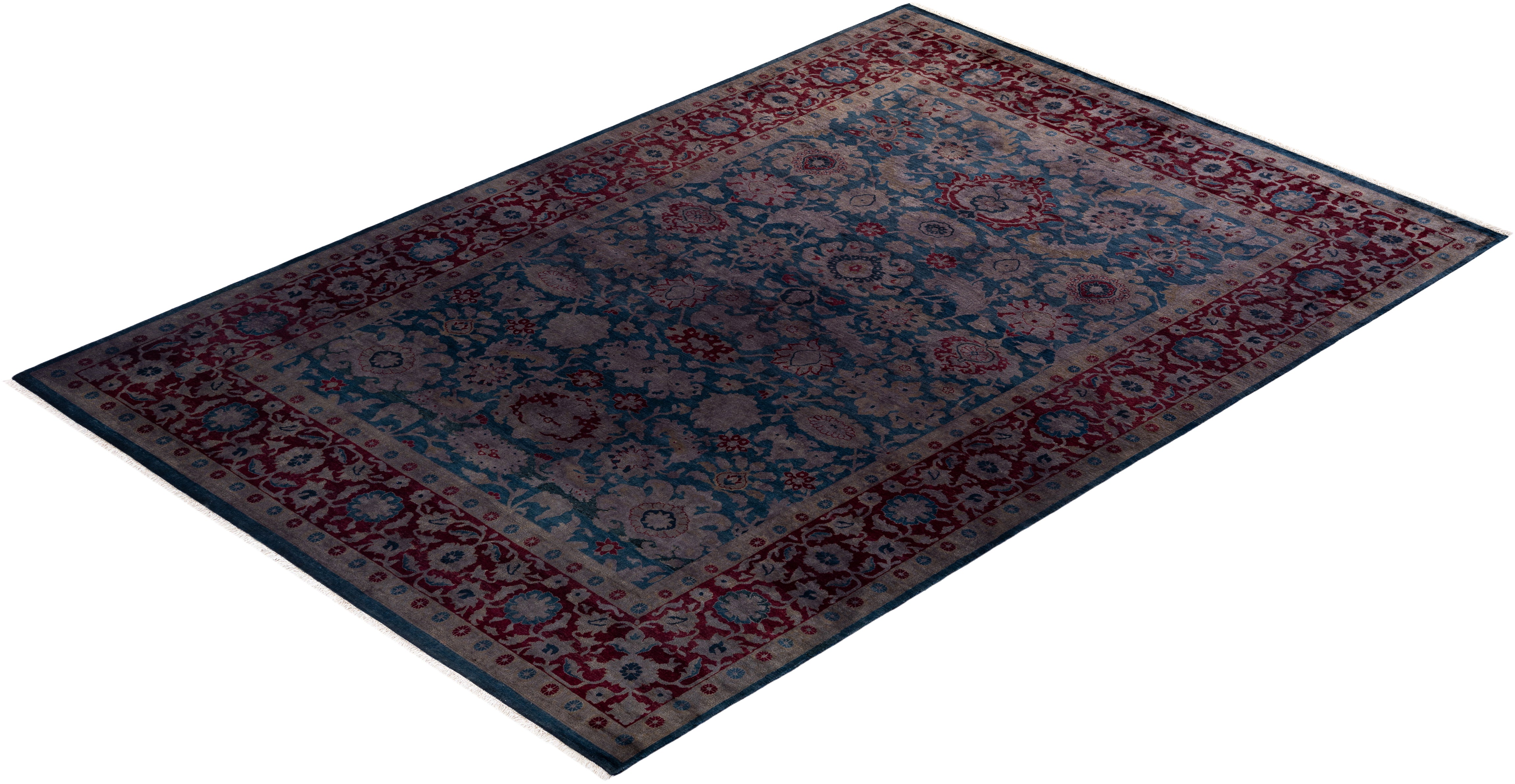 Contemporary Hand-Knotted Overdyed Blue Area Rug 6' 2" x 8' 10"