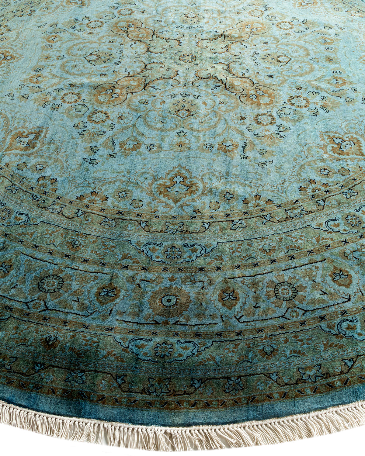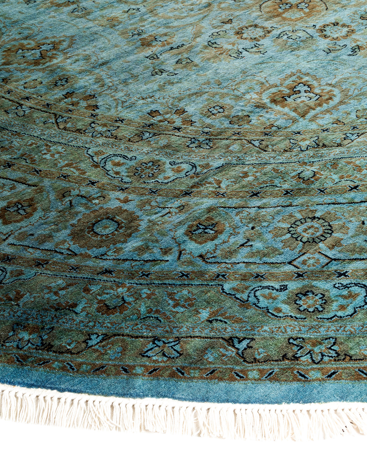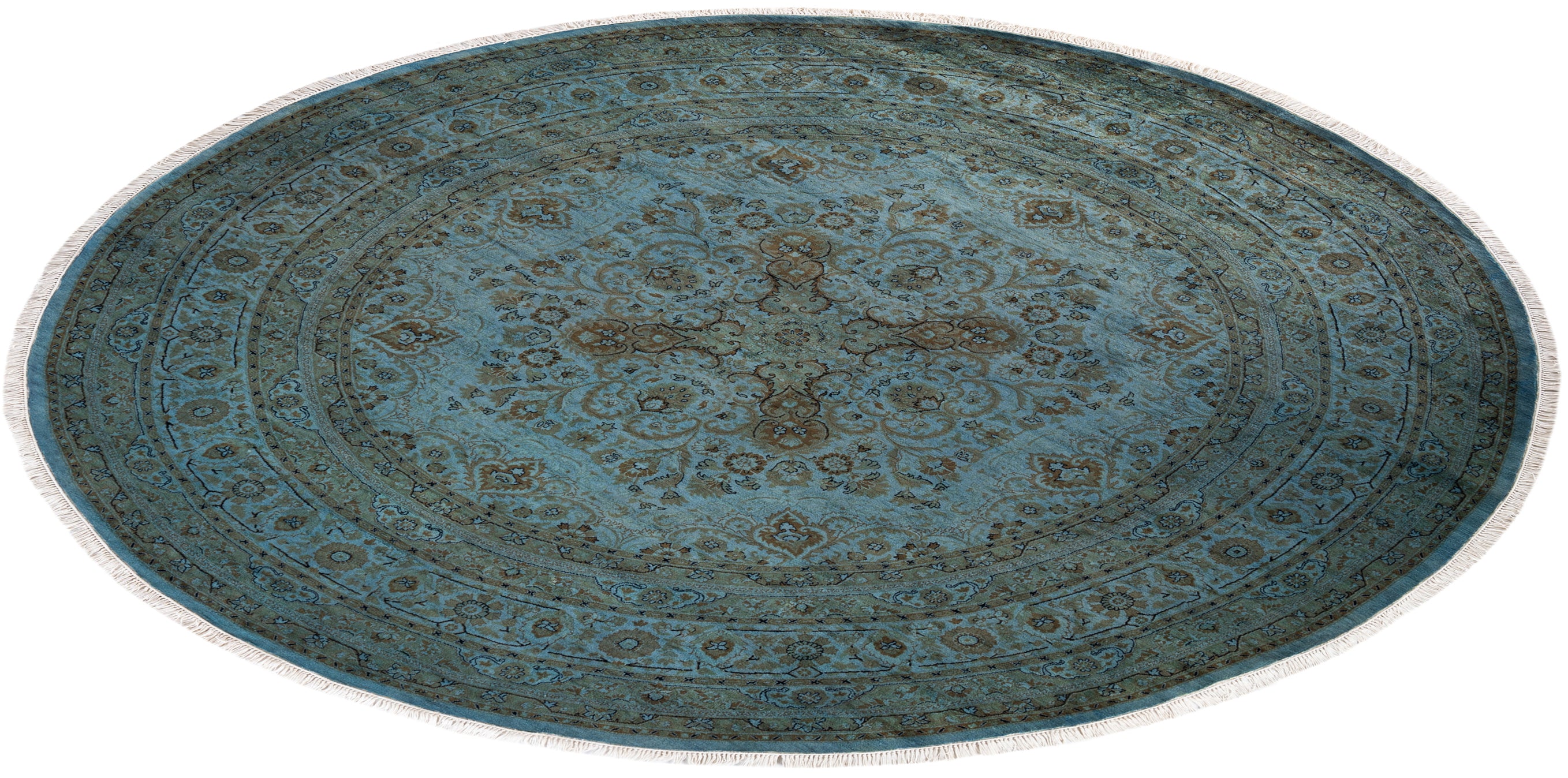 Contemporary Hand-Knotted Overdyed Blue Round Area Rug 8' 1" x 8' 1"