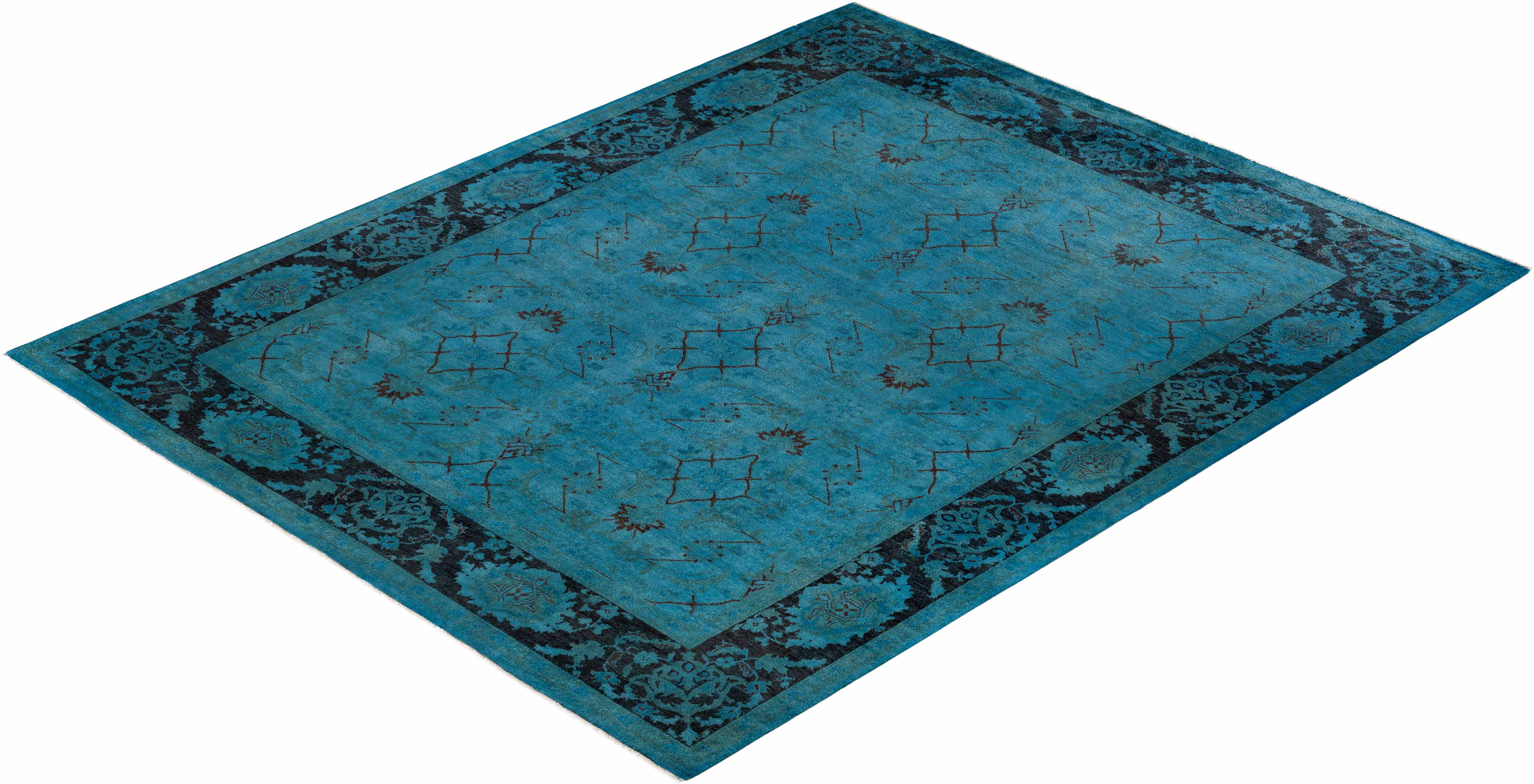Contemporary Hand-Knotted Overdyed Blue Area Rug 8' 3" x 10' 3"