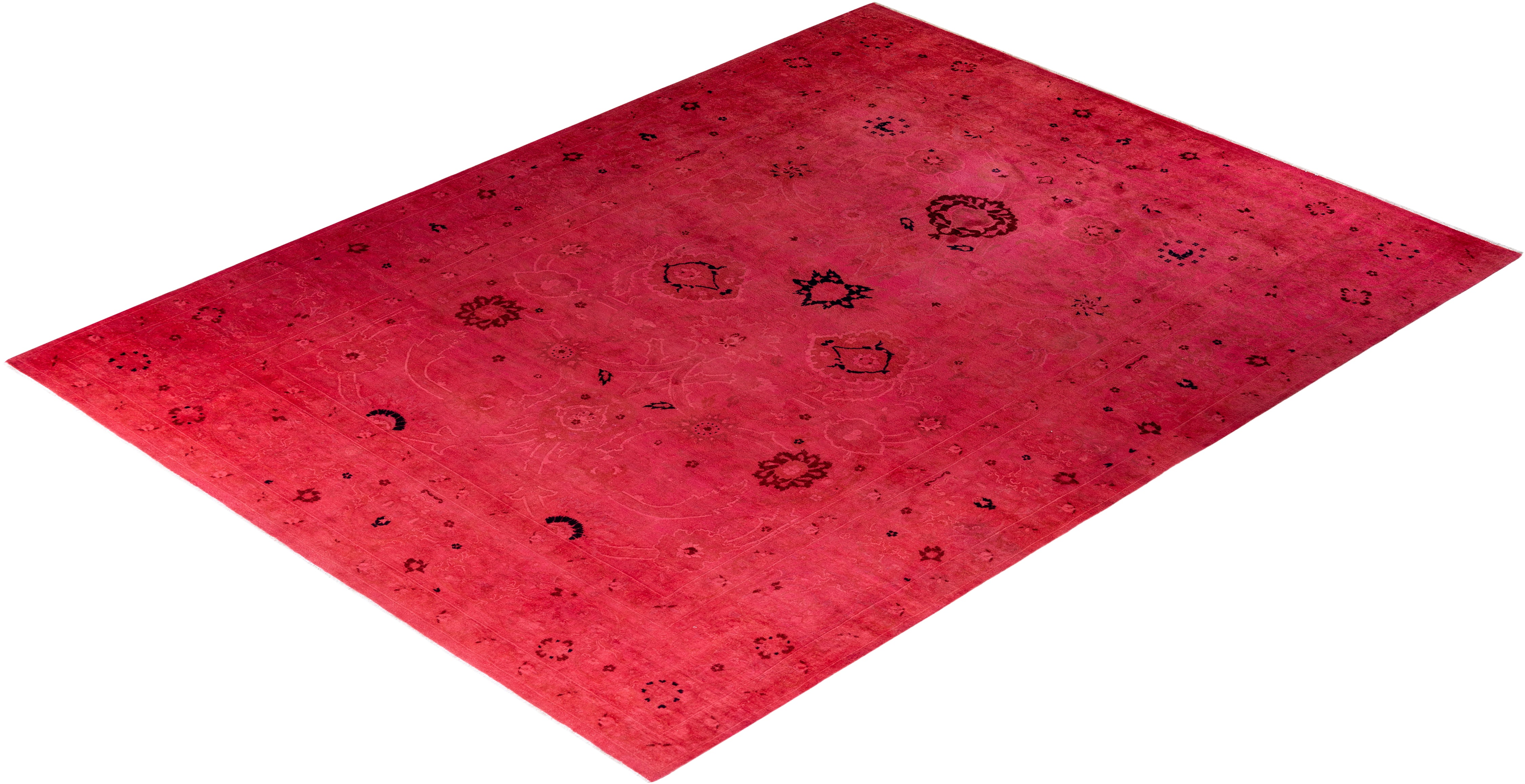 Contemporary Hand-Knotted Overdyed Pink Area Rug 8' 9" x 11' 9"