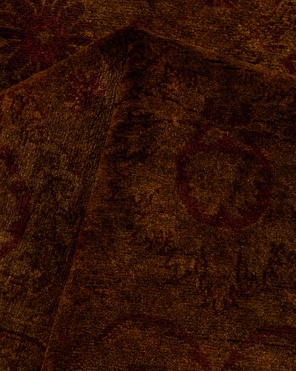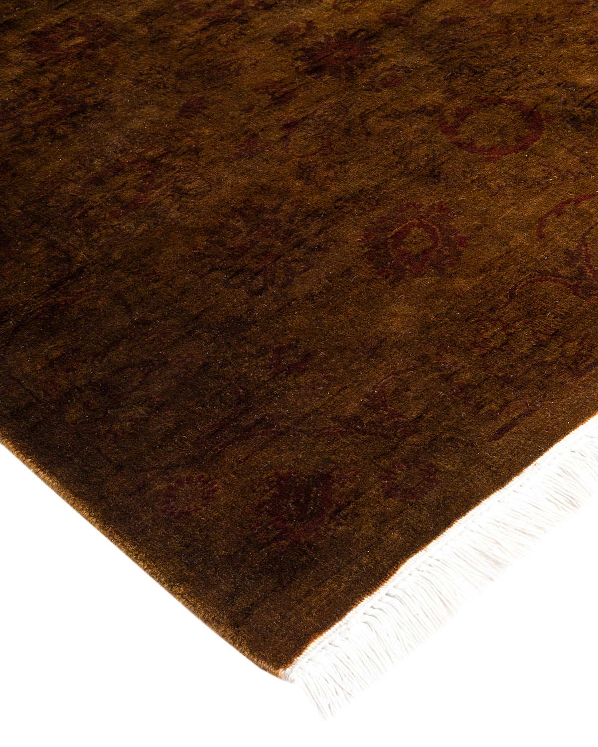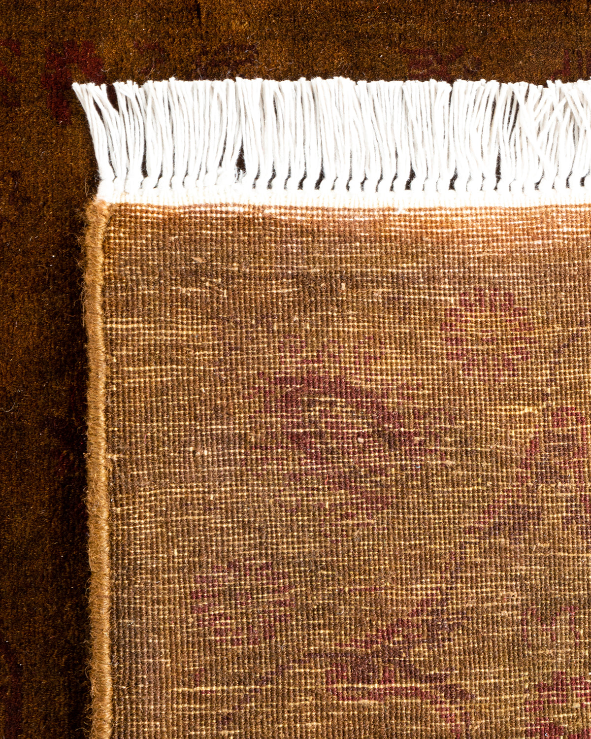 Contemporary Hand-Knotted Overdyed Brown Runner 2' 7" x 14' 1"