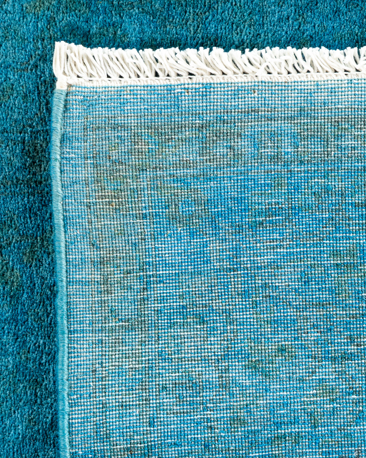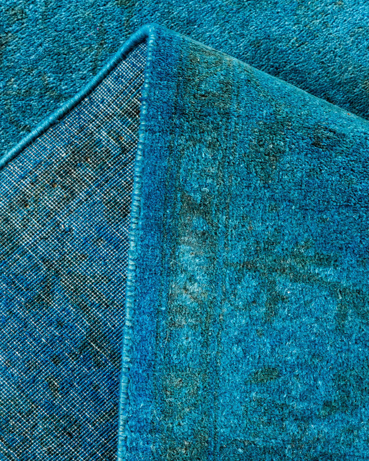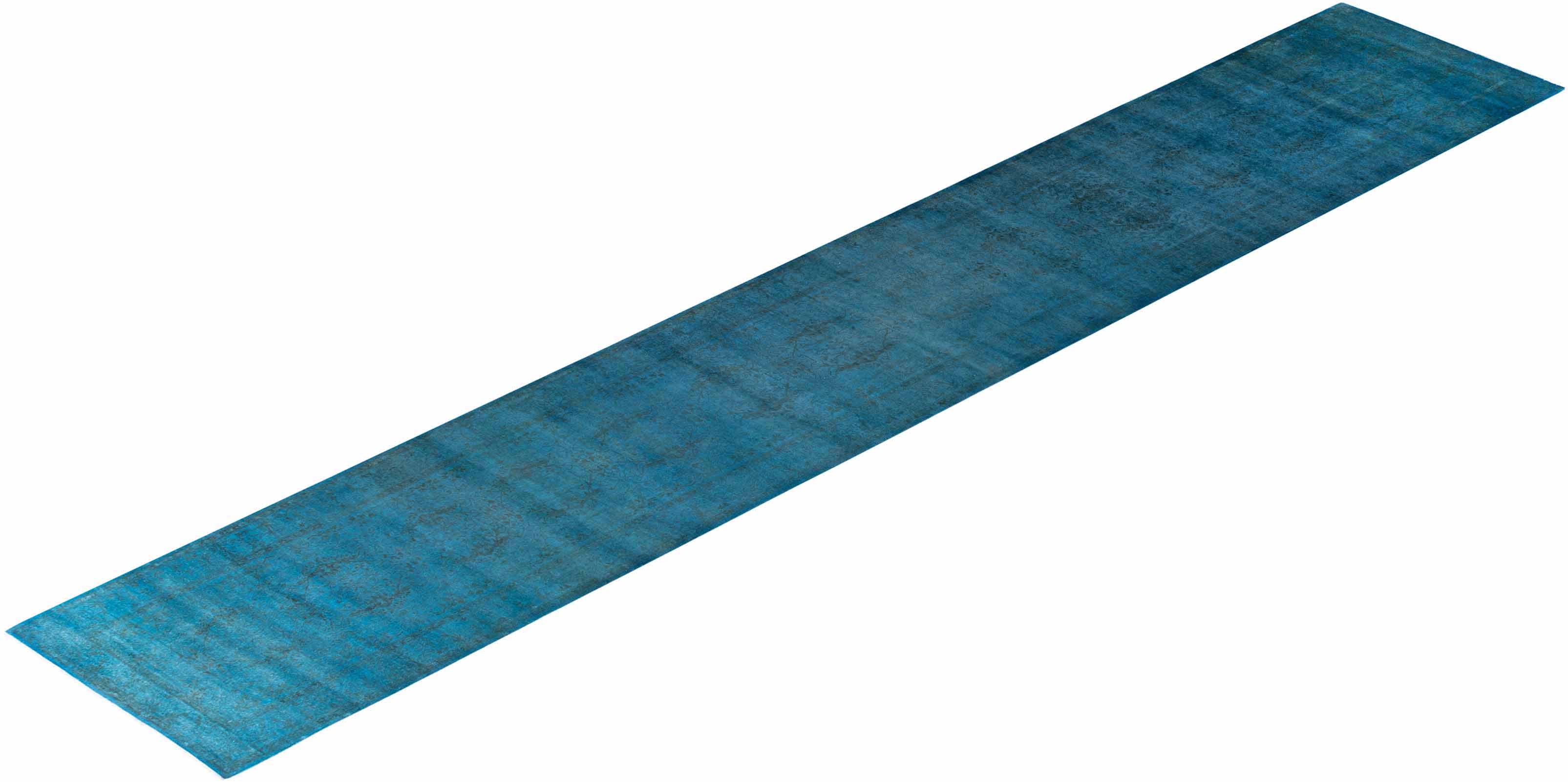 Contemporary Hand-Knotted Overdyed Blue Runner 3' 0" x 19' 9"
