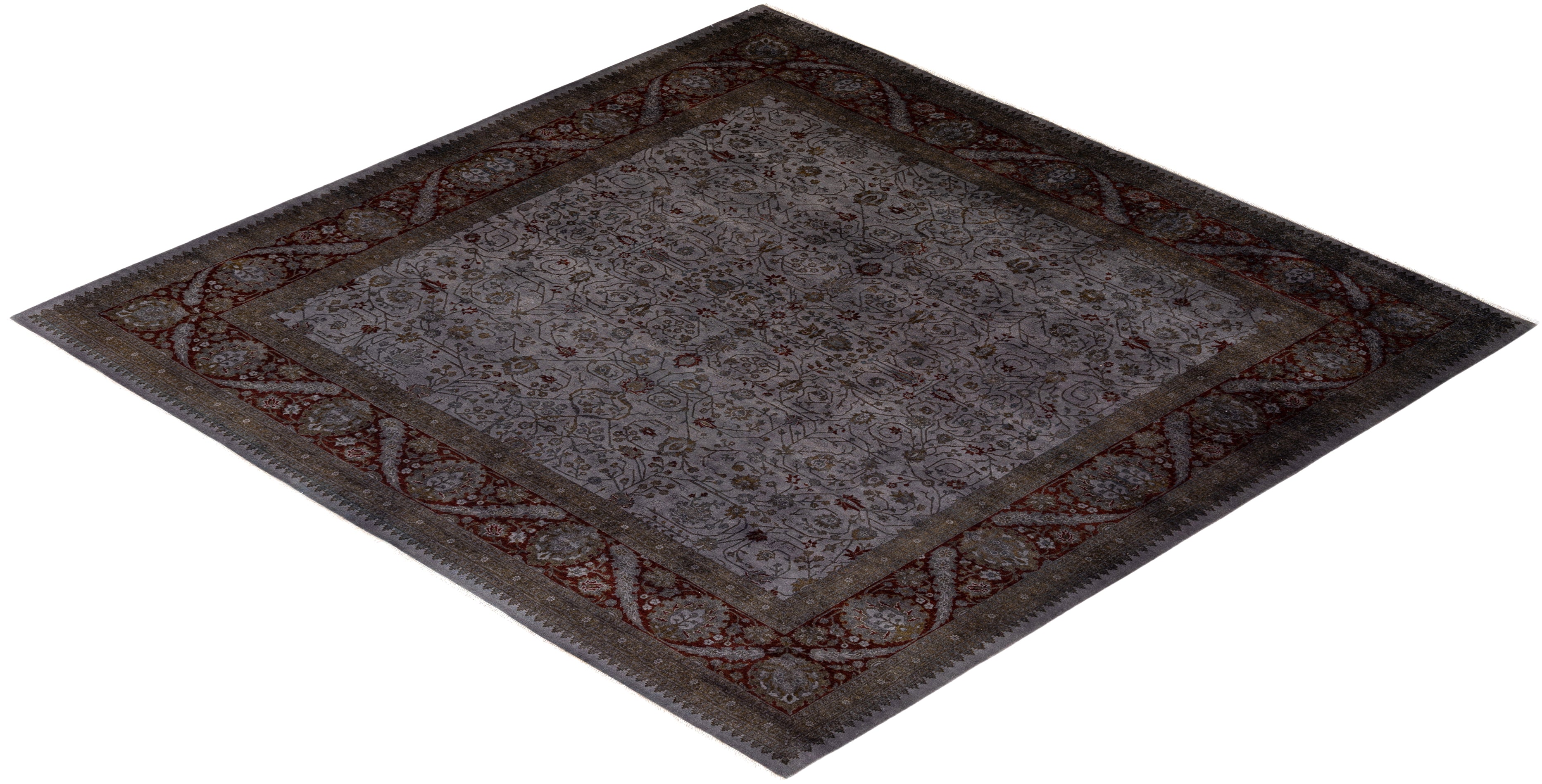 Contemporary Hand-Knotted Overdyed Gray Area Rug 7' 10" x 8' 2"