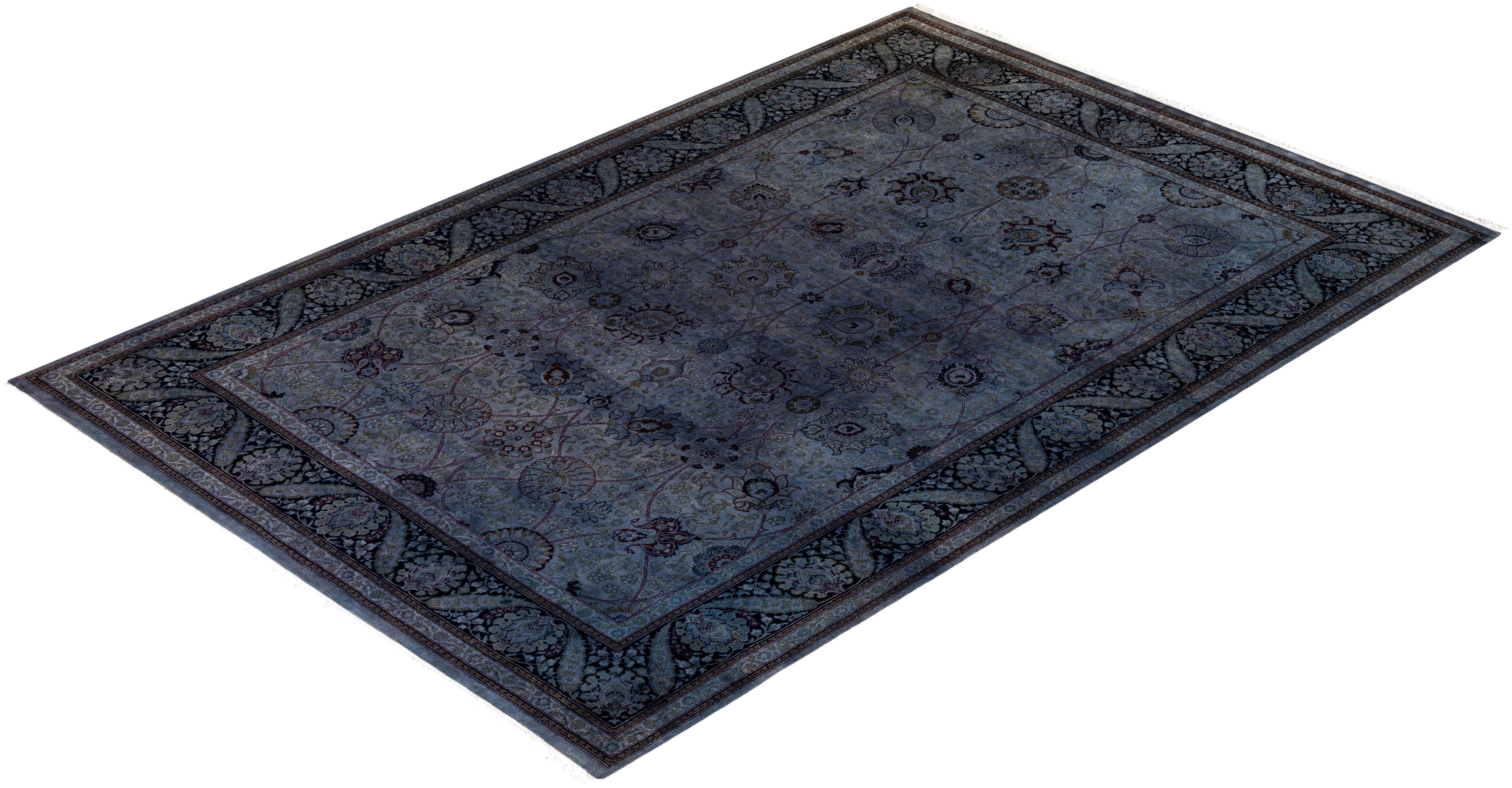 Contemporary Hand-Knotted Overdyed Gray Area Rug 6' 4" x 9' 7"