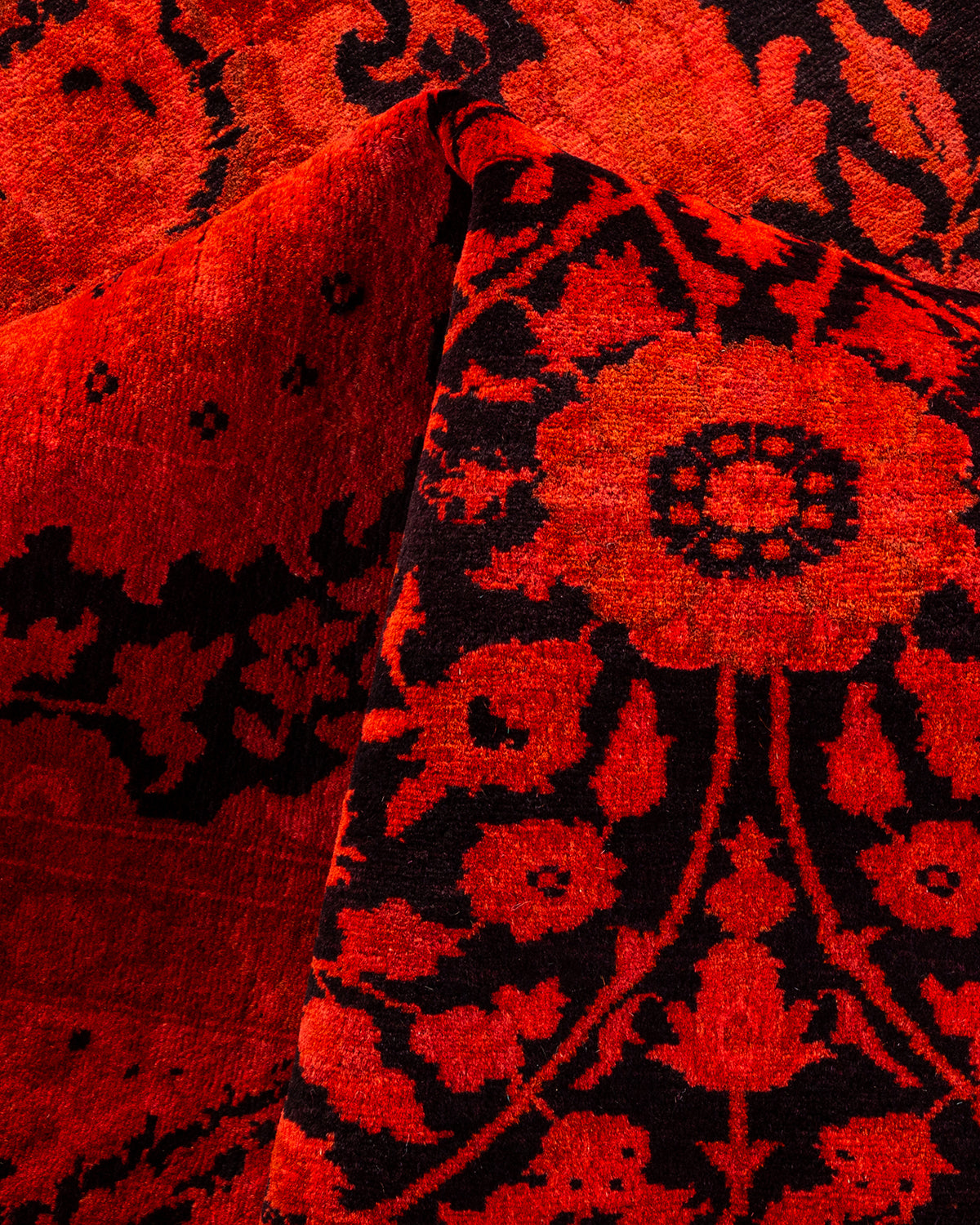 Overdyed rugs epitomize classic with a twist: traditional patterns overdyed in brilliant color. Each hand-knotted rug is washed in a 100%-natural botanical dye that reveals hidden nuances in the designs. These are rugs that transcend trends, and their sturdy construction ensures that they’ll withstand years of heavy traffic.