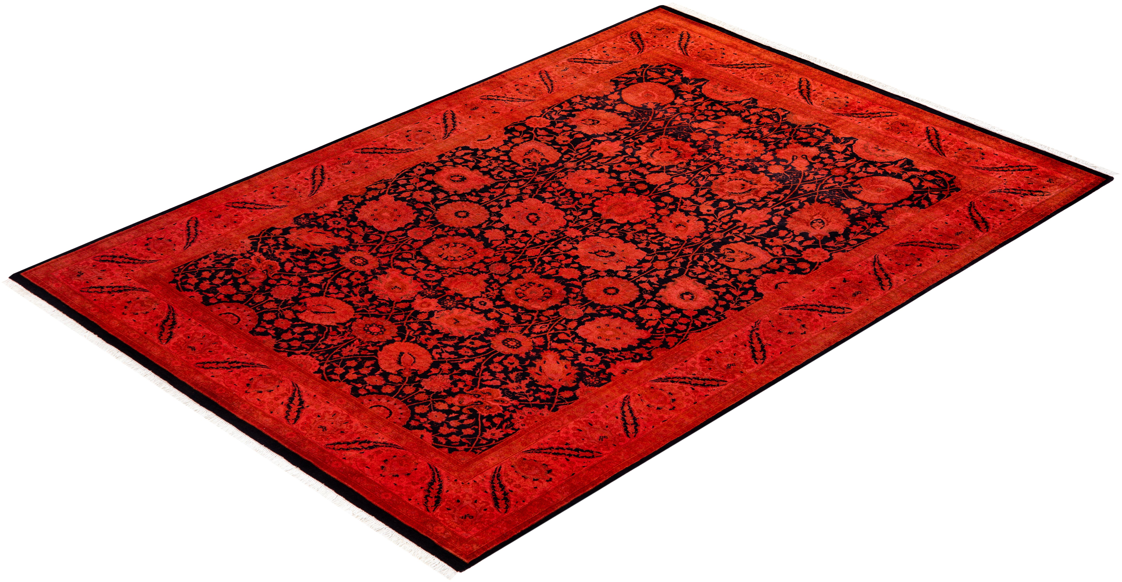 Contemporary Hand-Knotted Overdyed Orange Area Rug 6' 2" x 8' 10"