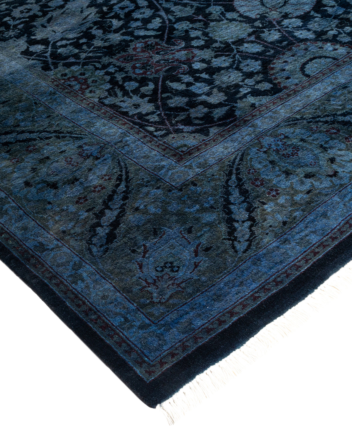 Contemporary Hand-Knotted Overdyed Blue Area Rug 6' 3" x 8' 9"