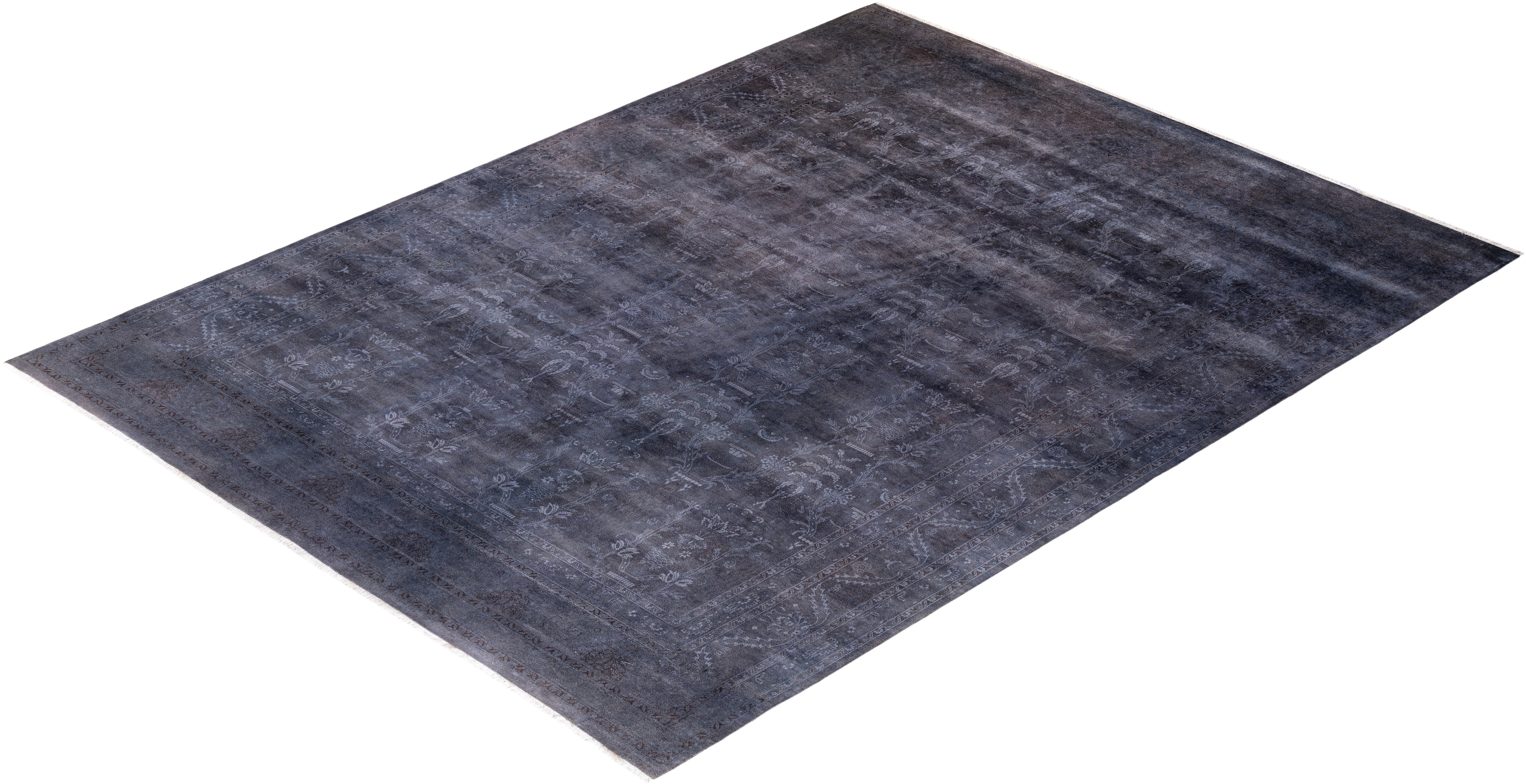 Contemporary Hand-Knotted Overdyed Purple Area Rug 9' 1" x 12' 3"