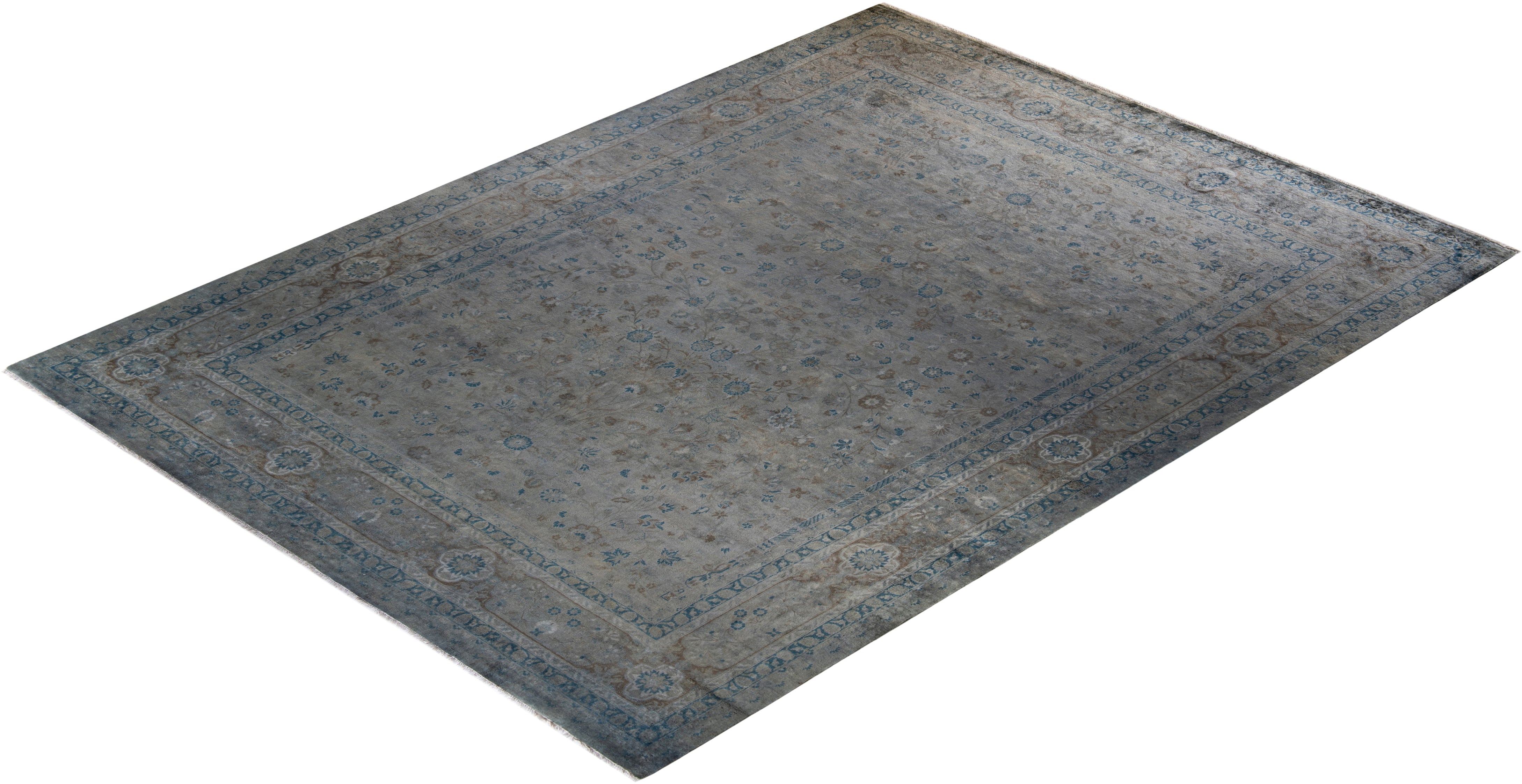 Contemporary Hand-Knotted Overdyed Gray Area Rug 9' 1" x 12' 1"