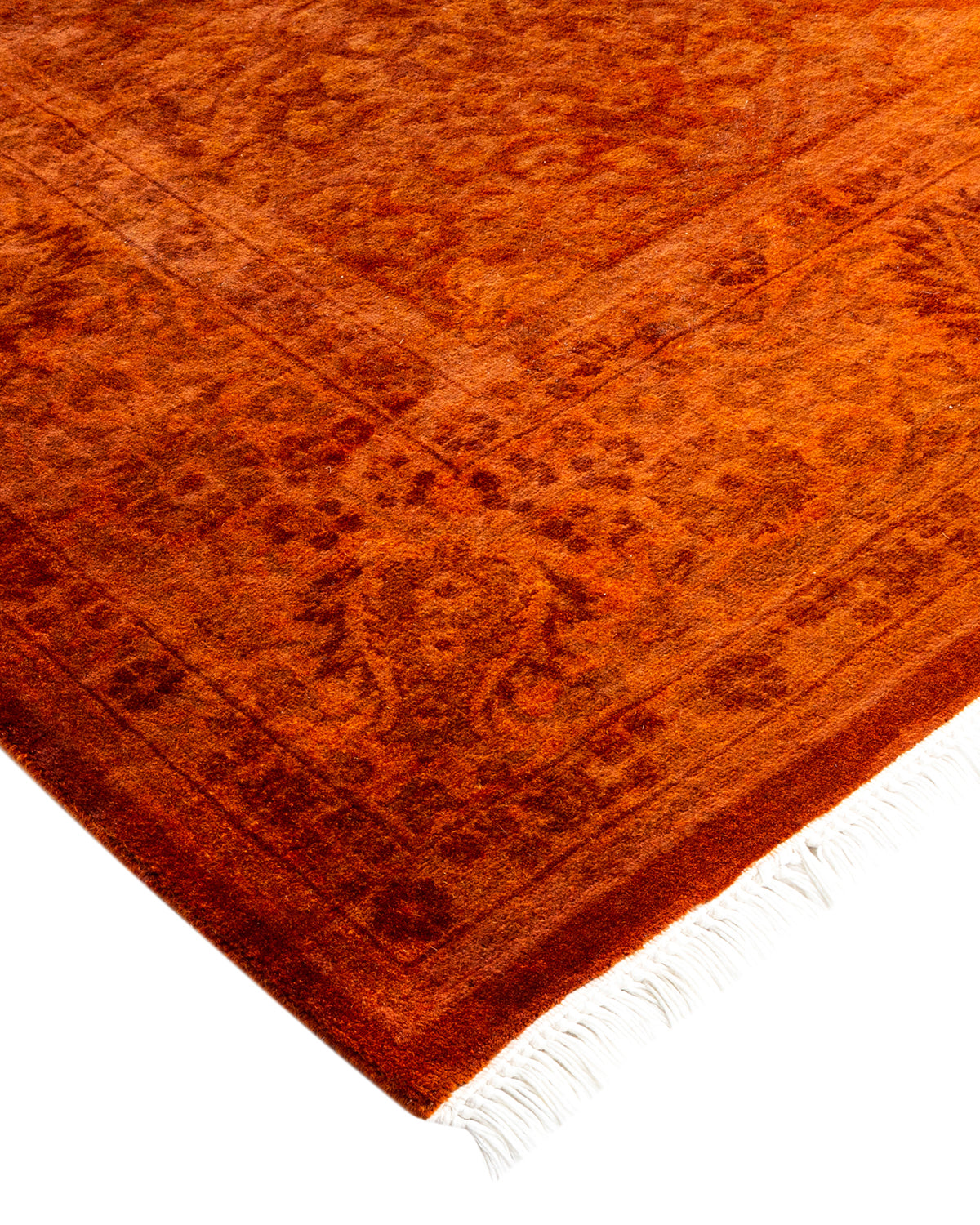 Contemporary Hand-Knotted Overdyed Orange Area Rug 5' 3" x 8' 1"