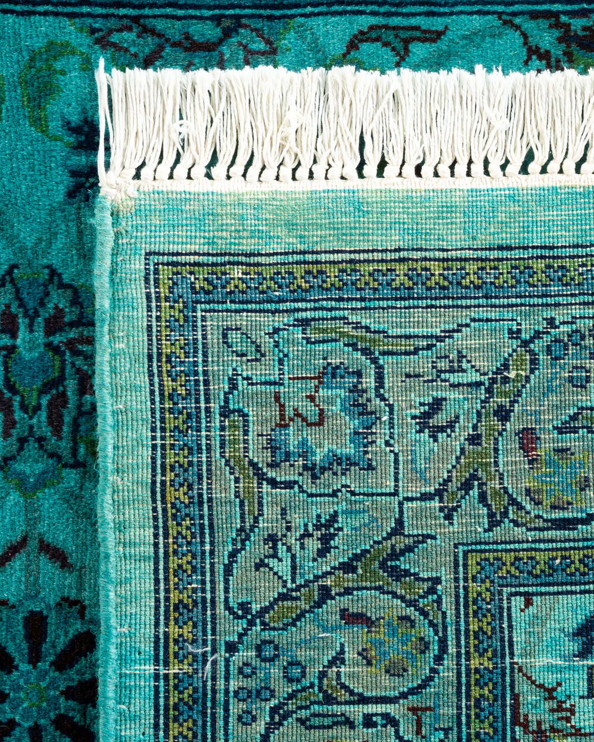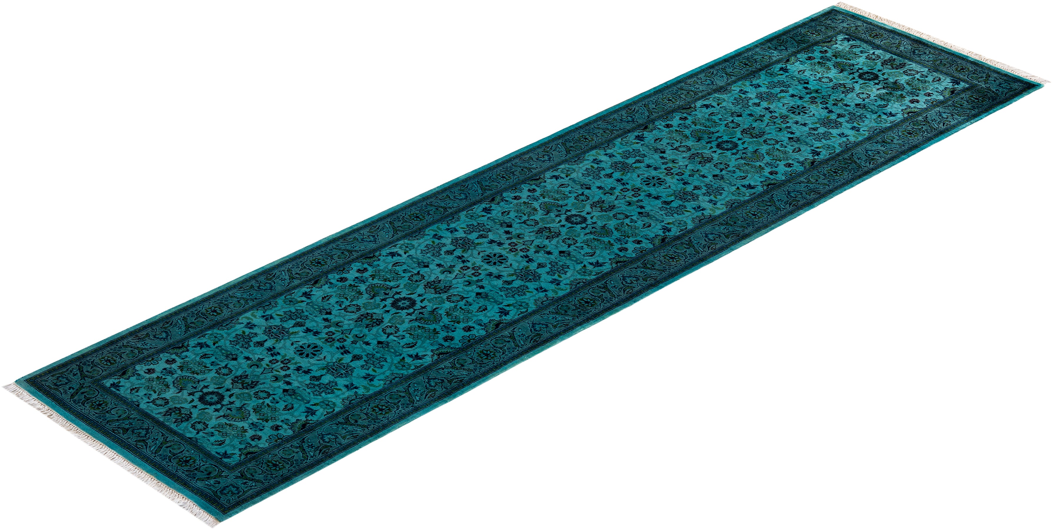 Contemporary Hand-Knotted Overdyed Blue Runner 2' 7" x 10' 4"
