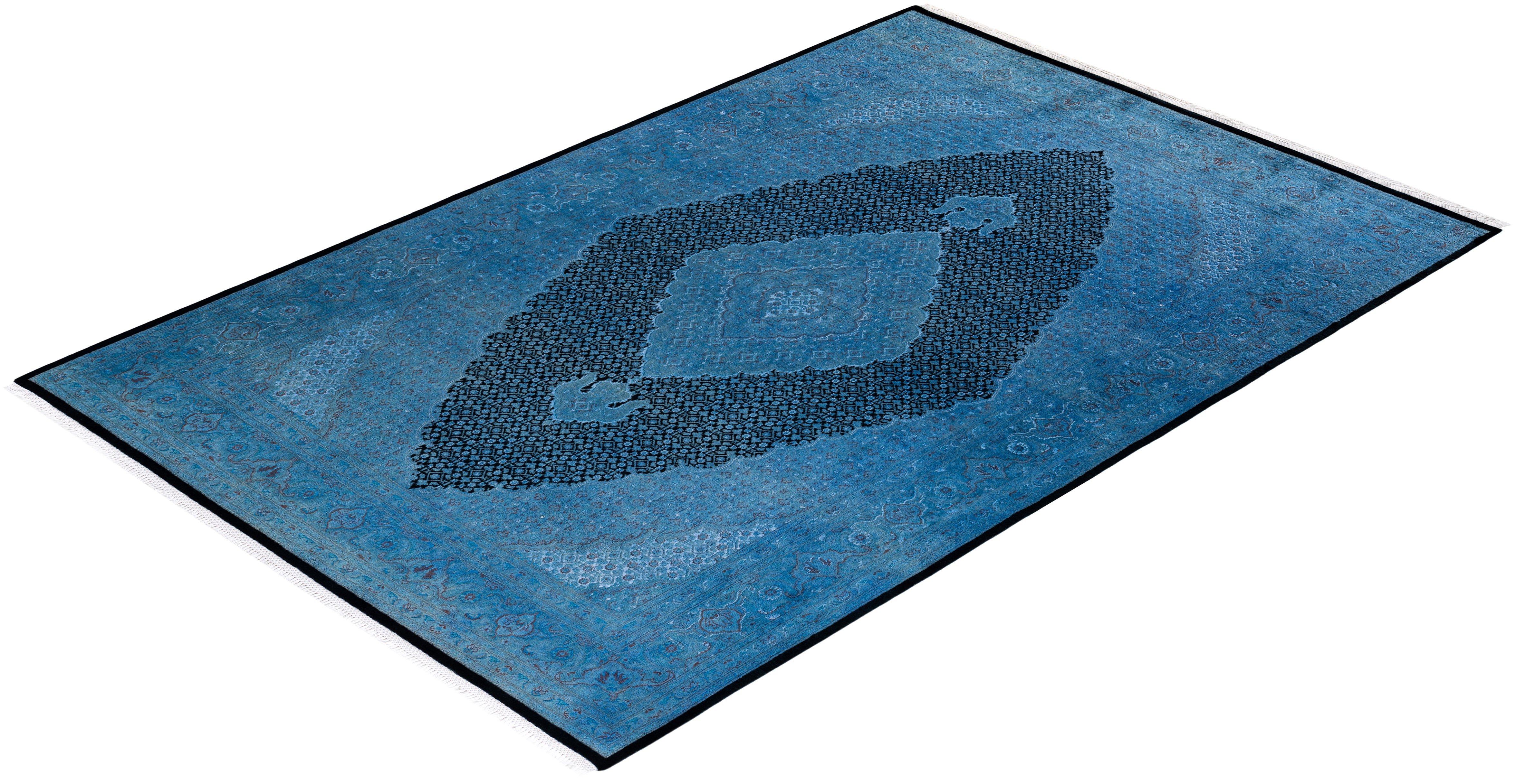Contemporary Hand-Knotted Overdyed Blue Area Rug 6' 7" x 9' 10"