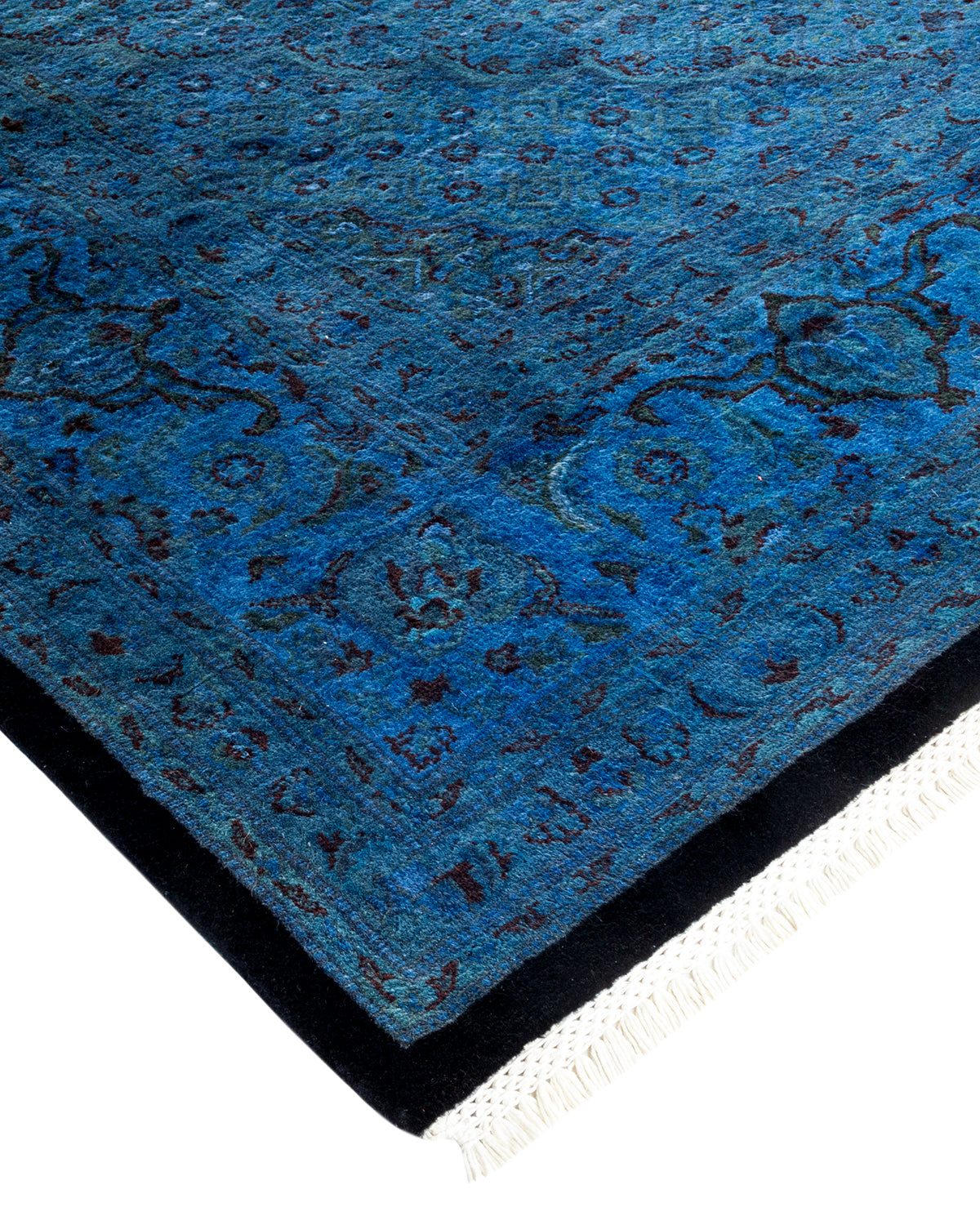 Contemporary Hand-Knotted Overdyed Blue Area Rug 6' 8" x 9' 10"