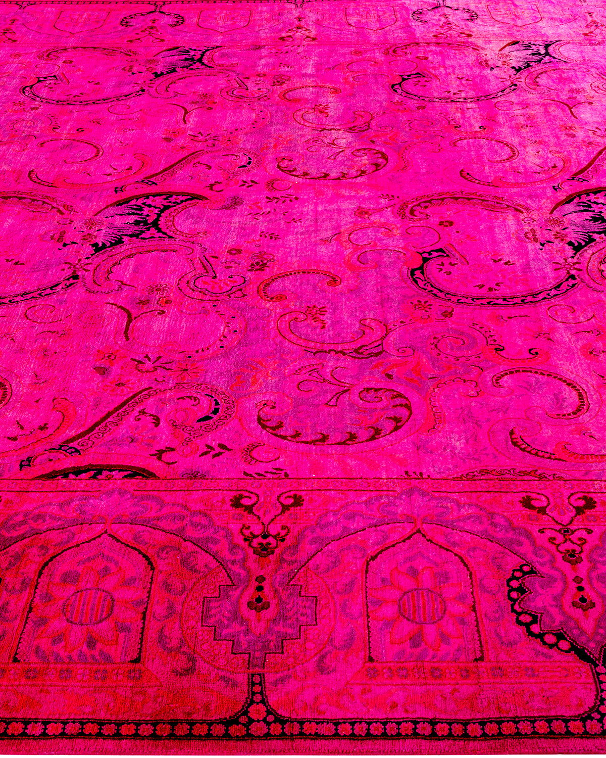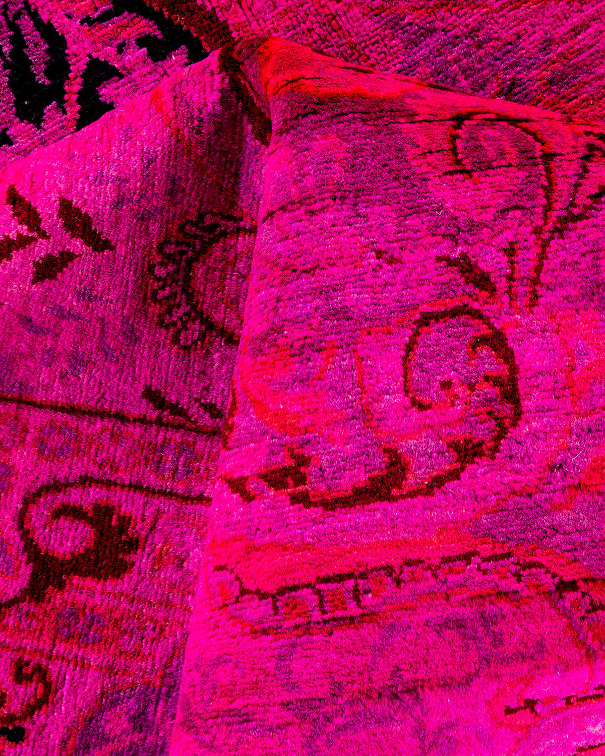 Overdyed rugs epitomize classic with a twist: traditional patterns overdyed in brilliant color. Each hand-knotted rug is washed in a 100%-natural botanical dye that reveals hidden nuances in the designs. These are rugs that transcend trends, and their sturdy construction ensures that they’ll withstand years of heavy traffic.