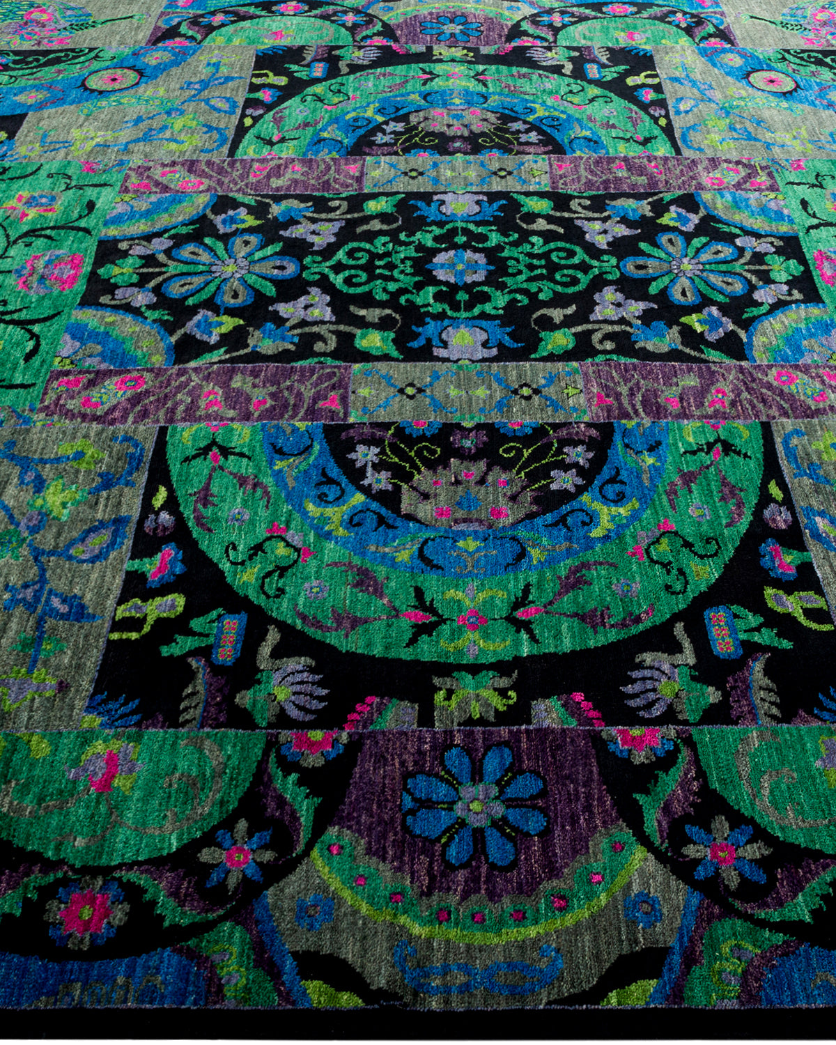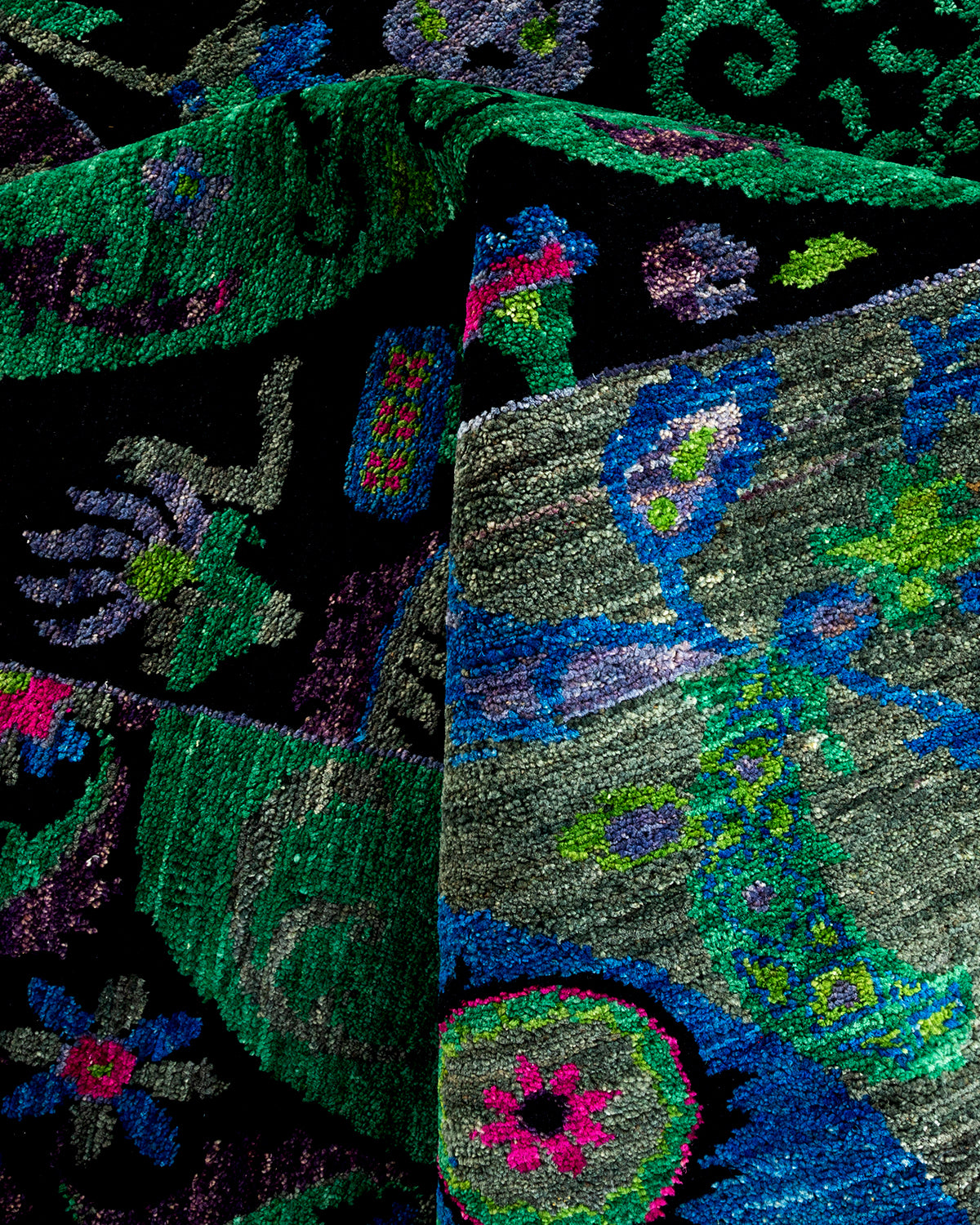 The meticulous art of hand-embroidered textiles from Uzbekistan tribes inspired the Suzani Collection of rugs. Bold motifs, particularly pomegranates, the sun, and the moon, are frequent elements, their simple yet compelling designs made even more spectacular in wool and silk. Once traditional pieces of a dowry, these rugs will easily become part of families for years to come.