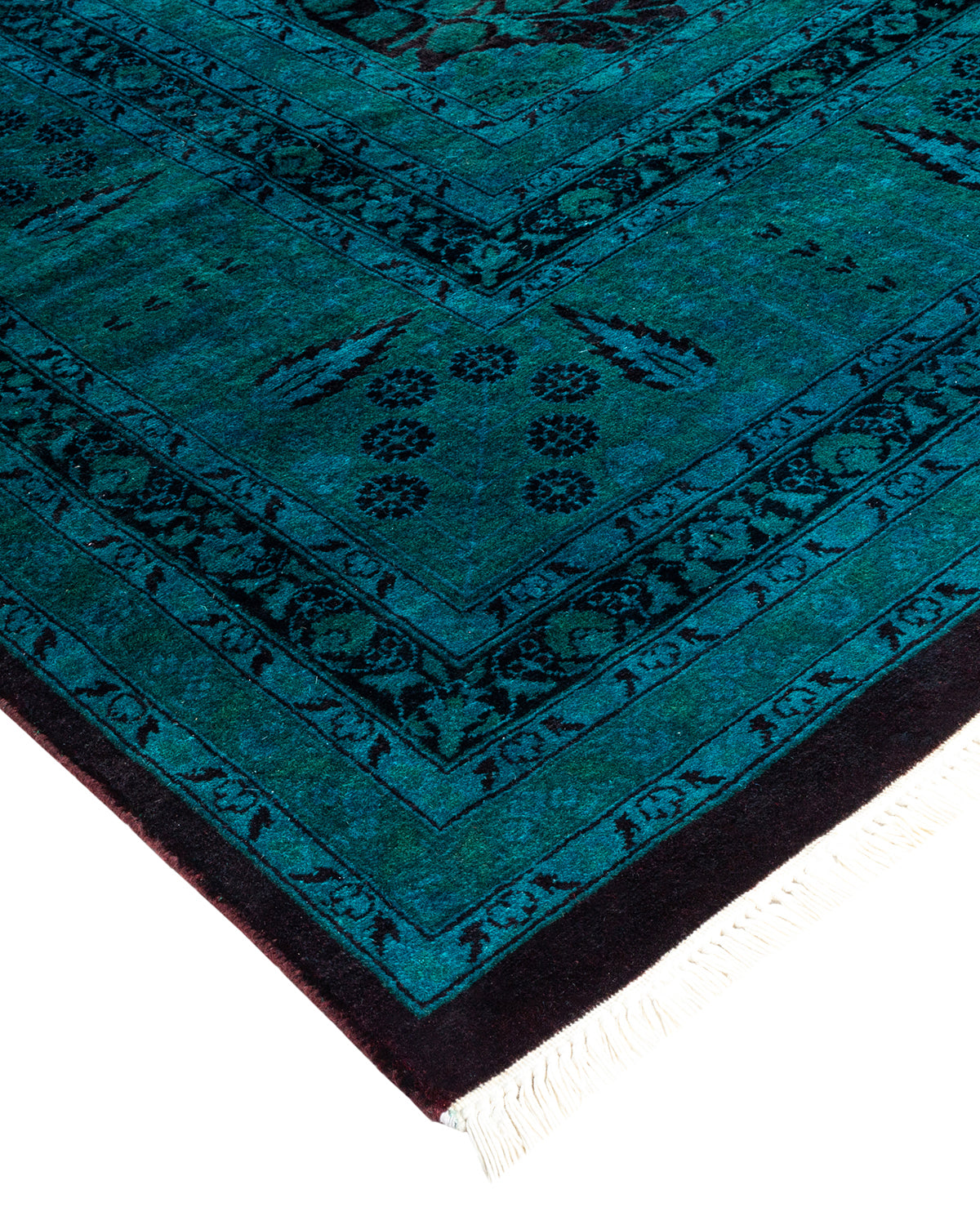Contemporary Hand-Knotted Overdyed Blue Area Rug 10' 1" x 13' 10"