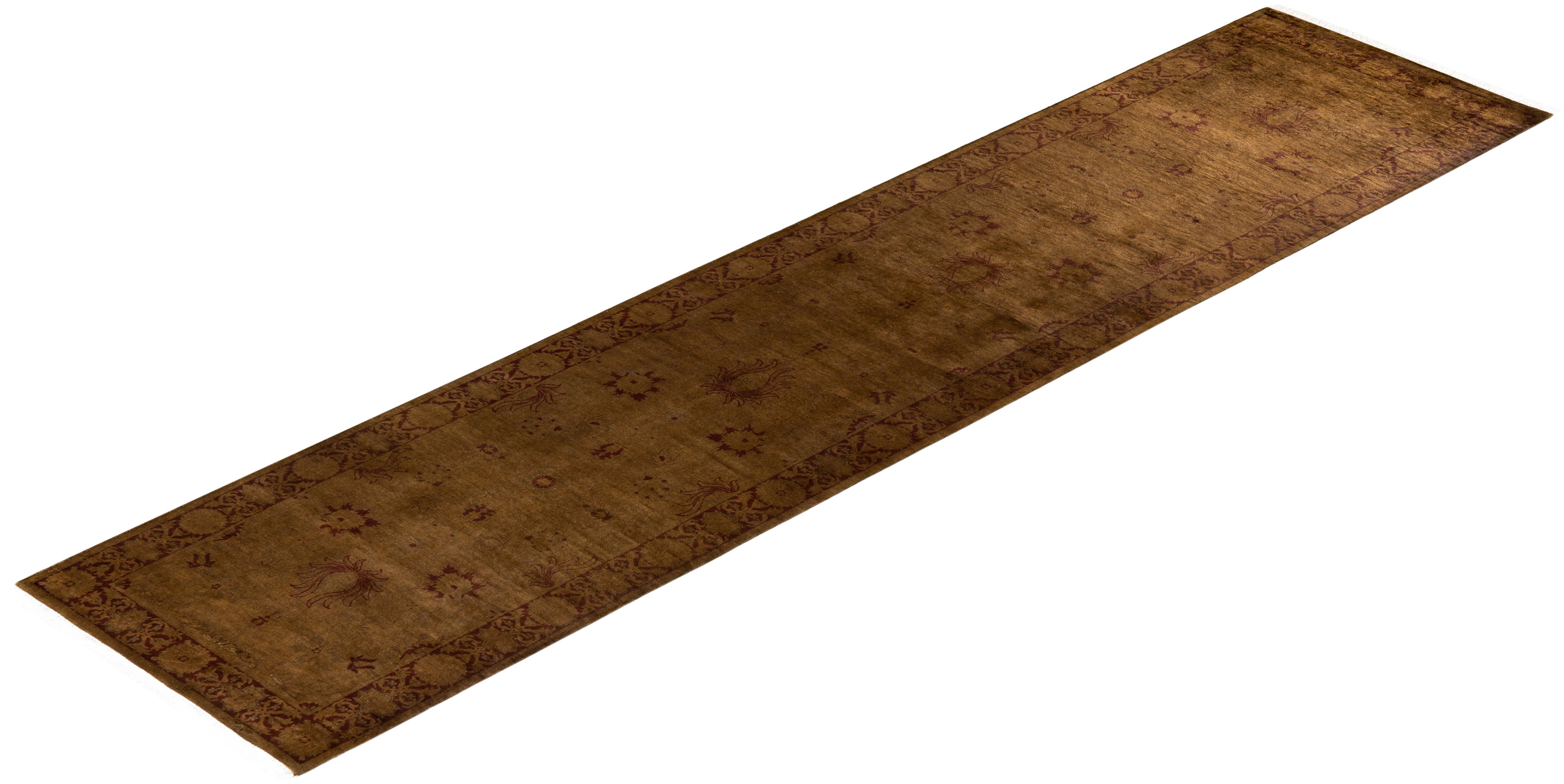 Contemporary Hand Knotted Overdyed Brown Runner 2' 6" x 11' 2"