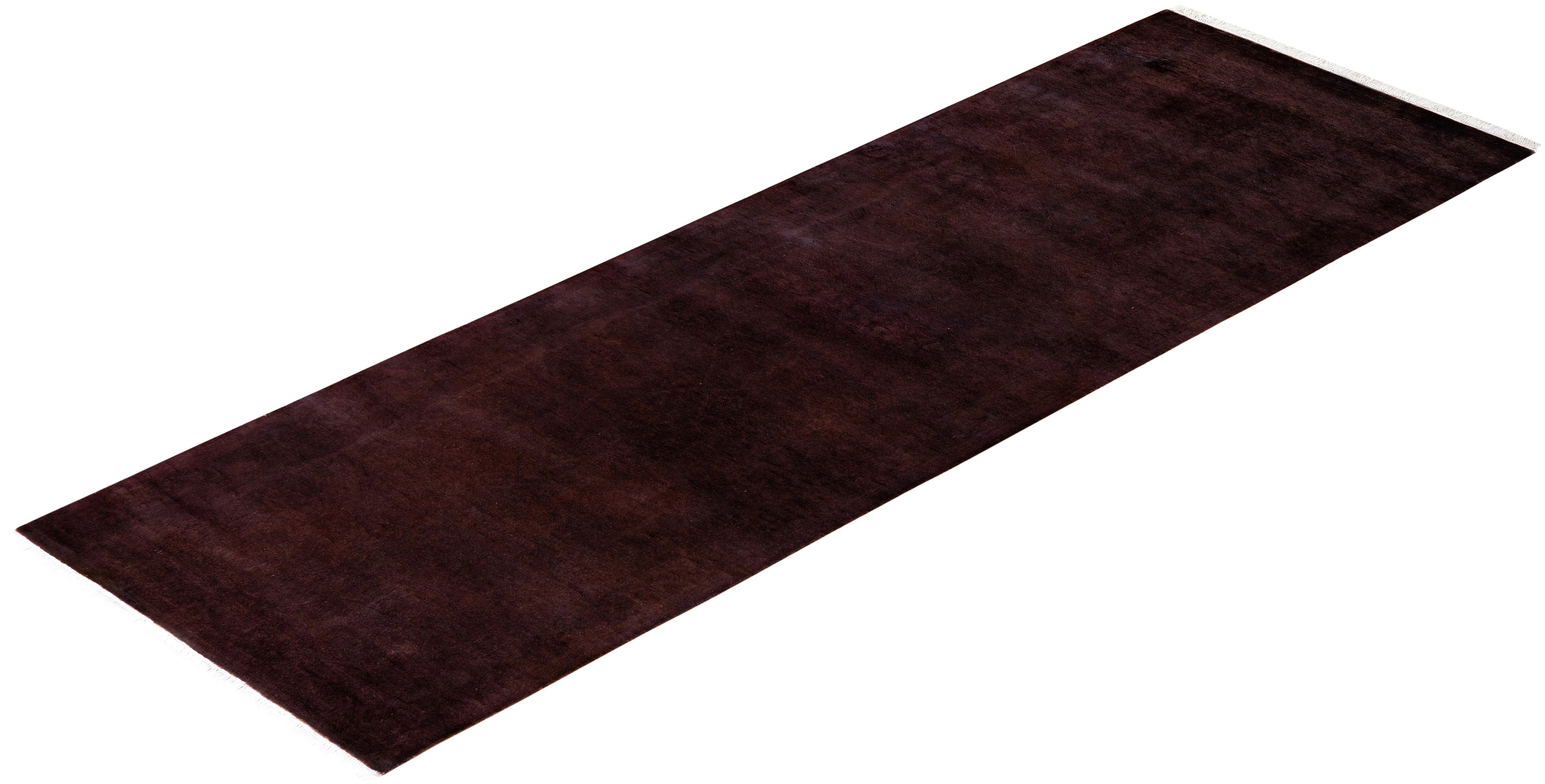 Contemporary Hand Knotted Overdyed Brown Runner 2' 6" x 7' 10"