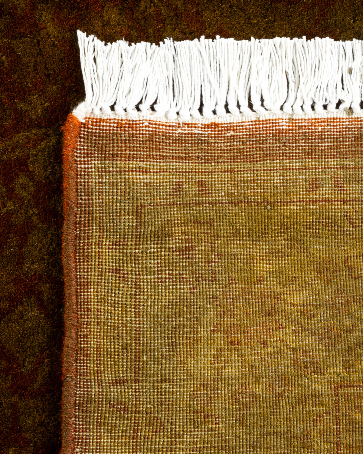 Contemporary Hand Knotted Overdyed Brown Runner 2' 7" x 12' 3"