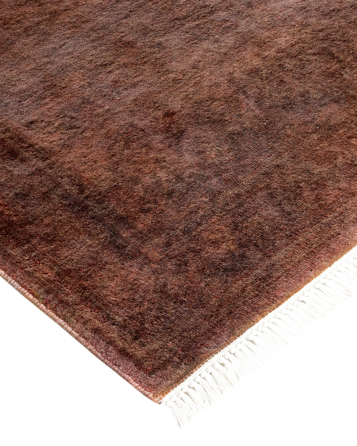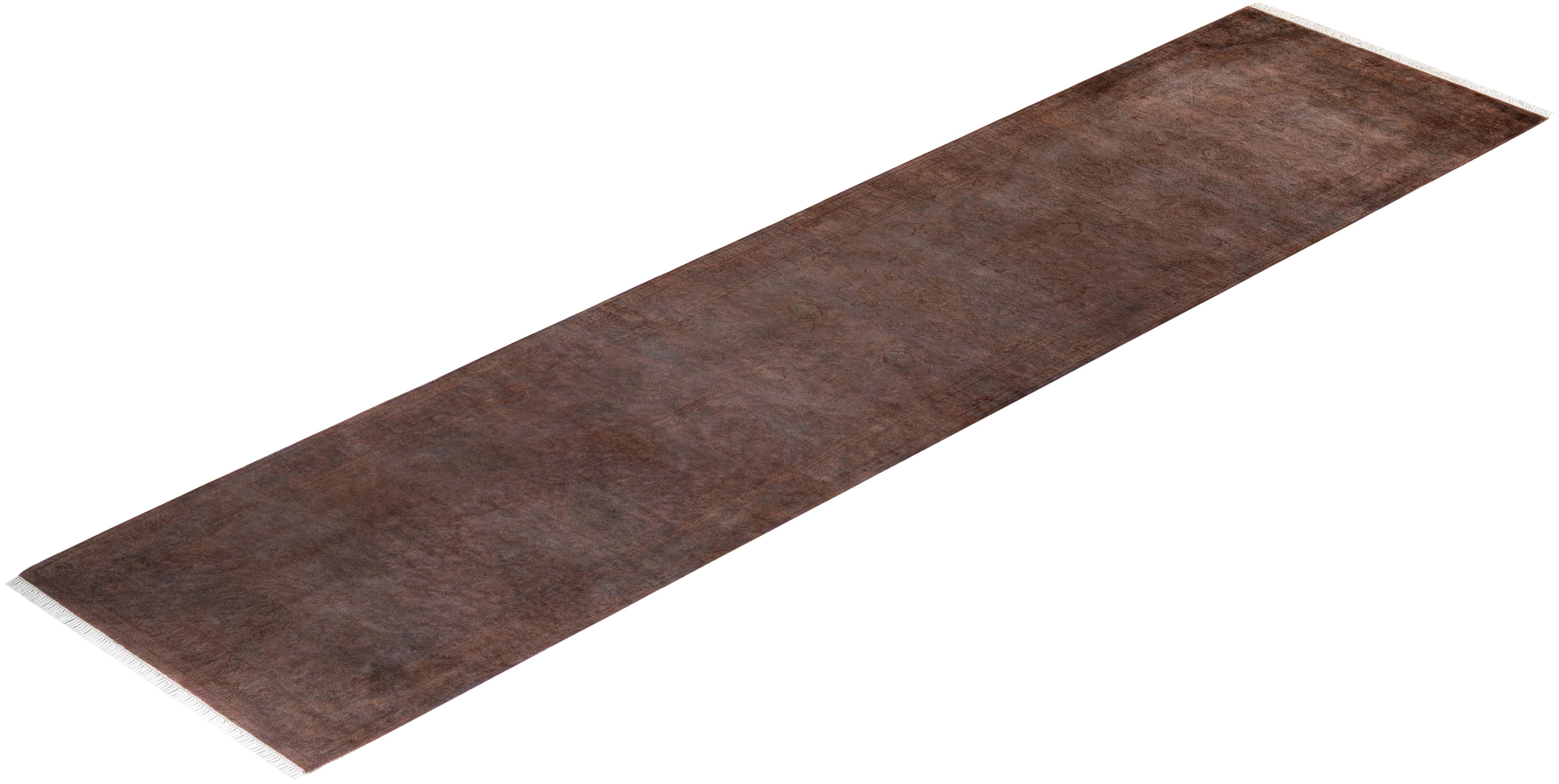 Contemporary Hand Knotted Overdyed Brown Runner 2' 8" x 10' 9"