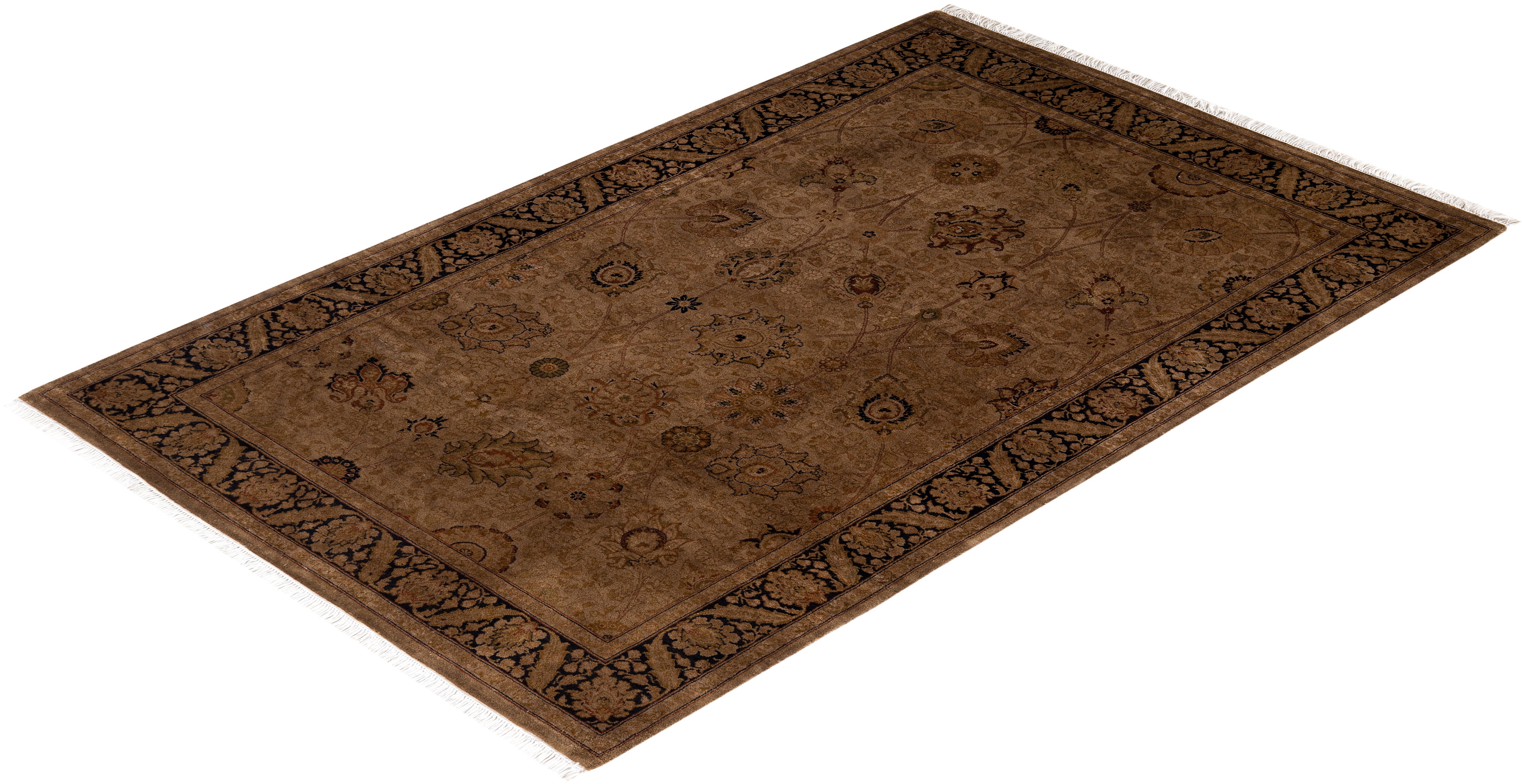 Contemporary Hand-Knotted Overdyed Brown Area Rug 4' 1" x 6' 8"